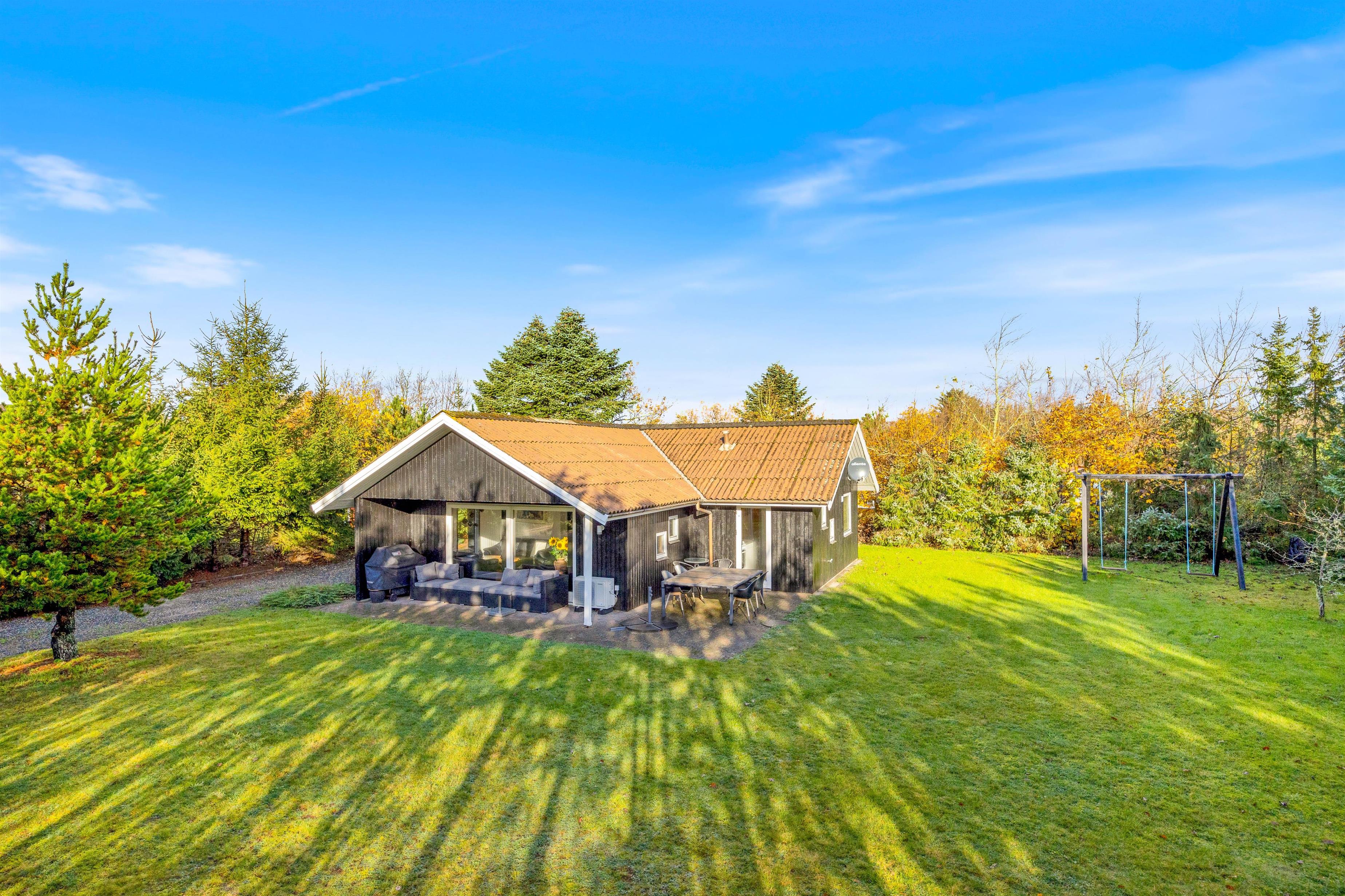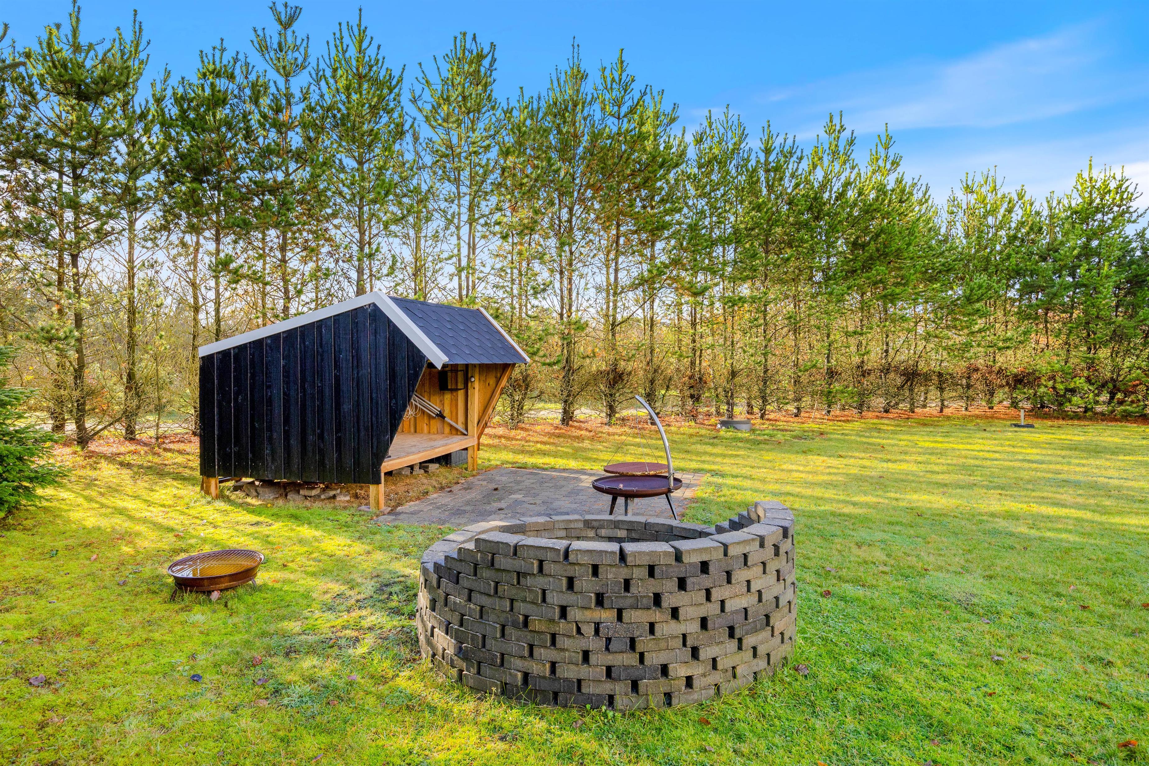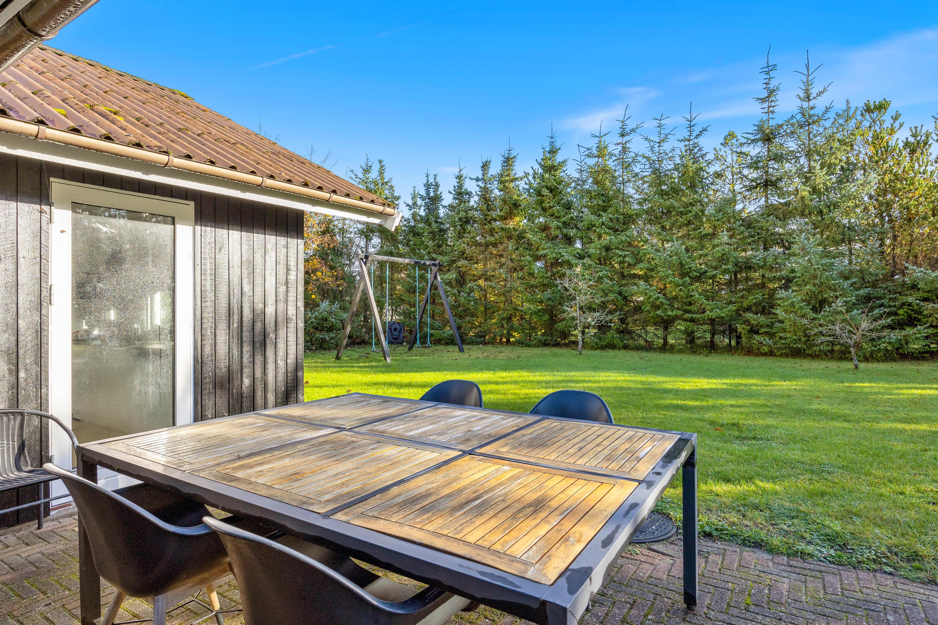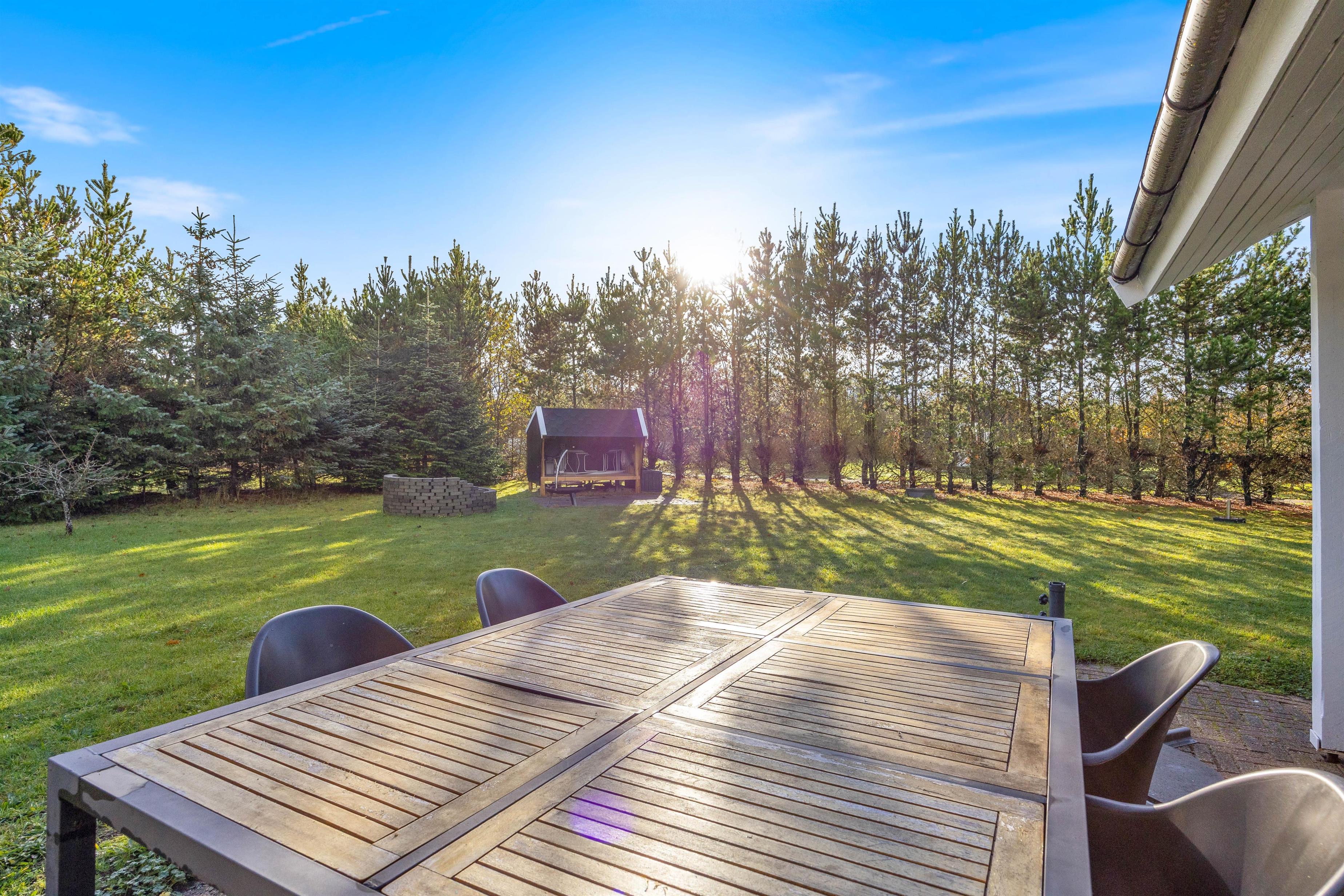 Feriehuset på Bynkevej 368 i Fjand ligger på en plænegrund på ca. 960 m2, hvor der er masser af plads til, at din hund og børnene kan lege og løbe rundt. Mens du nyder en kold drink på terrassen, kan dine børn gynge eller spille fodbold. Du kan afslutte aftenen med en lækker grillaften på terrassen, og bålpladsen på grunden giver dig mulighed for en uforglemmelig aften med snobrød under stjernerne. Der er også en shelter på grunden, hvor du kan sove i det fri.