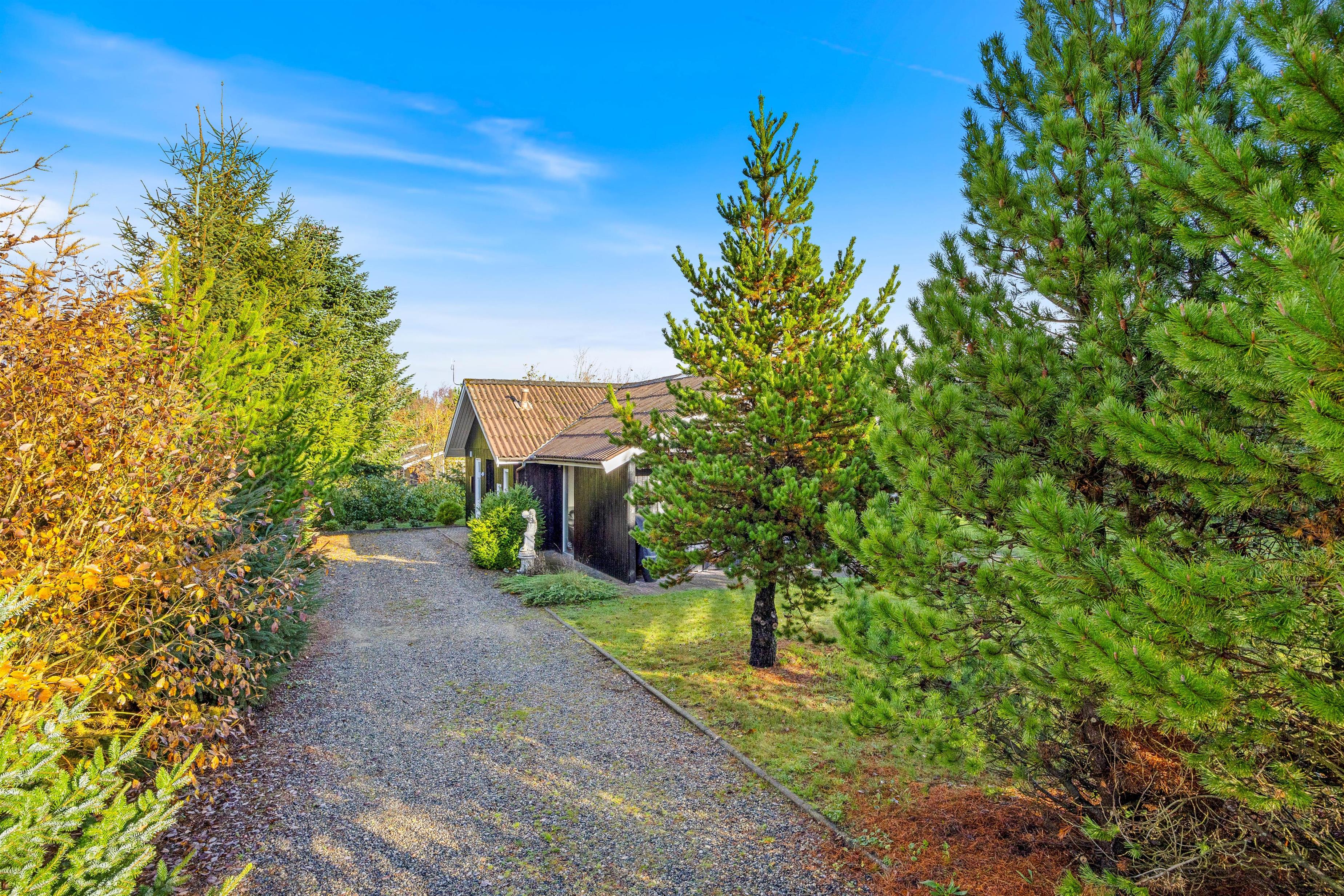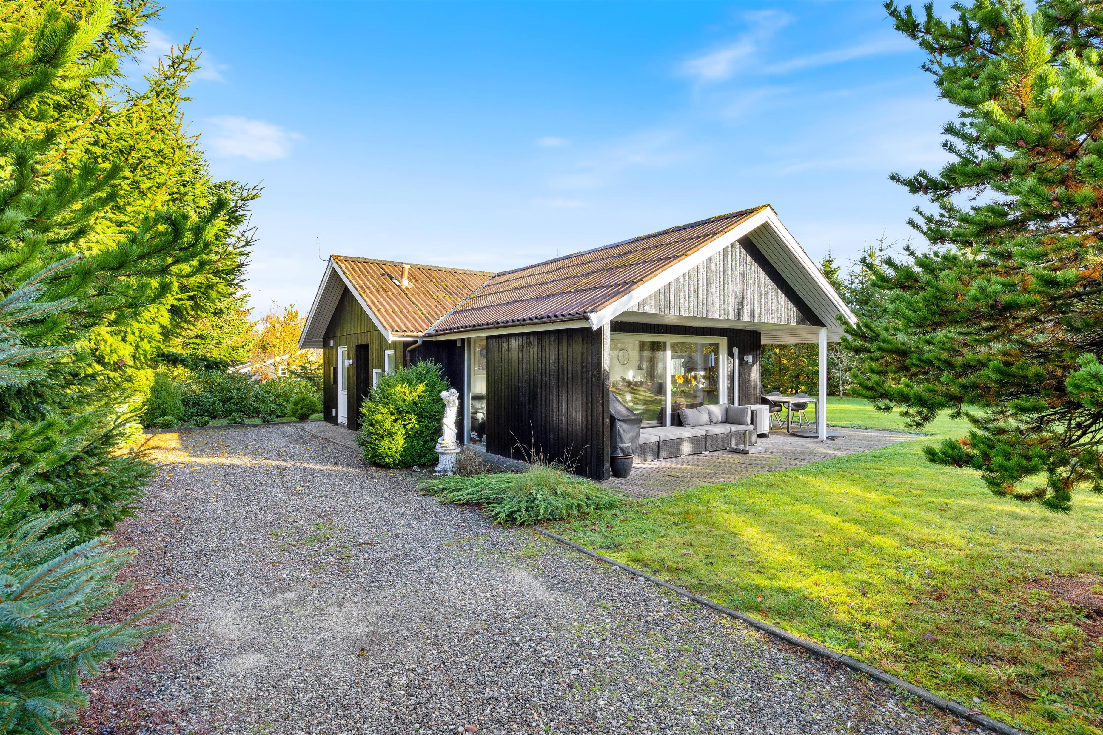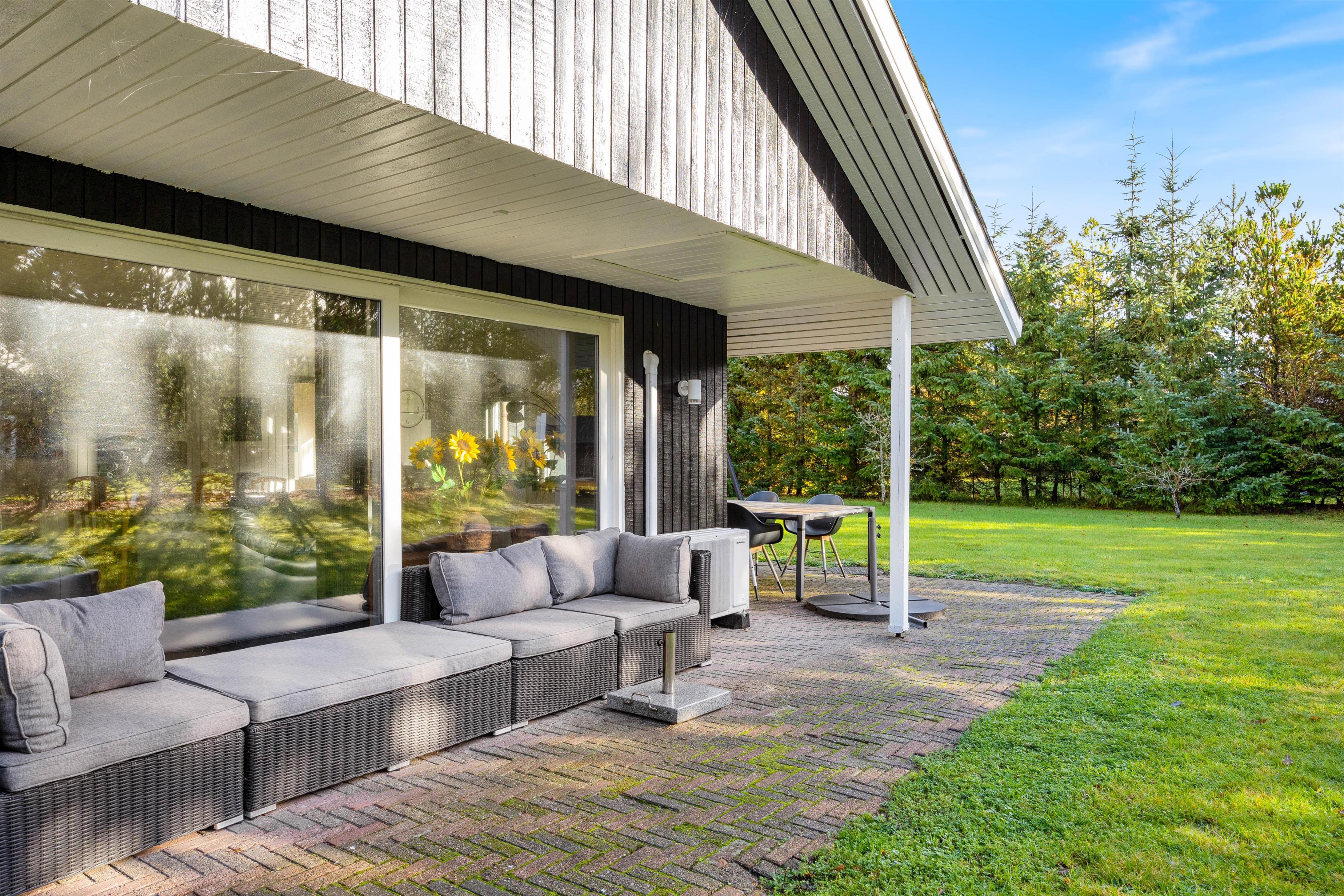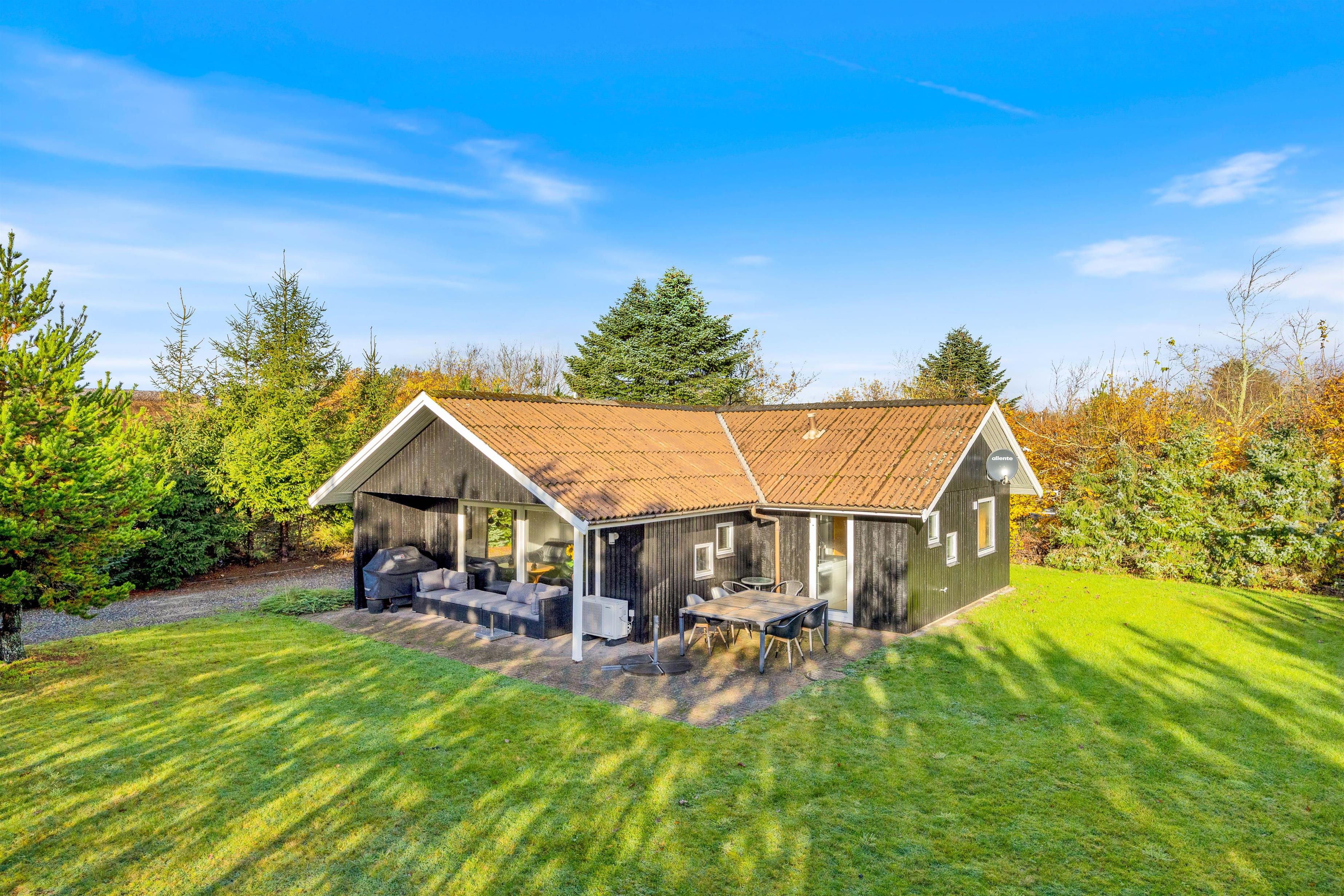 Feriehuset på Bynkevej 368 i Fjand ligger på en plænegrund på ca. 960 m2, hvor der er masser af plads til, at din hund og børnene kan lege og løbe rundt. Mens du nyder en kold drink på terrassen, kan dine børn gynge eller spille fodbold. Du kan afslutte aftenen med en lækker grillaften på terrassen, og bålpladsen på grunden giver dig mulighed for en uforglemmelig aften med snobrød under stjernerne. Der er også en shelter på grunden, hvor du kan sove i det fri.