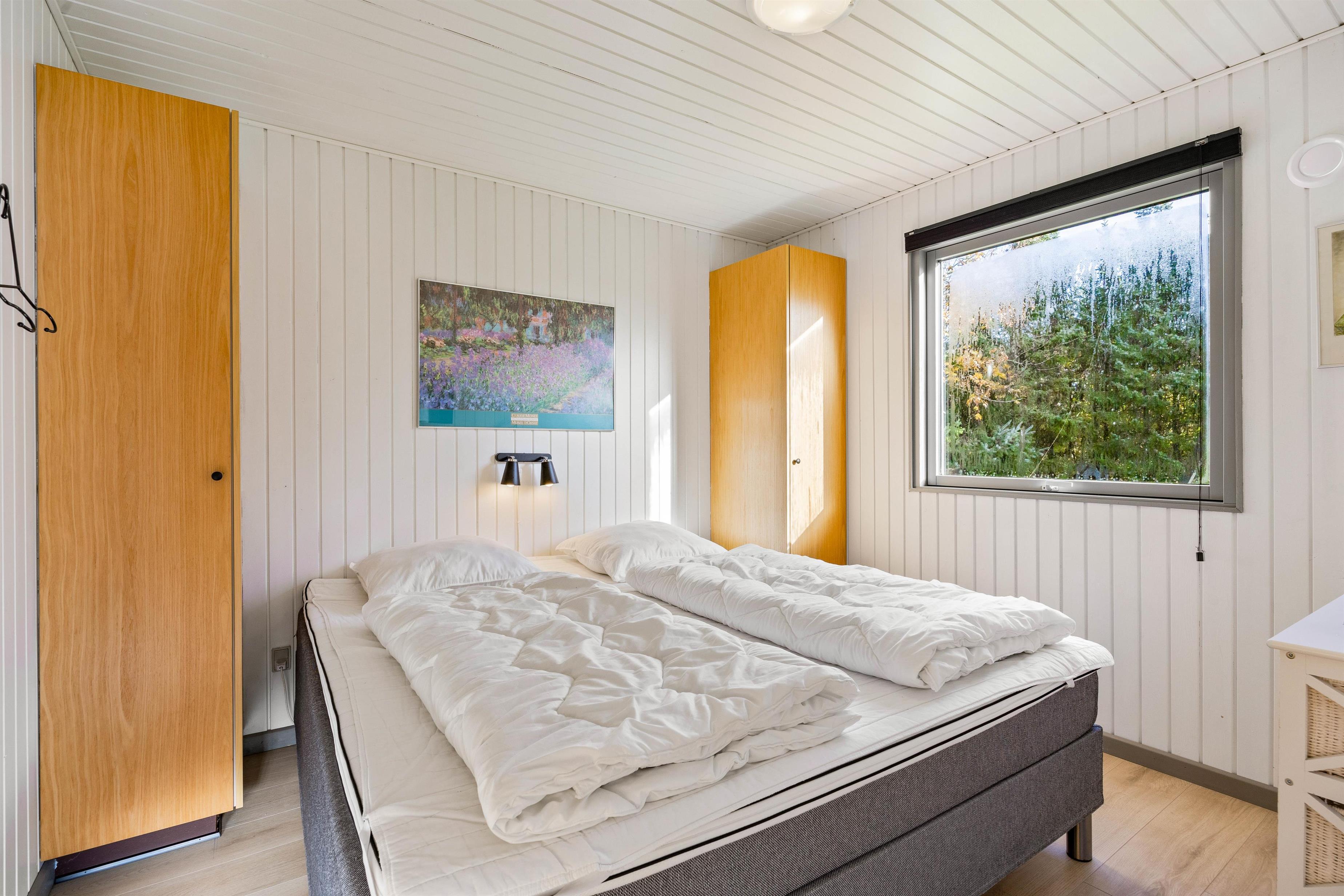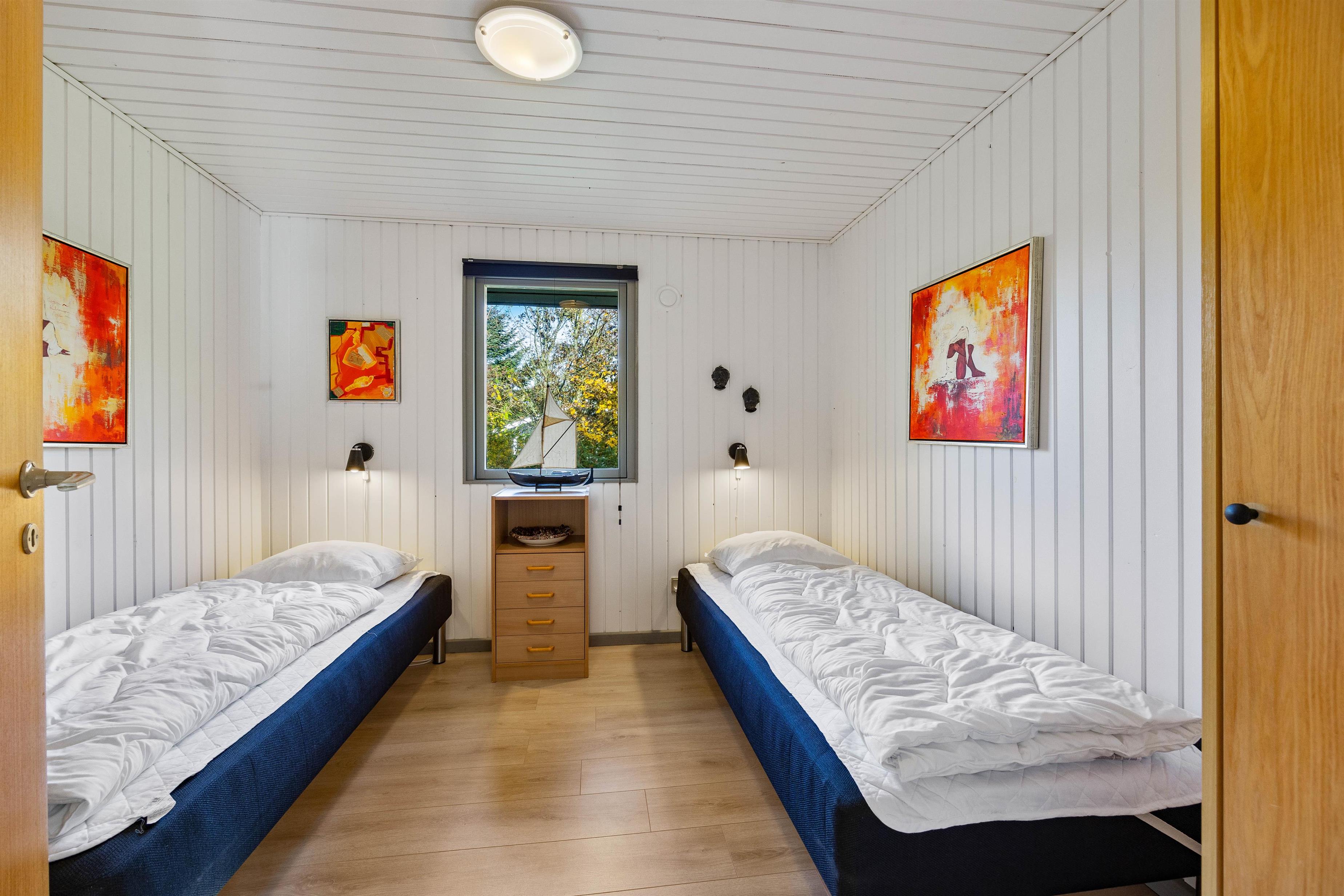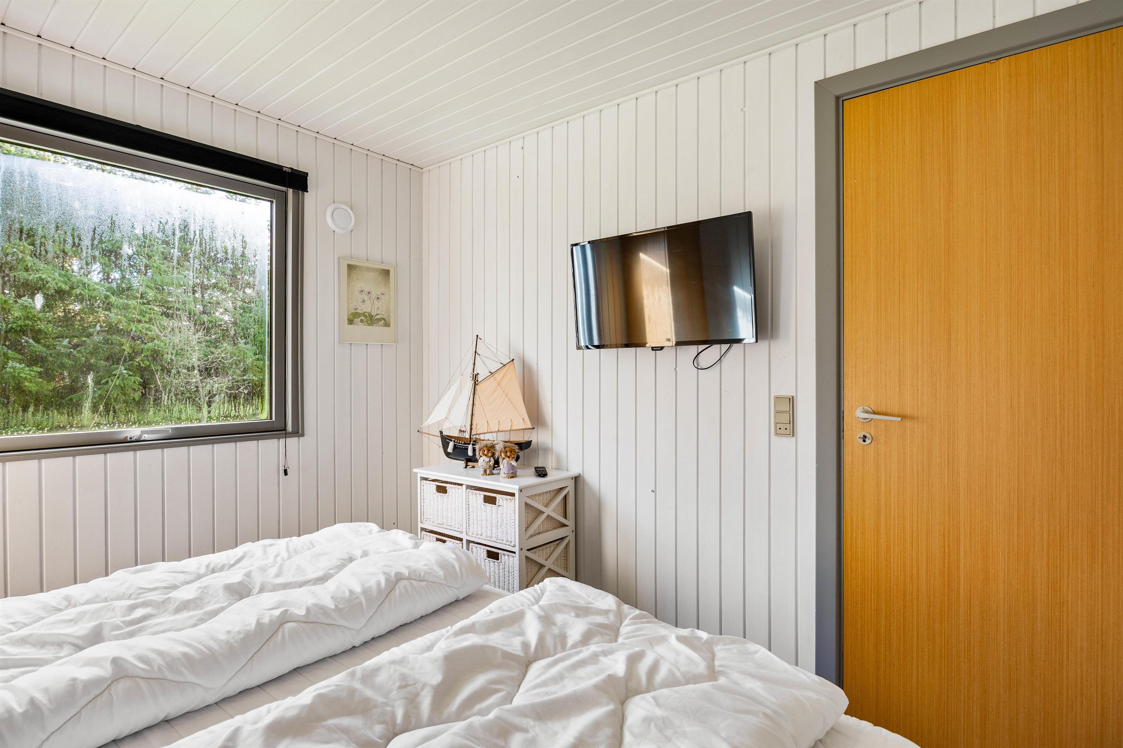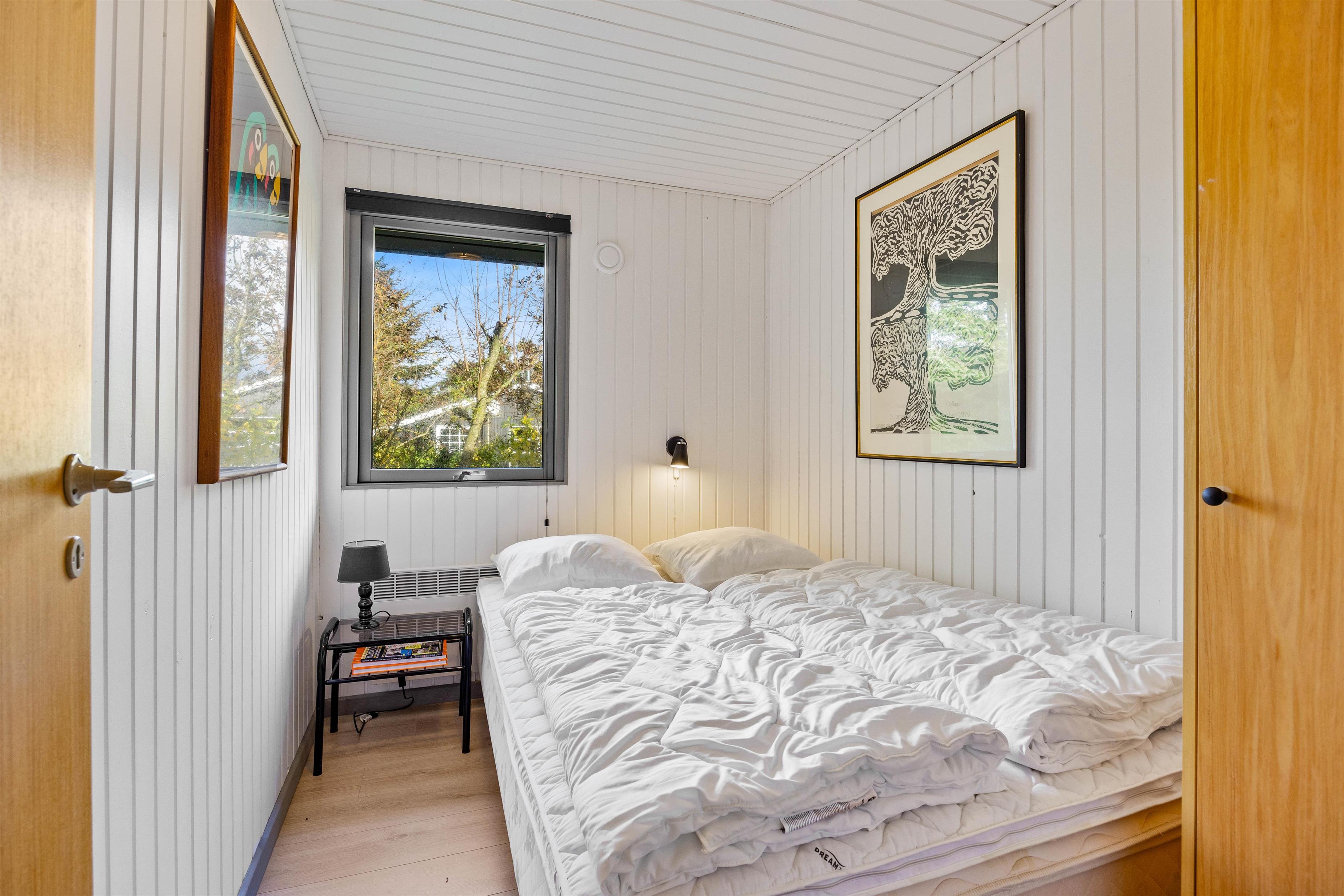 Feriehuset byder dig velkommen med en lille gang, hvorfra du kommer ind i feriehusets badeværelse og et af de 3 soveværelser. Badeværelset er udstyret med gulvvarme og en vaskemaskine, så du ikke får kolde fødder på badeværelset om morgenen, og takket være vaskemaskinen behøver du kun at tage dit yndlingstøj med dig. Efter en lang og oplevelsesrig dag i den friske havluft kan man fordele sig ud på de 3 soveværelser om aftenen. 2 af soveværelserne er indrettet med dobbeltsenge, mens det 3. soveværelse har 2 enkeltsenge.