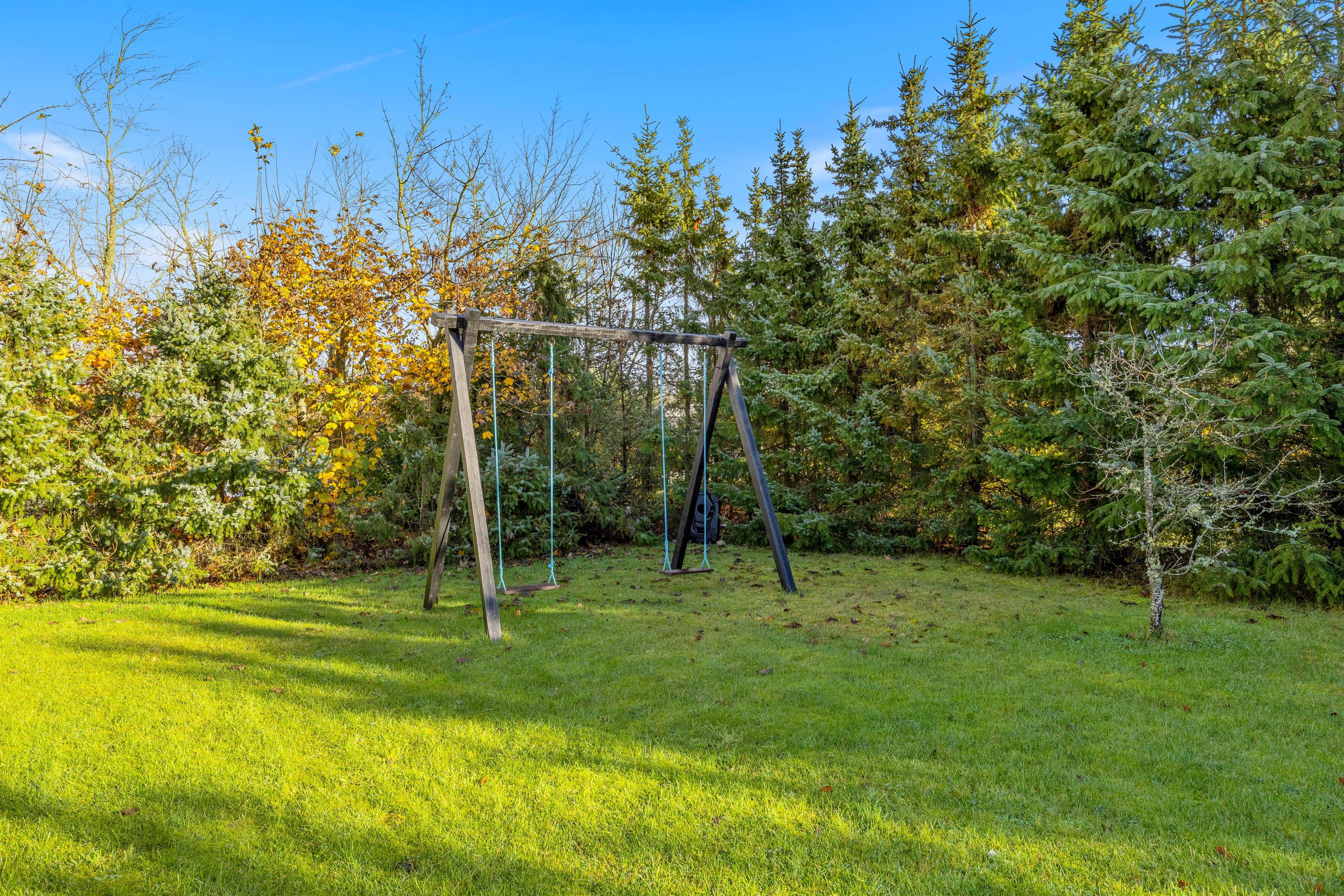 Græsplæne med gynge og bålplads på Bynkevej 368