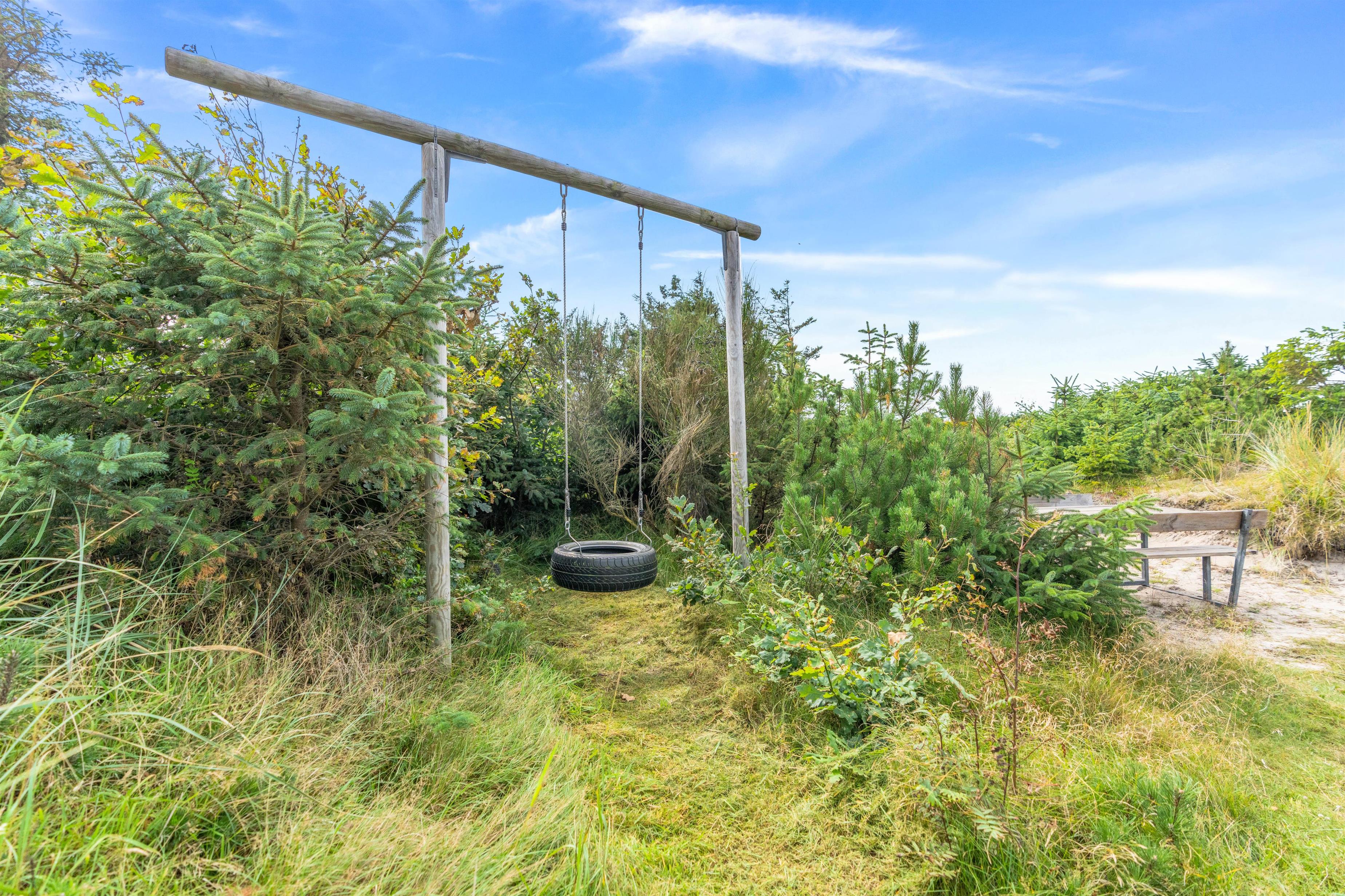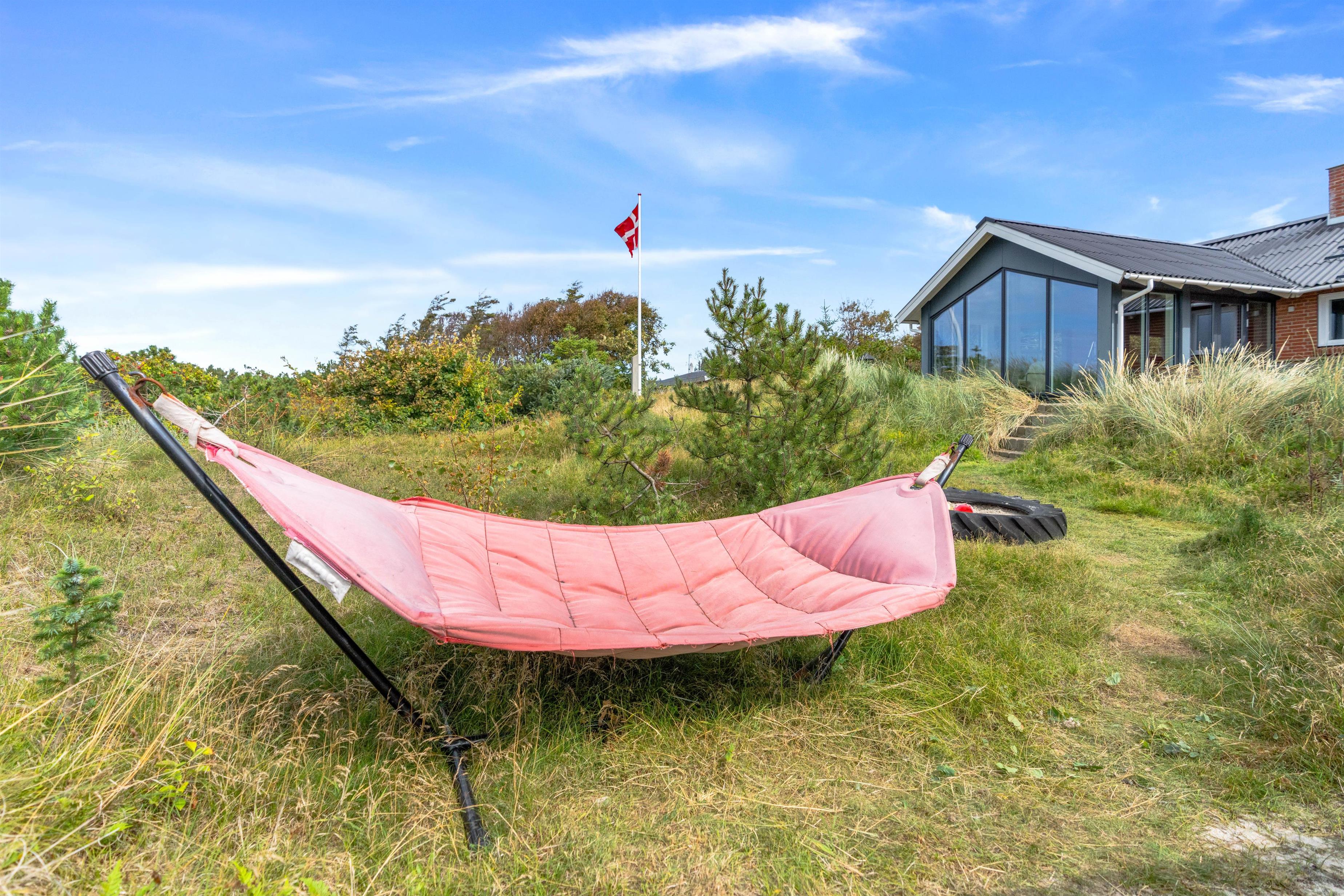 Der er også sørget for underholdning til børnene. På østsiden af grunden er der lavet en legeplads med gynge og sandkasse og en bålplads. Desuden står der en hængekøje, hvor I helt ugeneret kan tage en middagslur i solen.