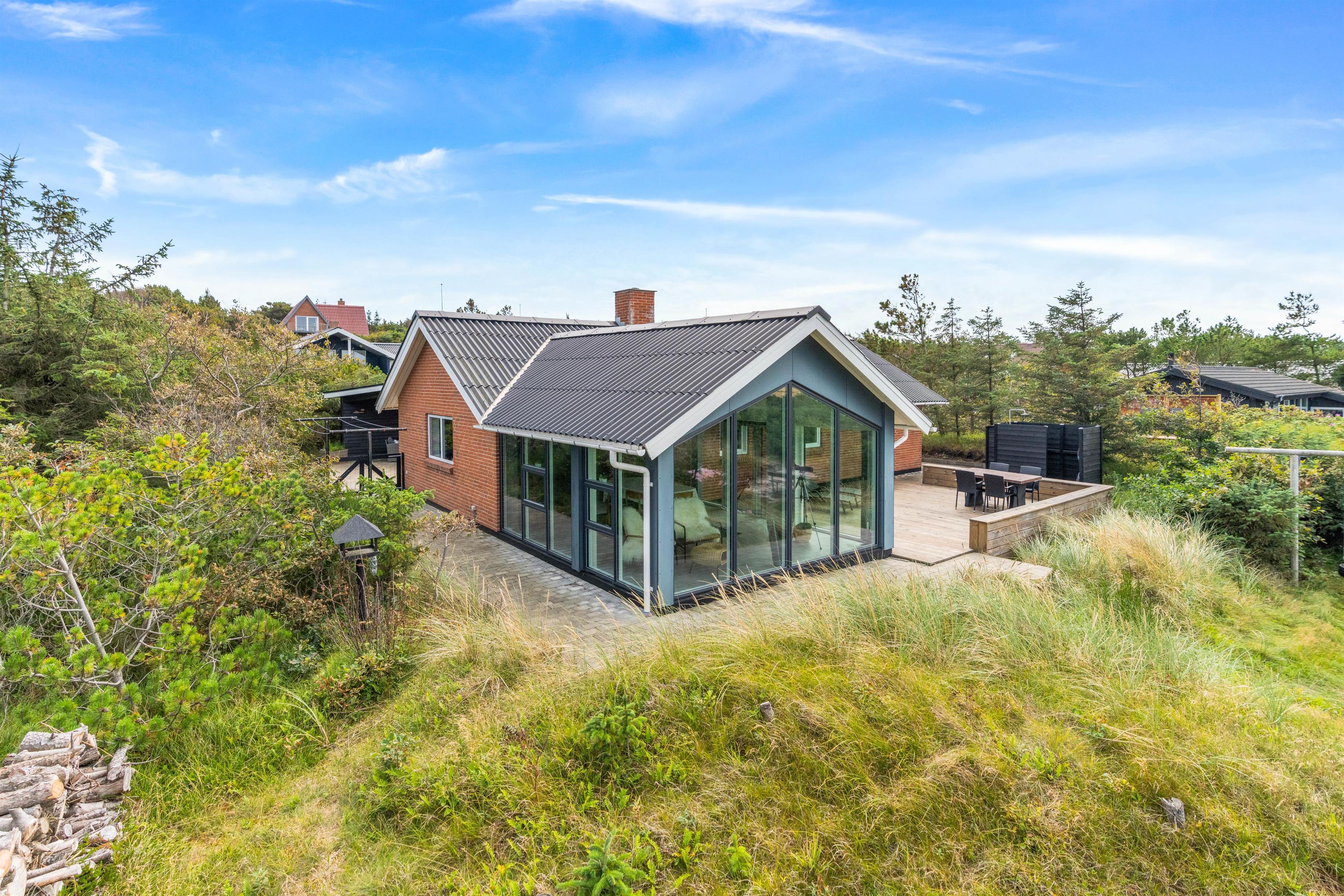 Tæt på Nissum Fjord og heller ikke langt væk fra Vesterhavet ligger dette renoverede sommerhus med plads til 6 personer. Den hyggelige indretning indeholder alt, hvad I har brug for på ferien, og der er endda sauna i huset. Der er rigtig fine terrasser næsten hele vejen rundt om huset og et legeområde til børnene. Hunden er også velkommen her. Derudover er der også mulighed for at lade elbilen op ved sommerhuset.