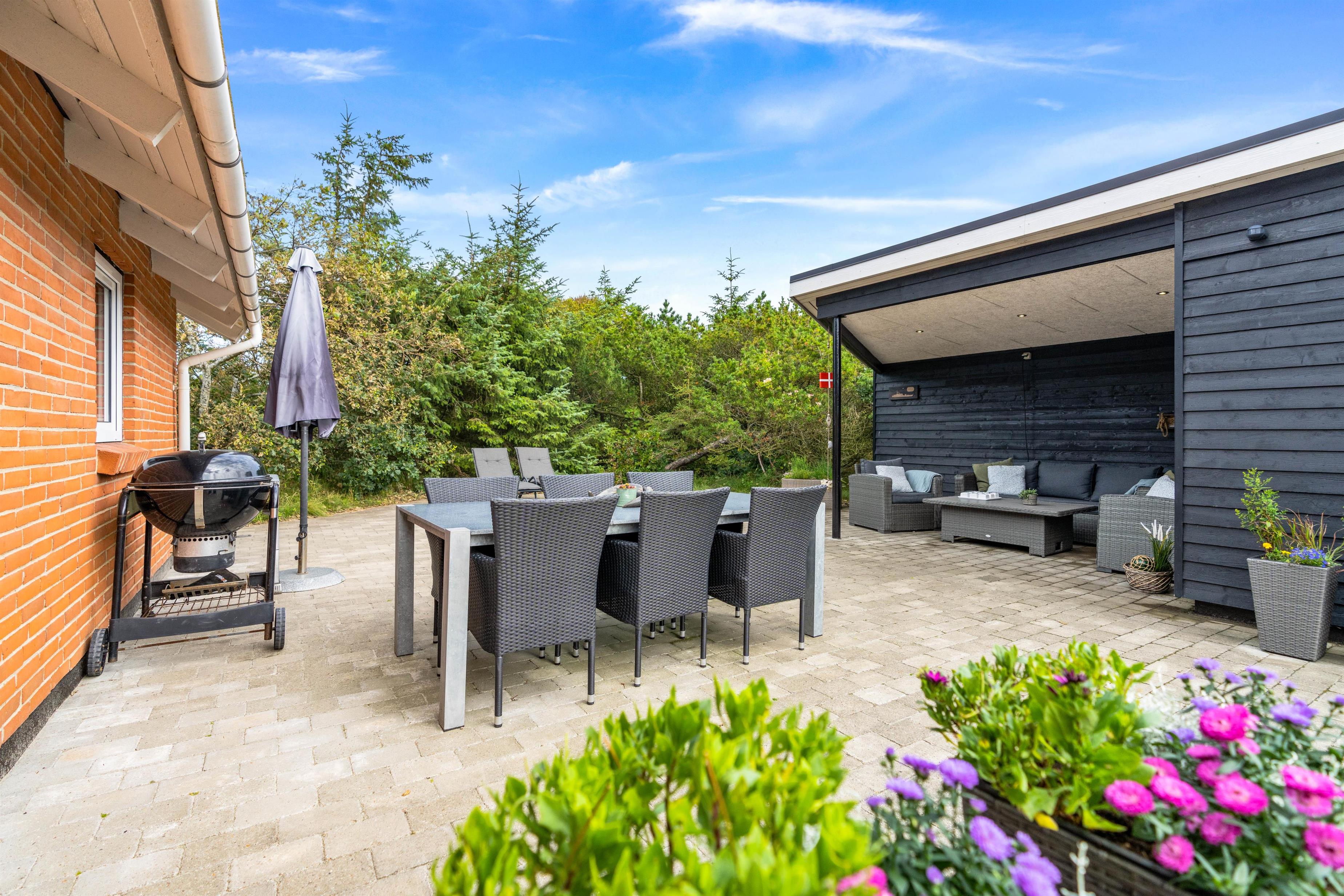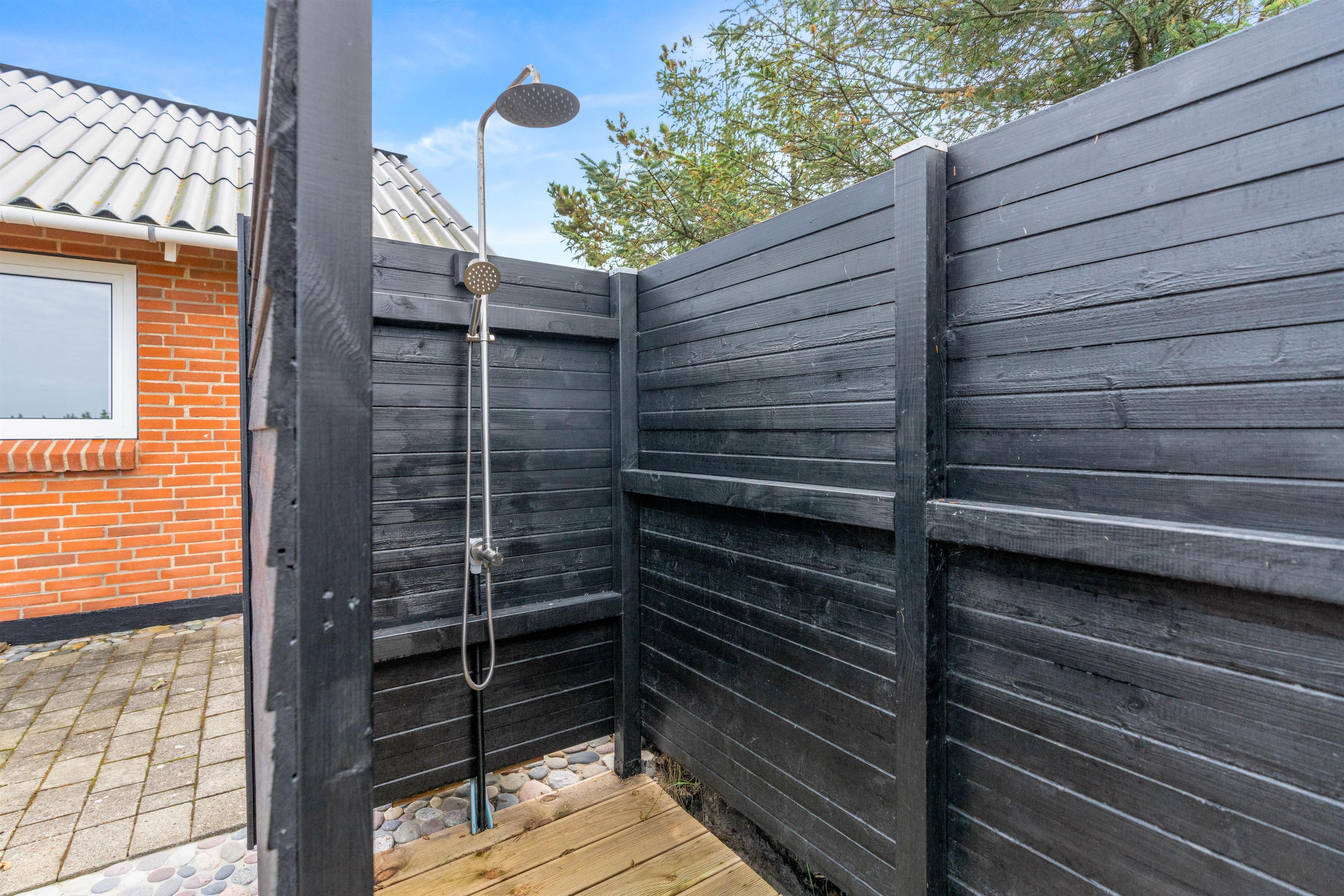 Med kun 1200 meter til den kilometer lange sandstrand og det brusende Vesterhav, kan det helt klar anbefales at tage en tur i vandet på de varmere sommerdage, for at blive kølet af i varmen. Når I kommer tilbage til sommerhuset, kan I benytte udebruseren, og få vasket det værste sand af kroppen. (Udebruseren kan benyttes fra april til og med oktober).