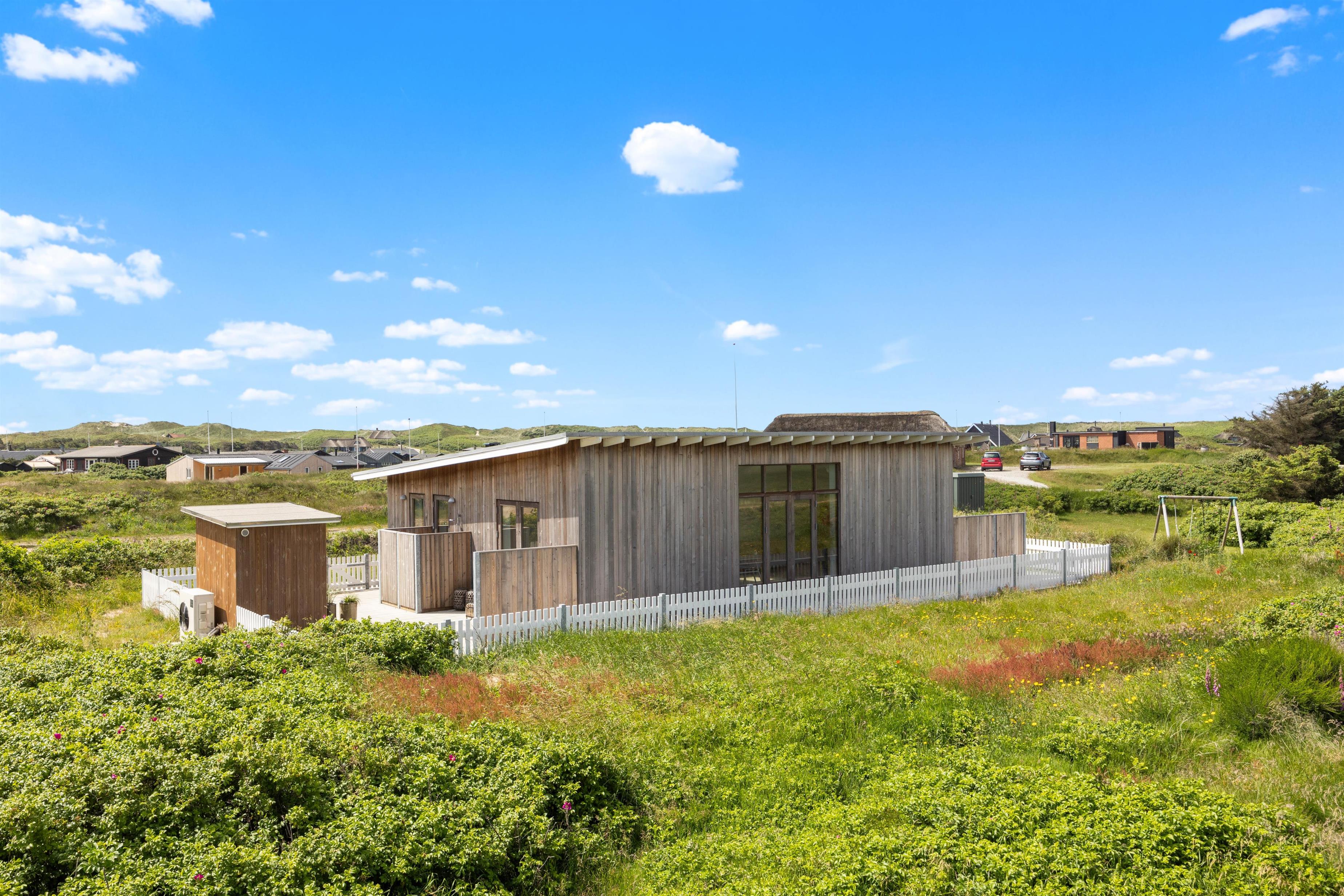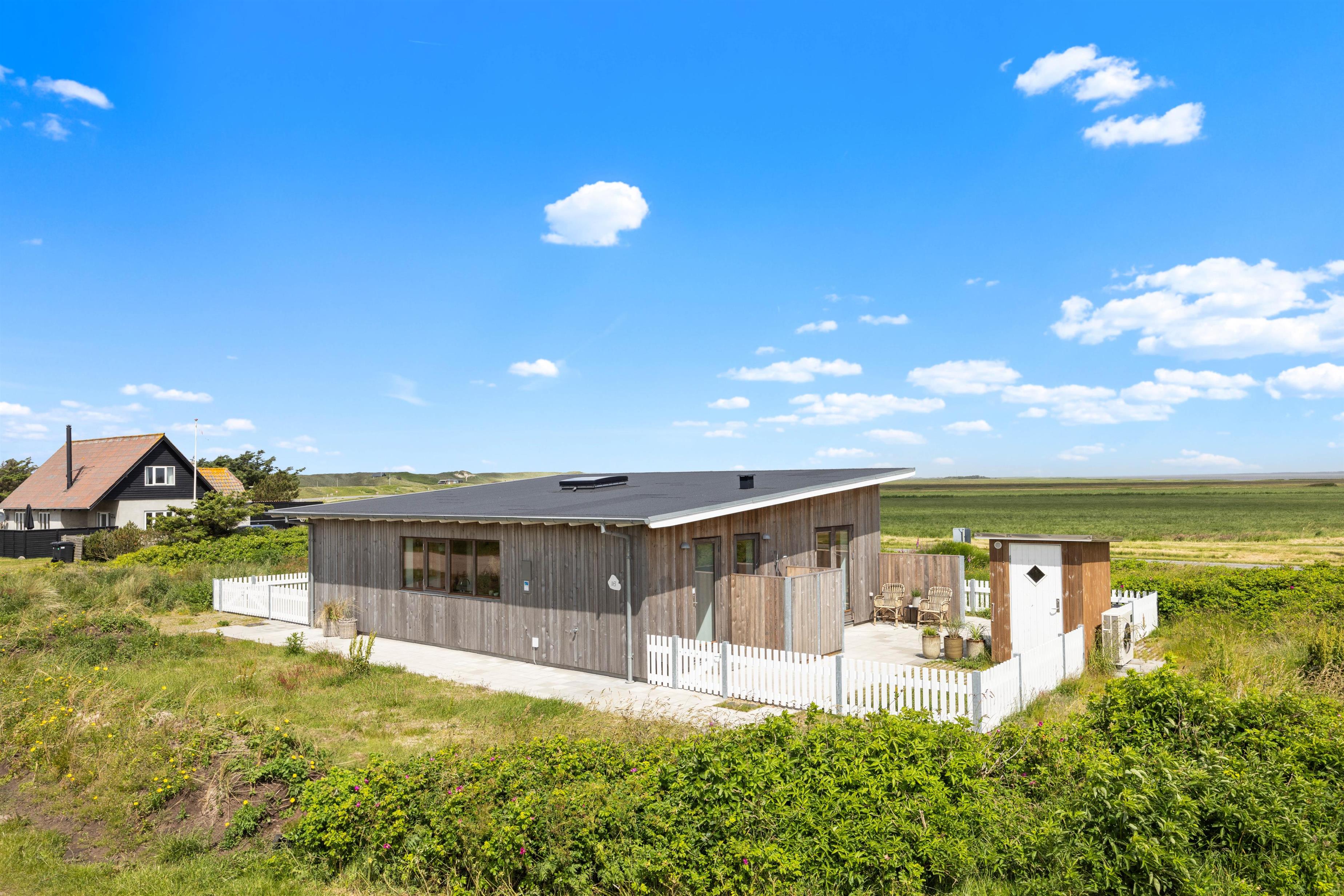 Drømmer I om at holde en dejlig uforglemmelig ferie ved vestkysten, så kunne sommerhuset her være et oplagt valg. Det moderne og stilrene sommerhus på Bjerghuse 16 er bygget i 2023 og har en størrelse på 87 m2. Boligen rummer plads til 4 personer - 2 hunde er også velkomne. Beliggenheden er i gåafstand fra Vesterhavet, hvor I kan nyde lange gåture på stranden, mens I lytter til bølgernes brusen. Hvis I ankommer med jeres elbil, behøver I ikke at bekymre jer om et fladt batteri, da der er en ladestander ved sommerhuset.