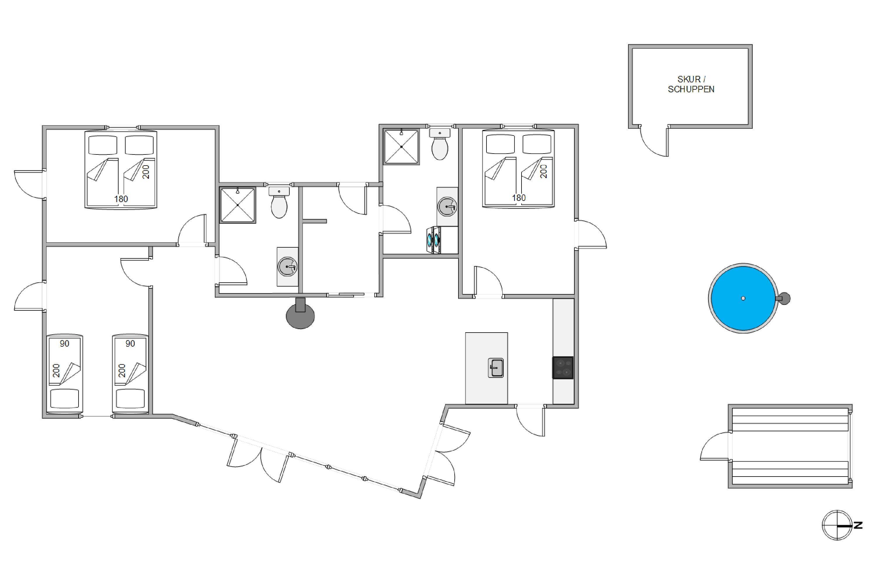 Sommerhus med 2 badeværelser