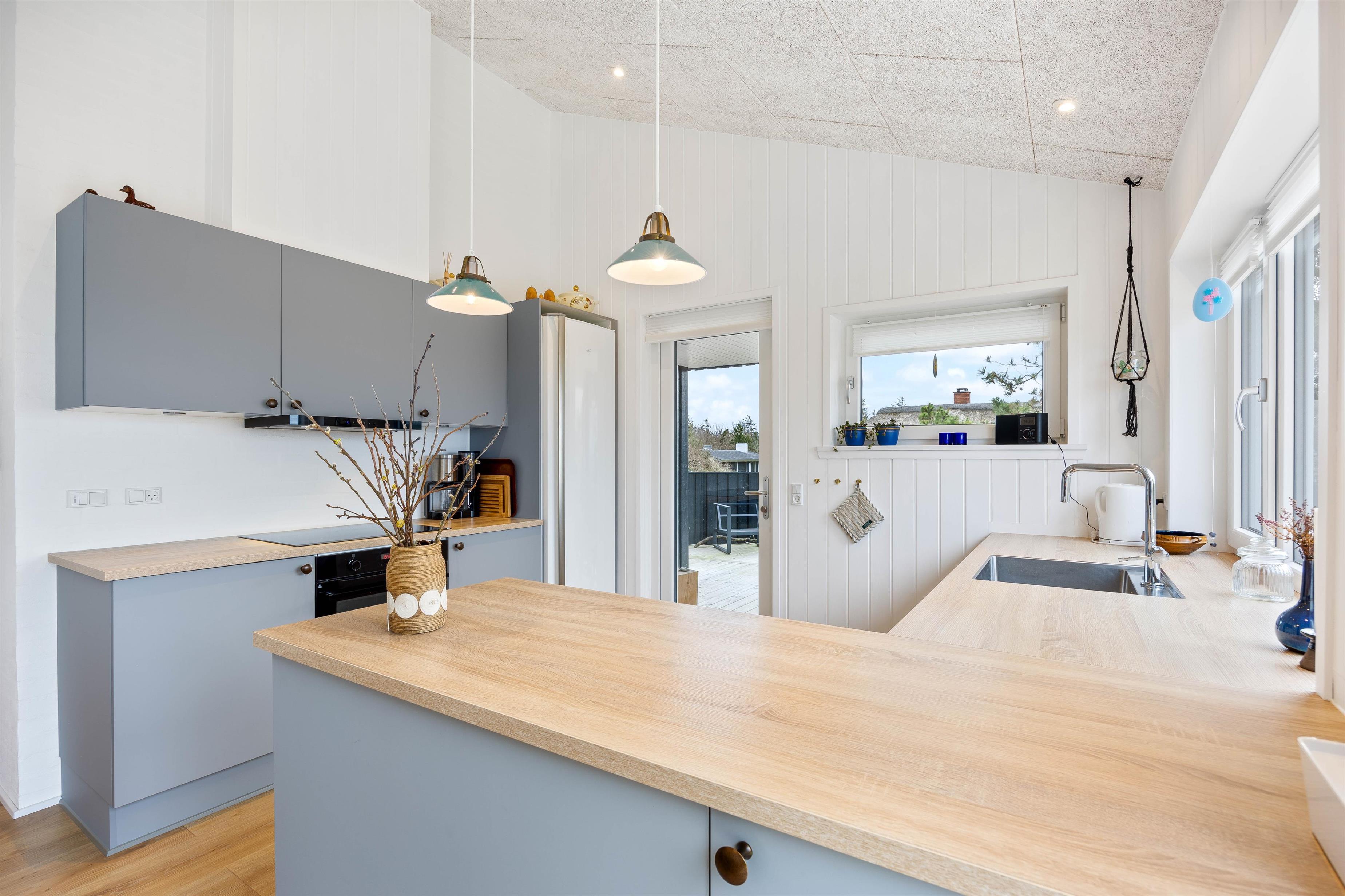 På kølige dage kan brændeovnen tændes og skabe en varm og hyggelig stemning. Huset er desuden udstyret med gulvvarme overalt, hvilket sikrer komfort i alle rum – året rundt.