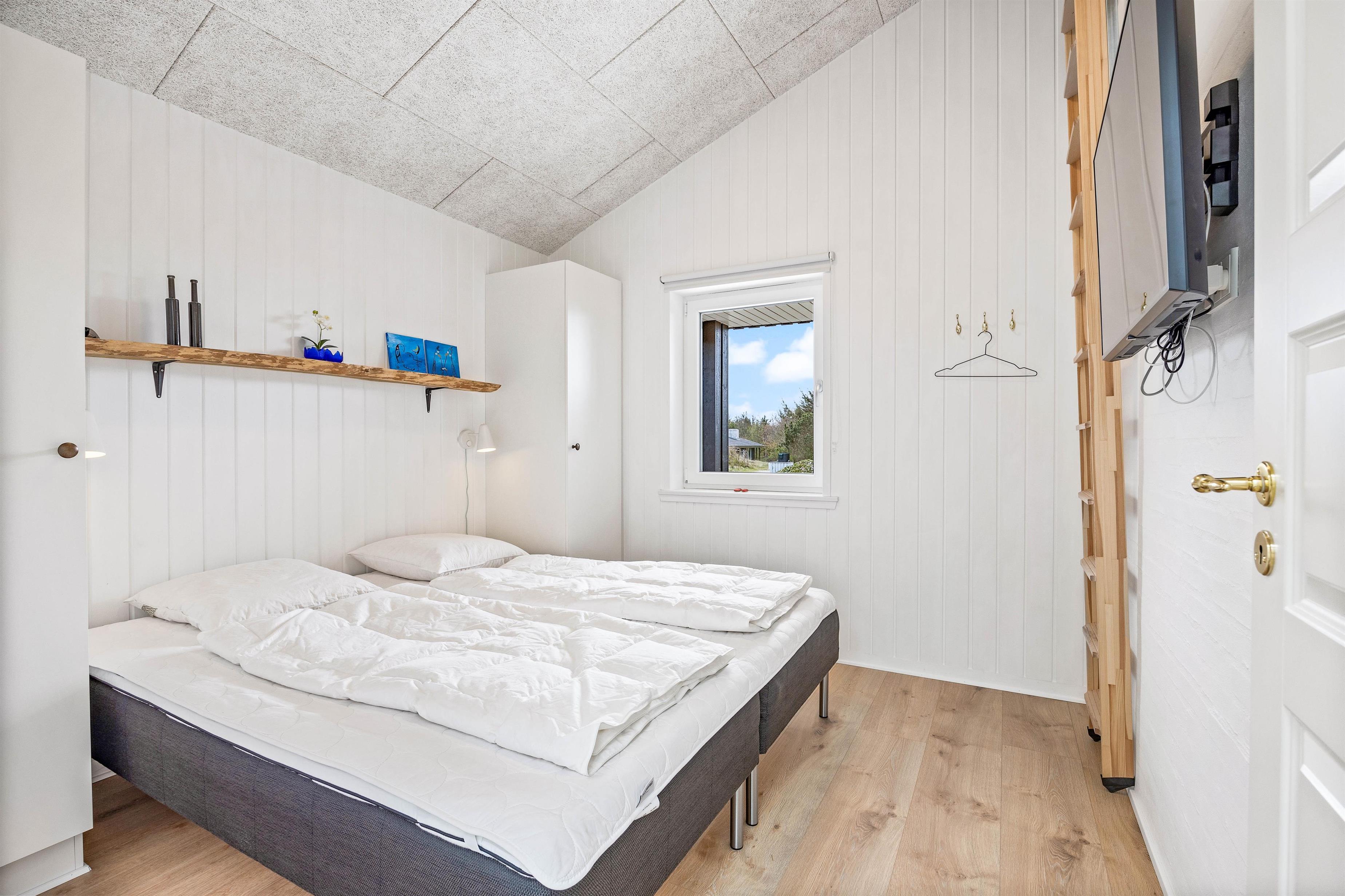 Med 4 indbydende soveværelser, alle udstyret med komfortable senge, er der god plads til op til otte personer. 2 af soverummene er udstyret med 2 dobbeltsenge, mens de 2 resterende soverum er udstyret med 2 enkeltsenge. Sommerhuset rummer også både vaskemaskine og tørretumbler – ideelt til længere ophold og børnefamilier.