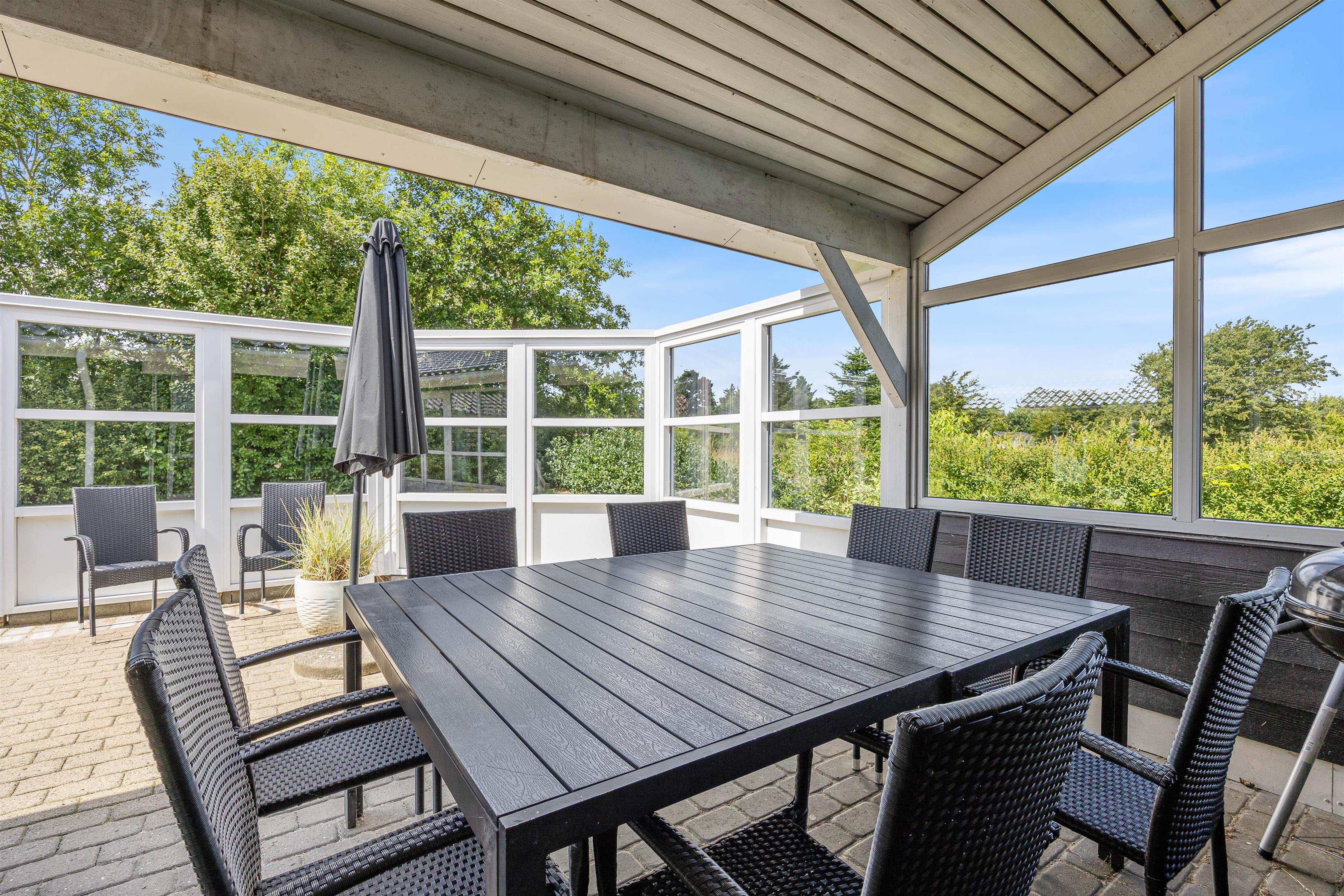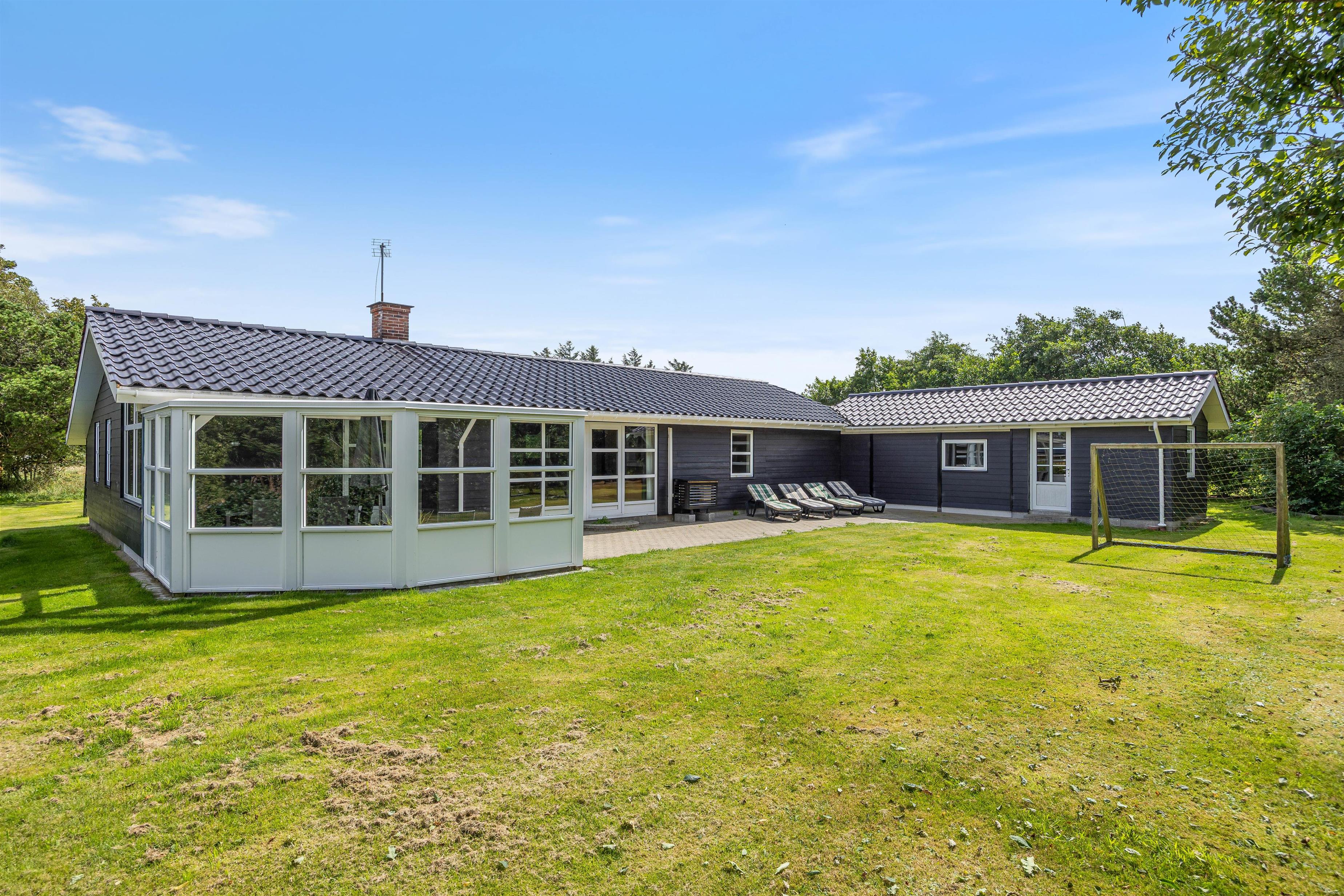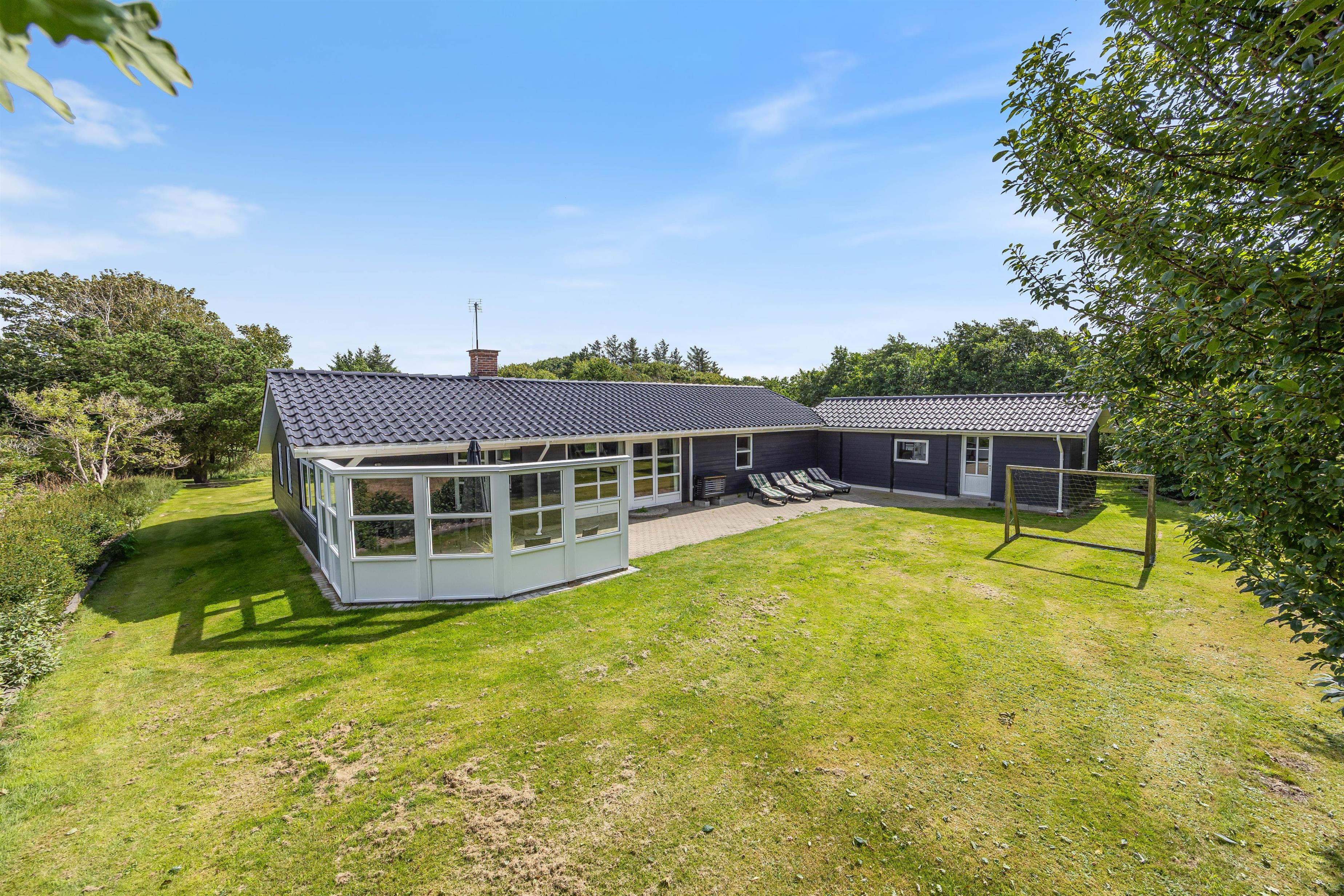 Med en grund på 1121 m2 er der god plads til forskellige udendørs aktiviteter. Der er både en gynge til de mindste, og med en grill kan I have nogle hyggelige sommeraftener med et lækkert grillmåltid. Sommerhusets terrasse er både afskærmet og dele af den er overdækket. I kan derfor nyde noget friskt luft uanset vind og vejr. Terrassen er naturligvis også med komfortable havemøbler, så I ret kan læne jer tilbage og på de solrige dage slikke lidt sol. Den frodige plænegrund giver god plads til leg og boldspil for både børn og hunde. Jeres hunde er også velkomne her, dog maksimalt 2 hunde.
