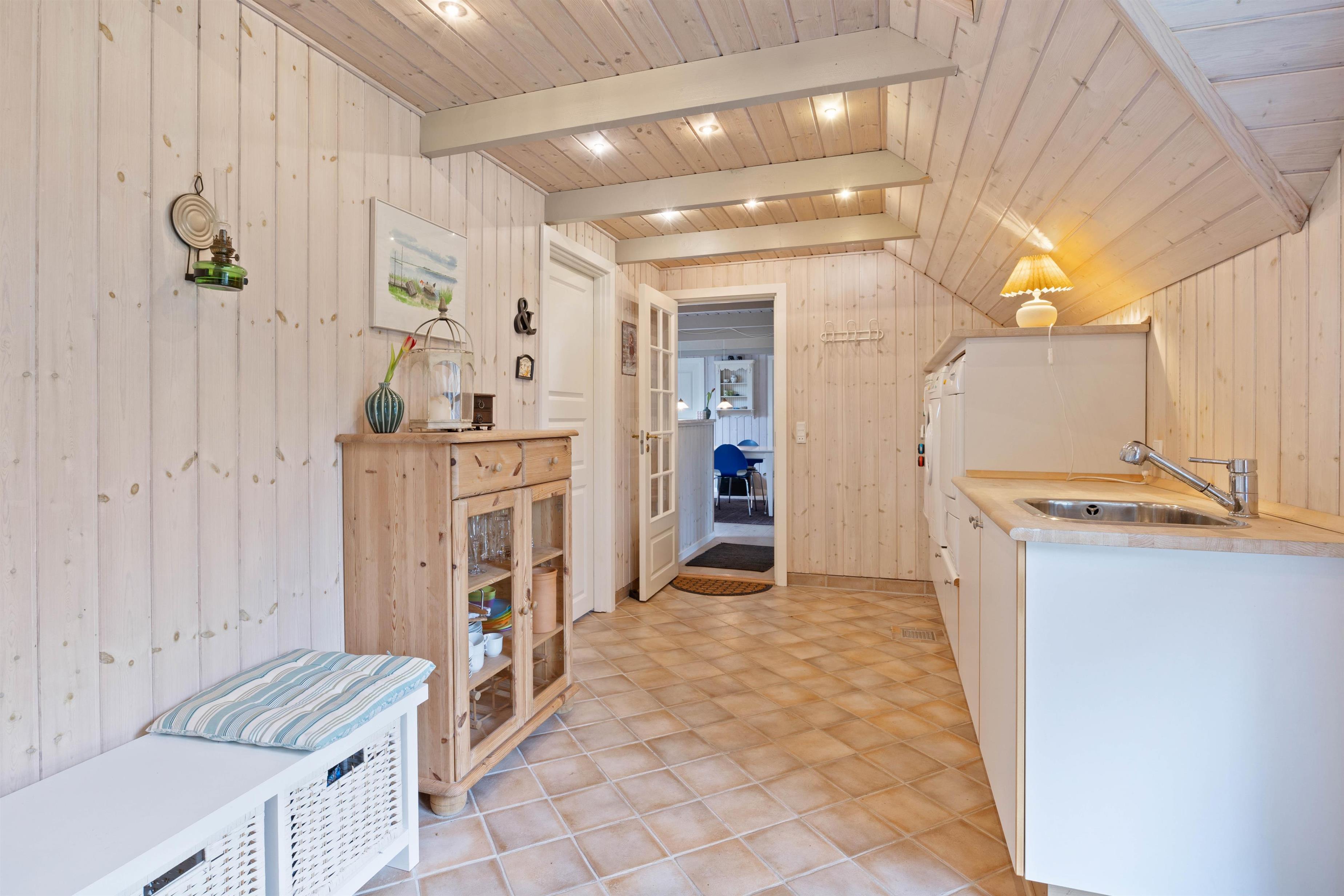 Det 97 m2 store sommerhus byder jer velkommen, når I træder ind i sommerhuset med et indgangsparti, hvor vaskemaskine og tørretumbler er installeret. I behøver derfor kun at tage jeres yndlingstøj med jer. Sommerhusets hjerte og også feriens samlingspunkt er den store opholdsstue, som forbinder køkkenet, stuen og spiseområdet. Her kan I planlægge de næste feriedage, mens den ene af jer laver mad eller ser tv.