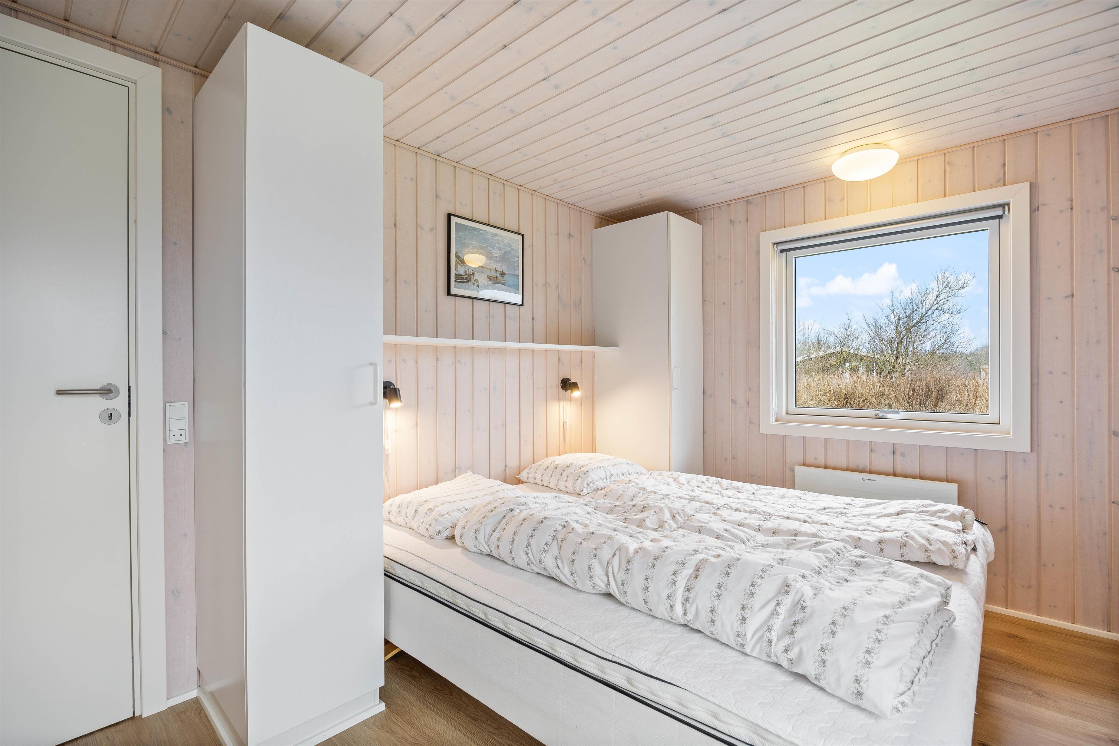 Om aftenen kan I fordele jer på feriehusets 3 soveværelser, som er udstyret med 1 køjeseng og 2 enkeltsenge, der er skubbet sammen. Her har I mulighed for at genoplade jeres batterier. For at undgå trængsel på badeværelset er der også et gæstetoilet ved siden af. Feriehusets sauna giver en ekstra dosis afslapning i løbet af ferien.