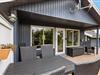 Afskærmet og overdækket terrasse på en stor græsplæne