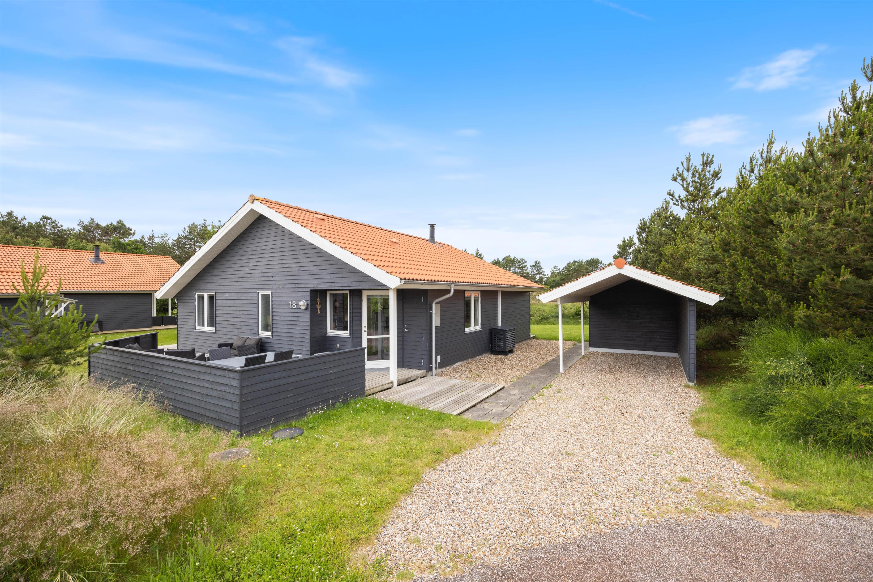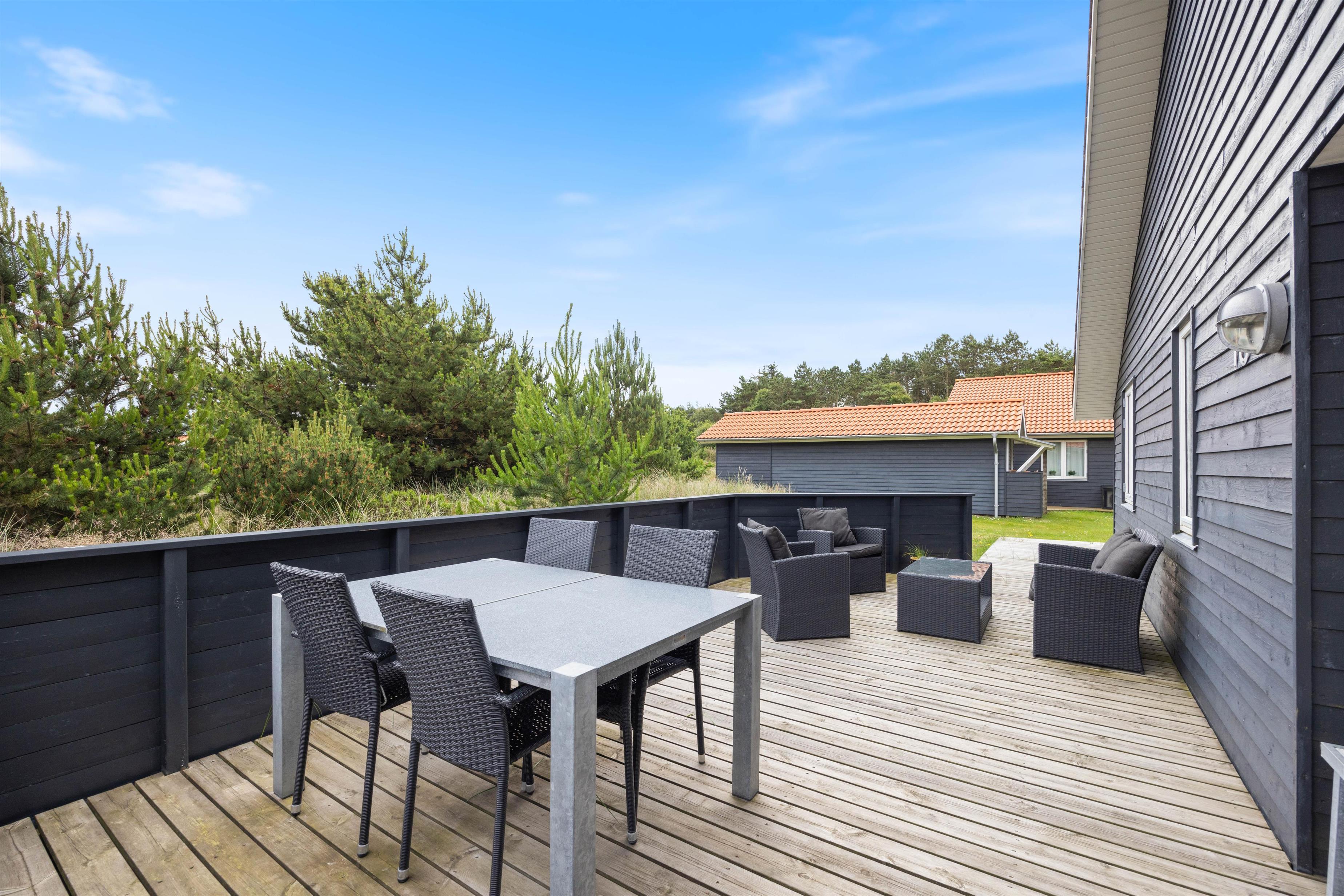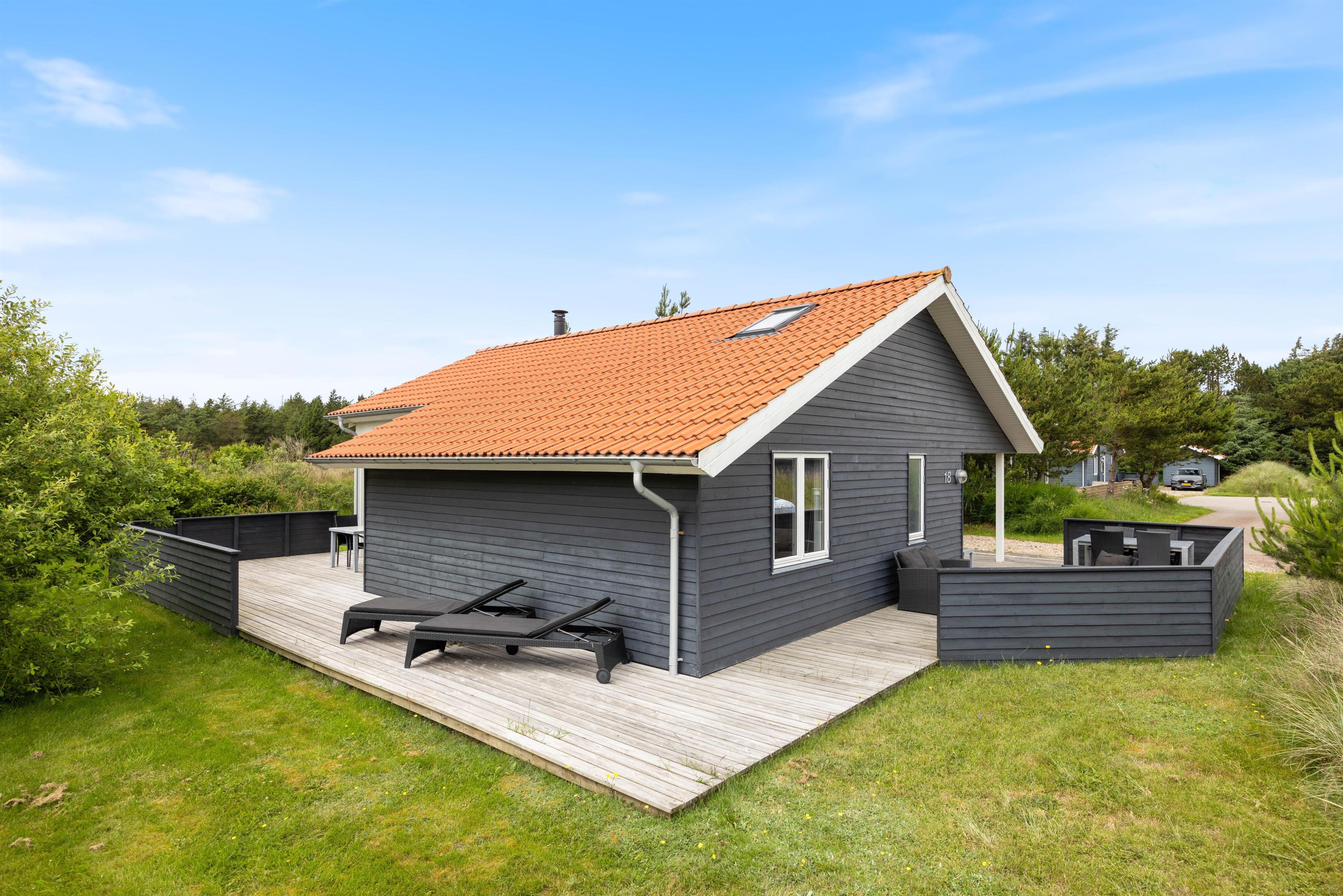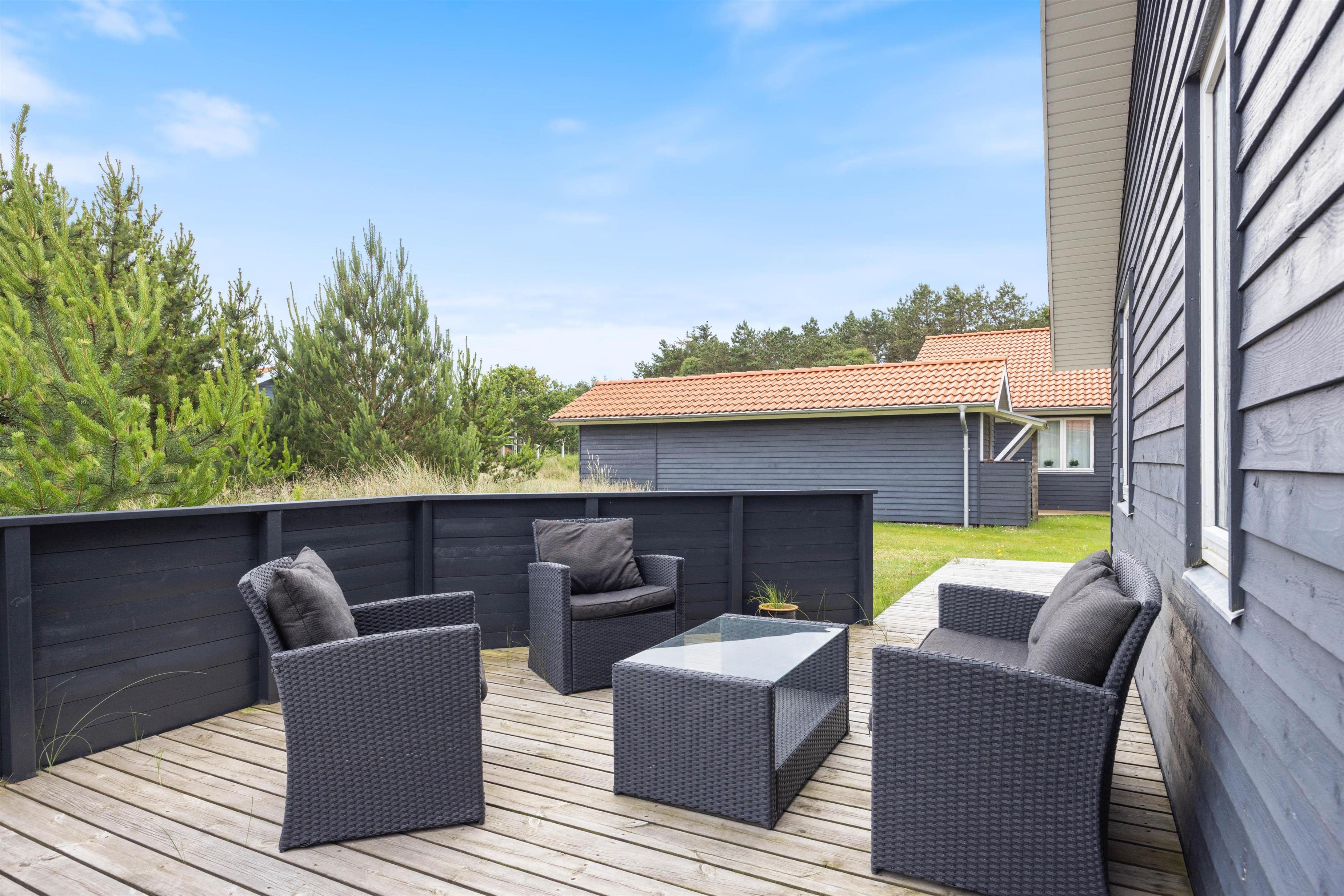 Sommerhuset på Fjand Strand 18 i Fjand, har en stor overdækket og afskærmet terrasse, hvor I har rig mulighed for at tilbringe en masse timer, hvis det danske sommervejr indbyder til det. På sommerhusets terrasse finder I havemøbler, liggestole og en grill, så her har I rig mulighed for bare at nyde, at I har ferie sammen.