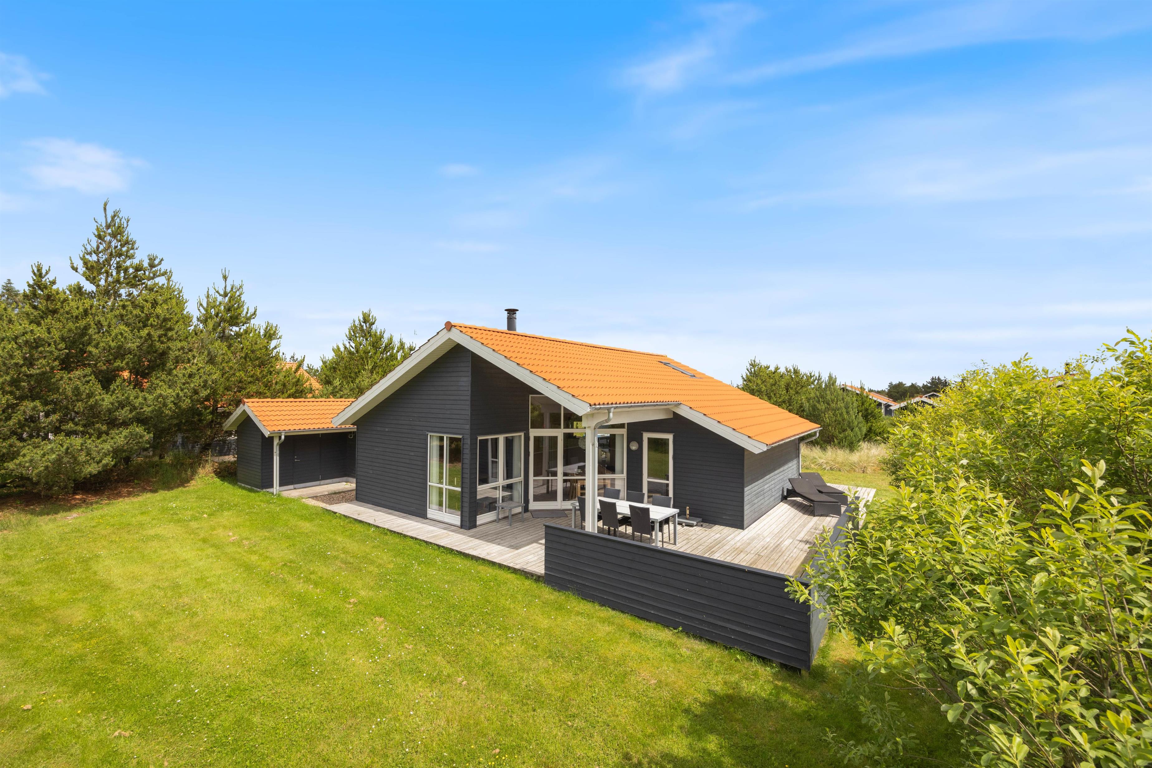Området omkring sommerhuset er stille og roligt, og blot 1200 meter væk i gåafstand, finder I den kilometer lange sandstrand, og det brusende Vesterhav, som indbyder til, at I tager en tur i vandet for at blive kølet ned på de varme sommerdage.