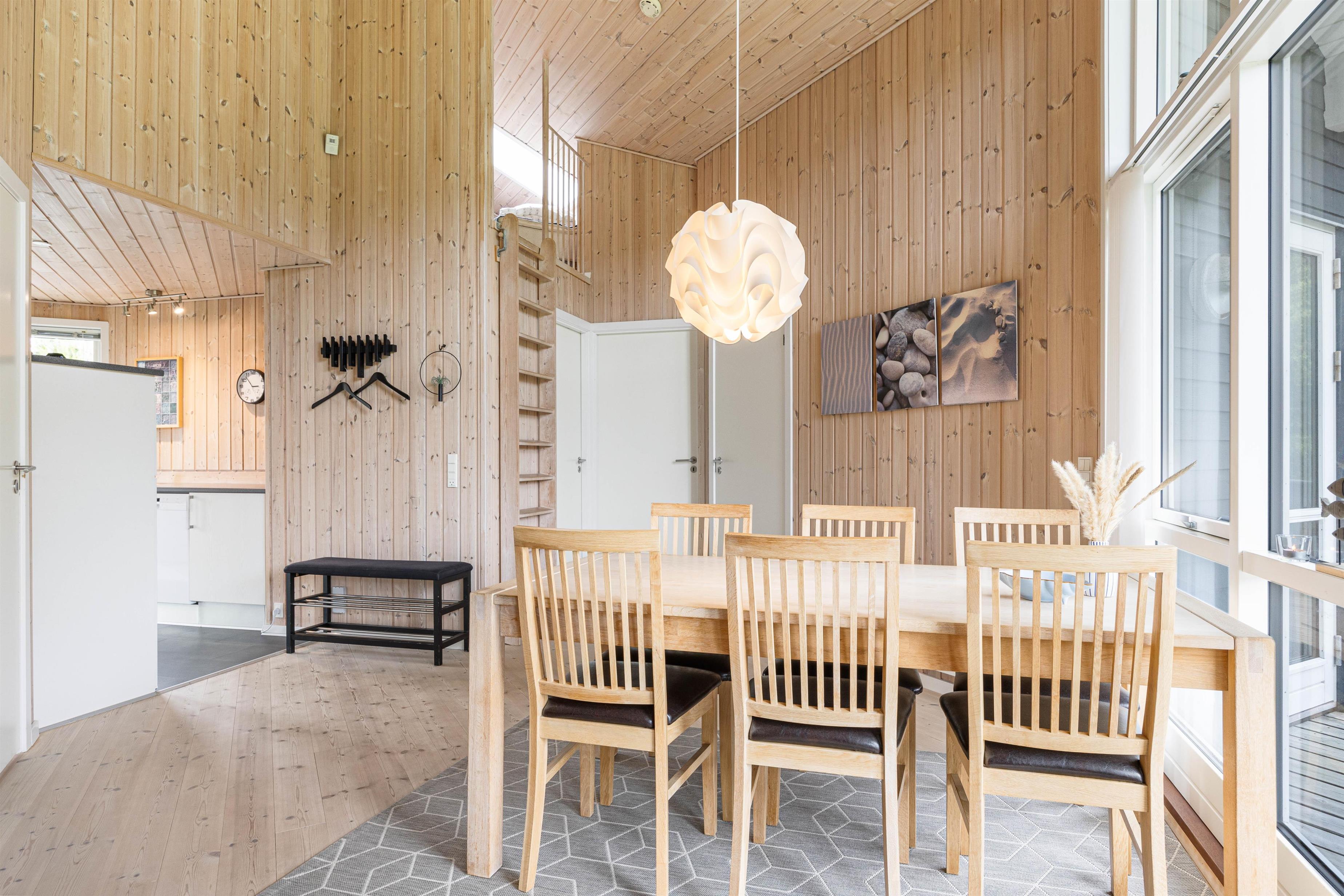 Lige så snart I træder ind i dette velindrettede sommerhus, bliver I mødt af en klassisk og hyggelig sommerhusstemning, og et åbent køkkenalrum, som gør at hele familien kan være samlet, uanset om I står i køkkenet og tilbereder et lækkert måltid, eller om I sidder ved spisebordet og planlægger feriens næste aktiviteter.
