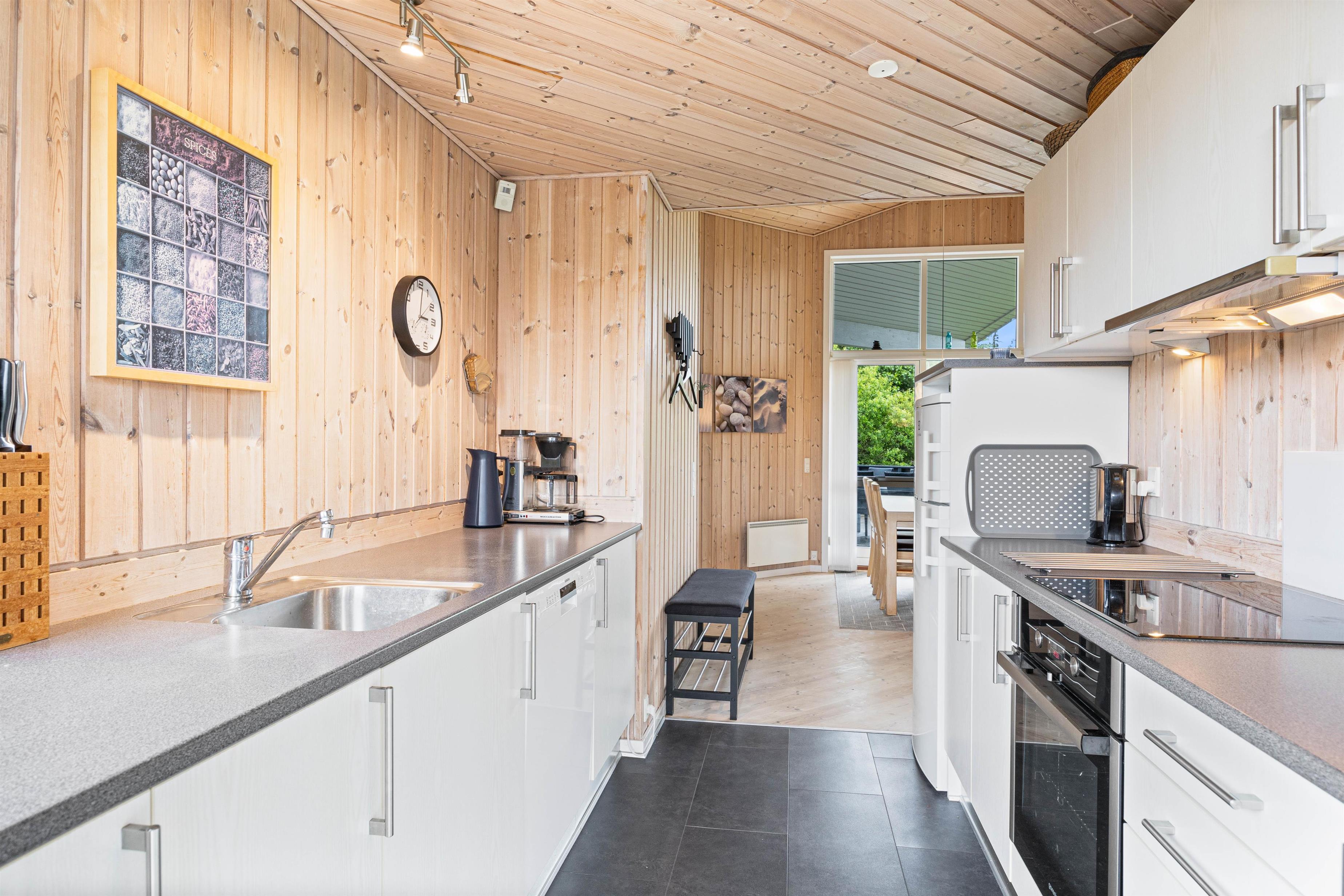 Køkkenet er funktionelt indrettet og udstyret med en opvaskemaskine, så I slipper for den kedelige opvask og i stedet kan nyde jeres ferie i fulde drag sammen med familien.