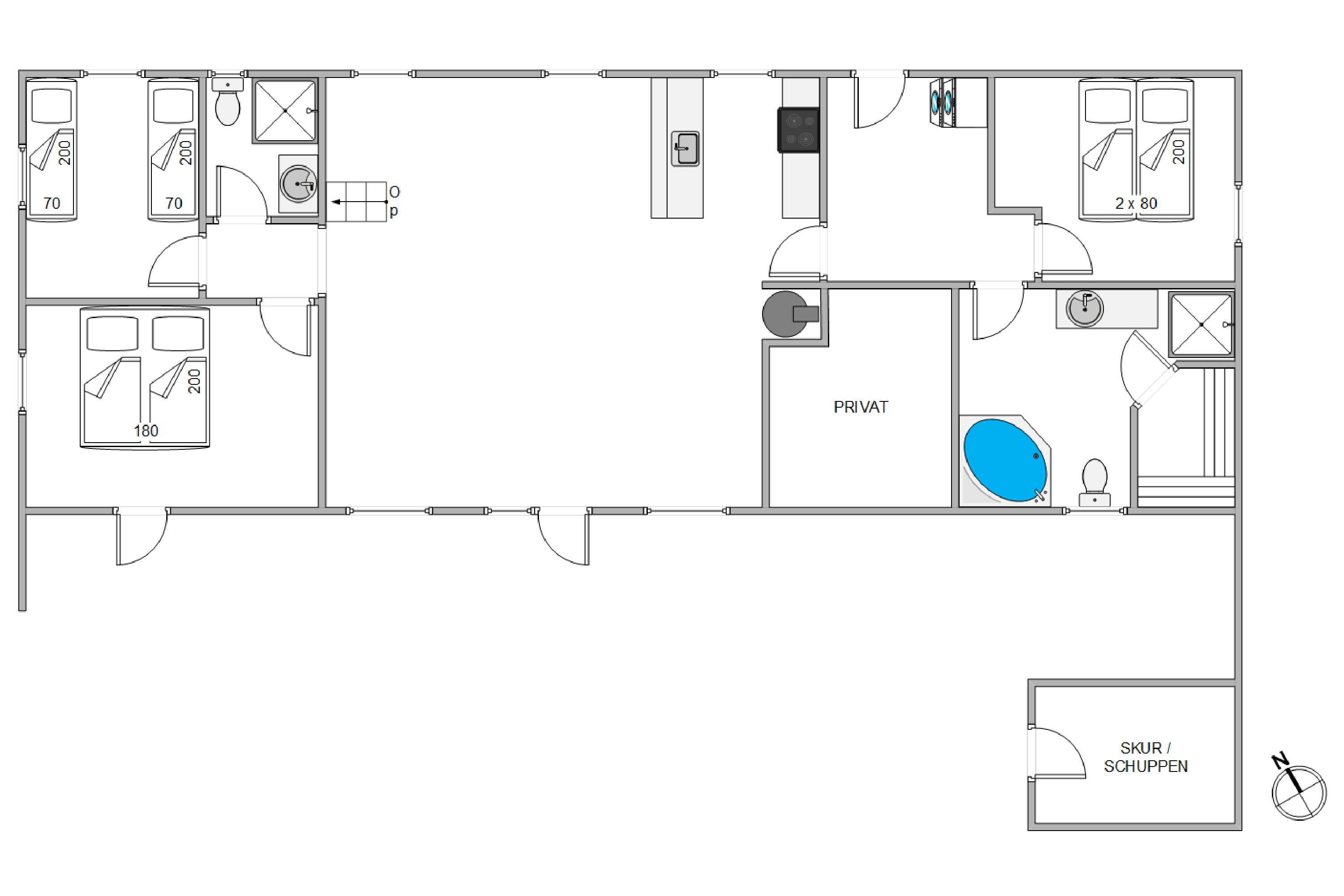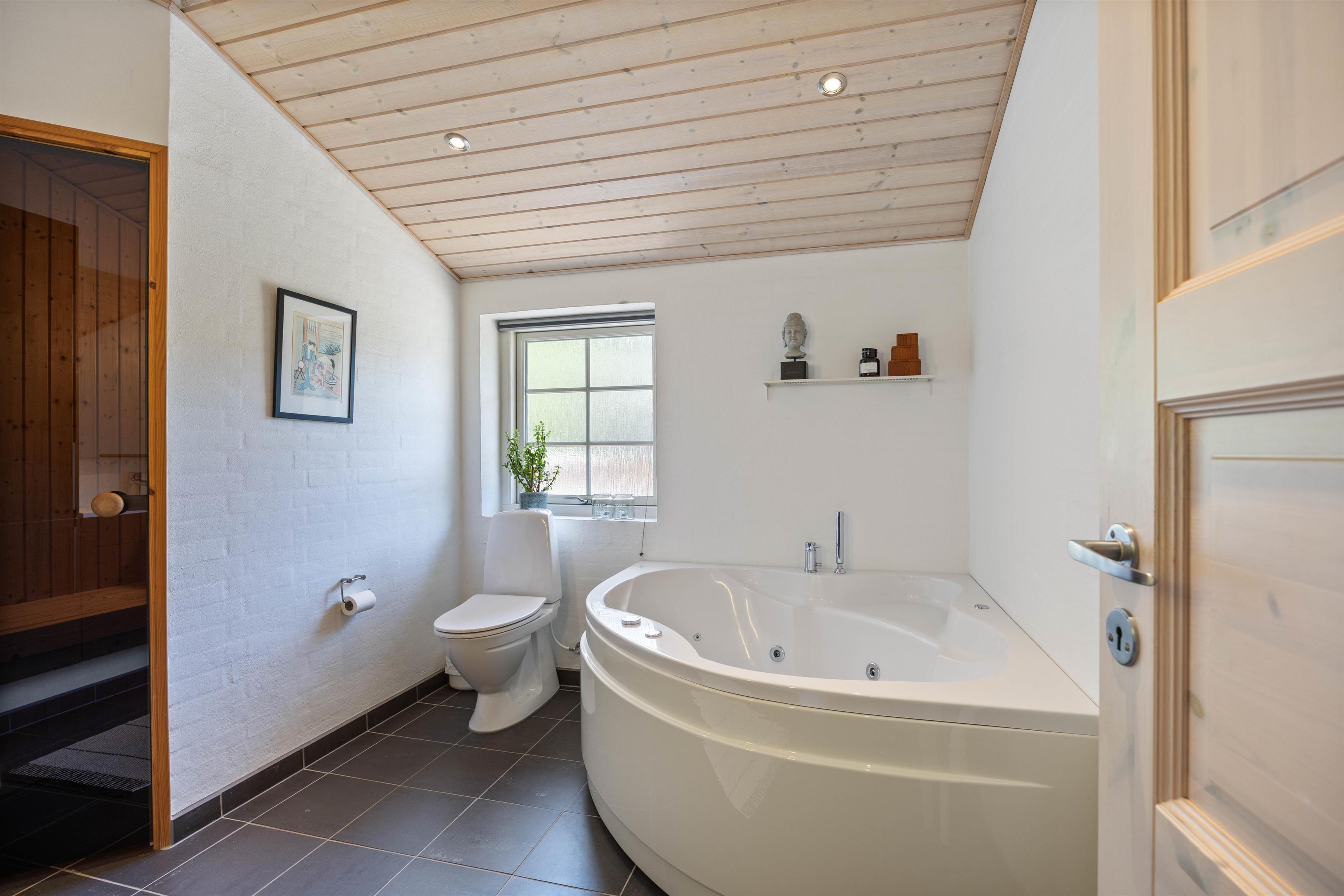 Dette sommerhus tilbyder tilmed 2 moderne badeværelser, hvilket altid er rart, hvis I er flere personer. På det ene badeværelse kan I virkelig slå koldt vand i blodet og bare slappe af. Her er der spabad og sauna. Saunaen er lige netop for dem, der ønsker at slappe af og lindre spændinger i krop og sind.
