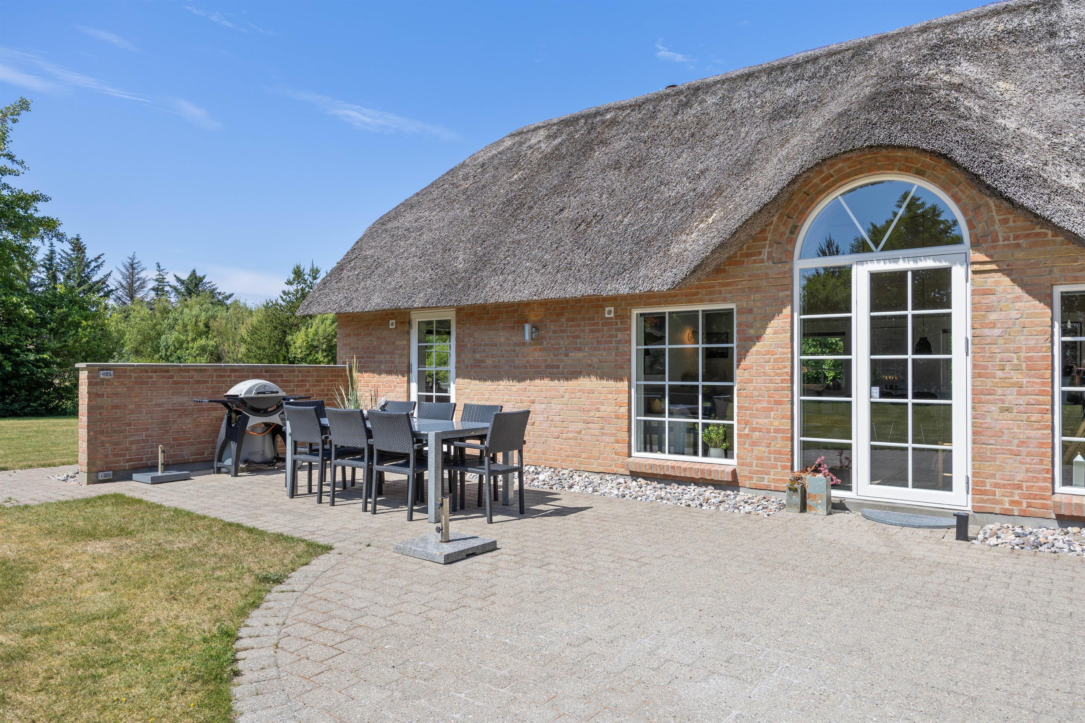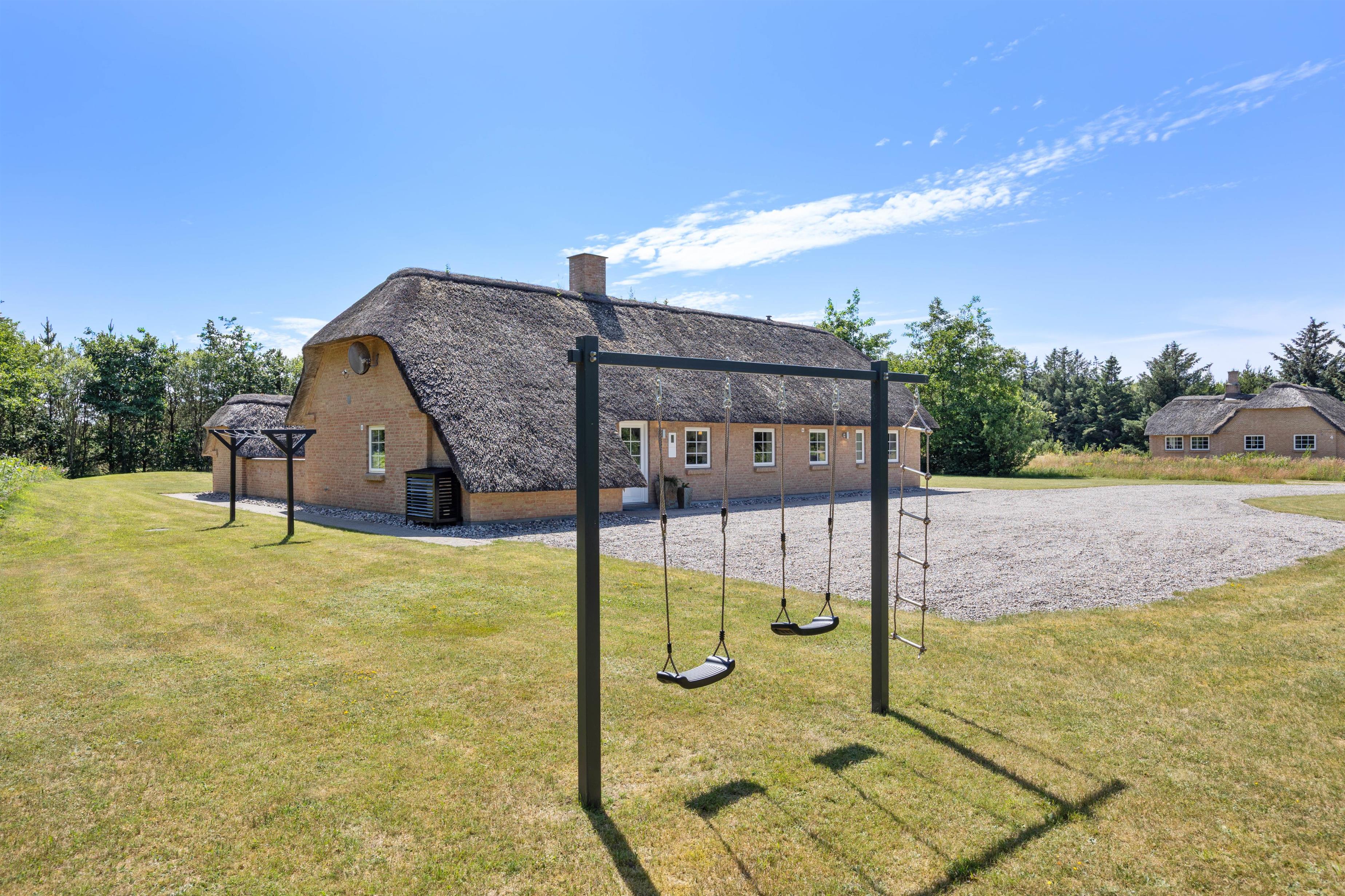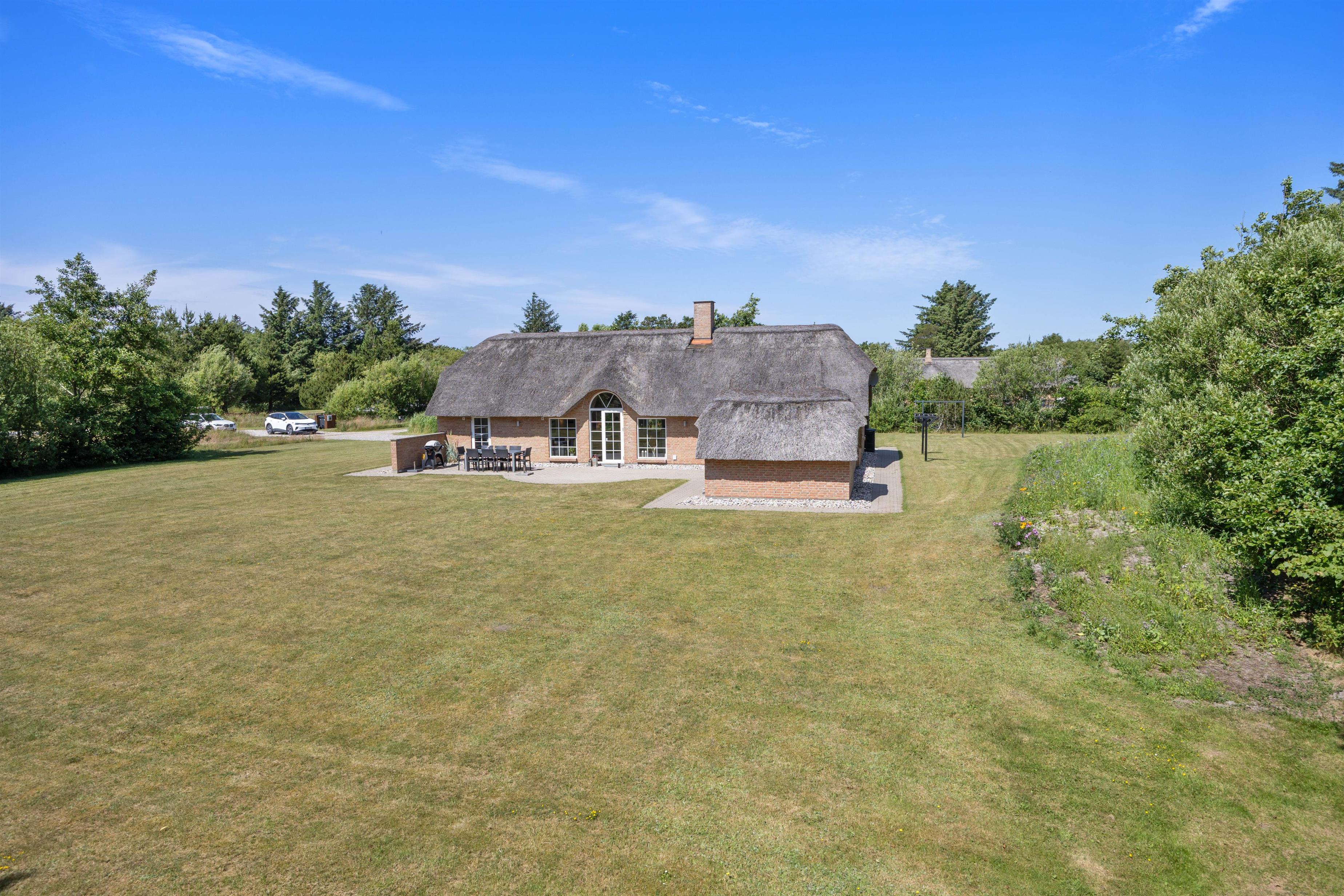 Udenfor på Lyngklitvej 3 venter en stor plænegrund på 3.500 m², hvor der er plads til at strække benene, og hvor børnene kan lege trygt. Sommerhuset har en åben terrasse, som gør det muligt at nyde morgenkaffen under åben himmel. Havemøblerne indbyder til lange middage i solnedgangen eller hyggelige grillaftener med de nærmeste. En gynge i haven kan skabe fornøjelse for de mindste, mens jeres bedste ven med fire ben hygger sig sammen med jer – for her er hunde hjertelig velkomne, dog kun én hund.