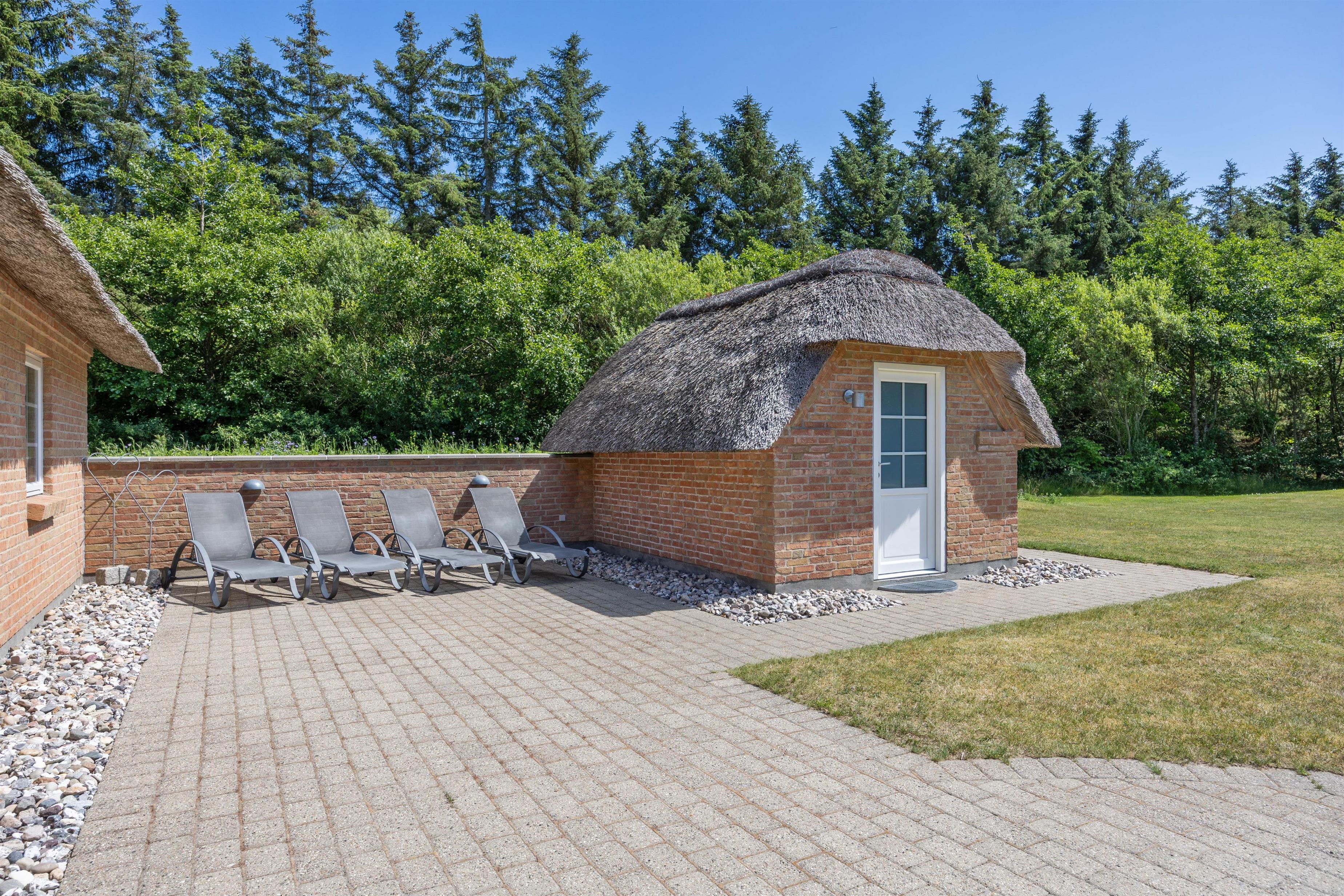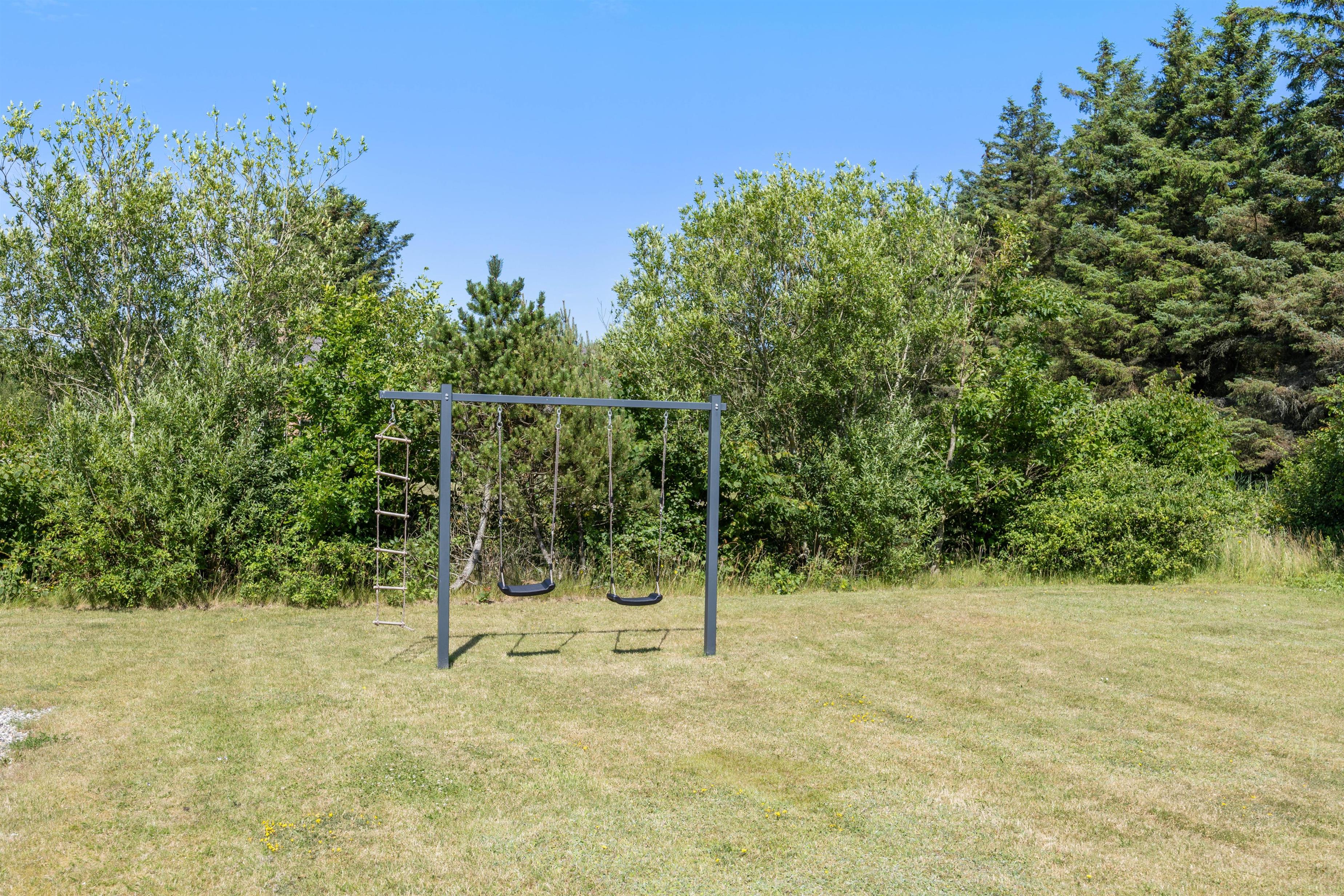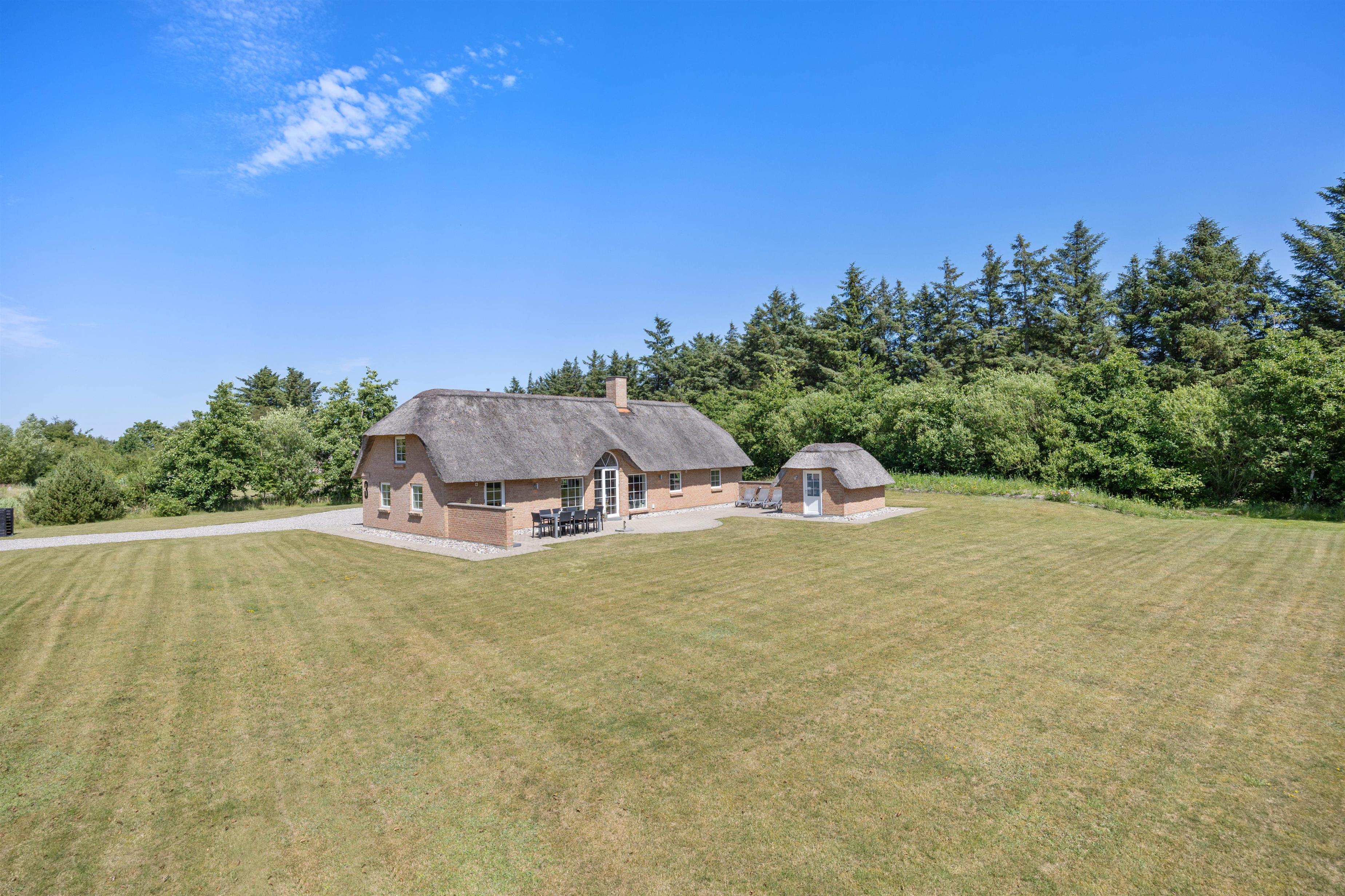 Udenfor på Lyngklitvej 3 venter en stor plænegrund på 3.500 m², hvor der er plads til at strække benene, og hvor børnene kan lege trygt. Sommerhuset har en åben terrasse, som gør det muligt at nyde morgenkaffen under åben himmel. Havemøblerne indbyder til lange middage i solnedgangen eller hyggelige grillaftener med de nærmeste. En gynge i haven kan skabe fornøjelse for de mindste, mens jeres bedste ven med fire ben hygger sig sammen med jer – for her er hunde hjertelig velkomne, dog kun én hund.
