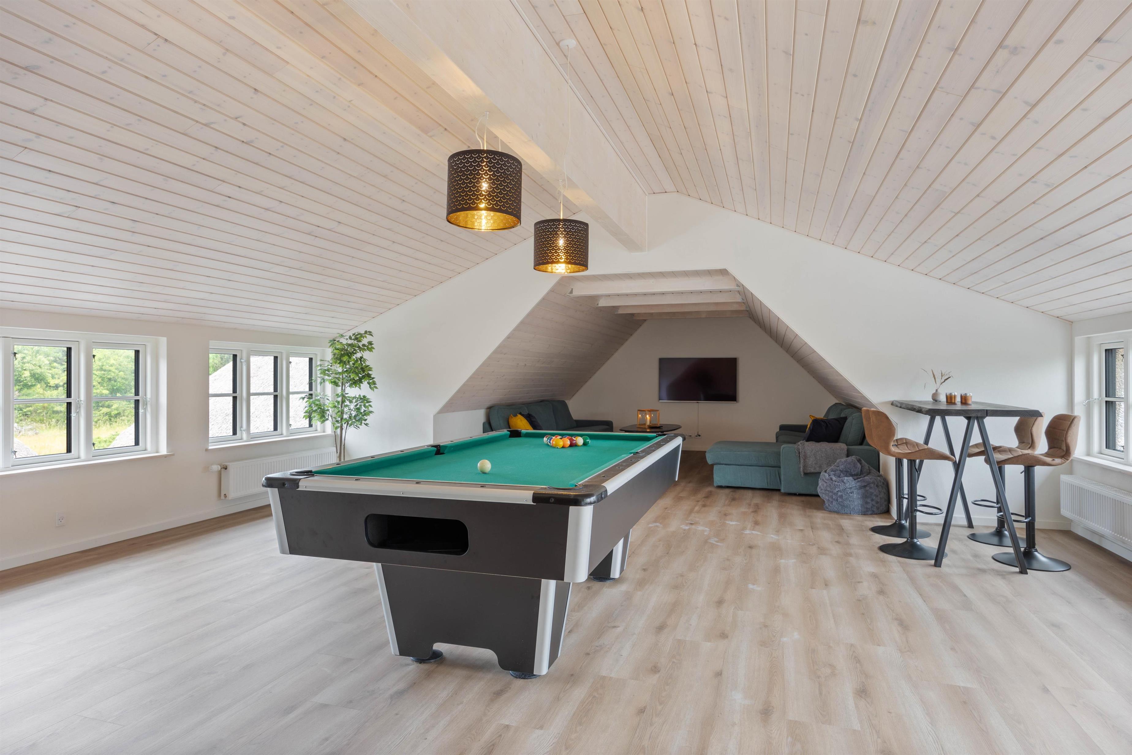 Illeborgvej 27 byder jer indenfor i til en dejlig stor opholdsstue som er i direkte forbindelse med det åbne køkken. Fra køkkenet har I også udgang til den dejlige terrasse udenfor og I kan følge med i aktiviteterne udenfor via de store vinduespartier. Derudover findes også et aktivitetsrum med både bordtennis og pool, så I kan tage en dyst blandt familiens medlemmer.