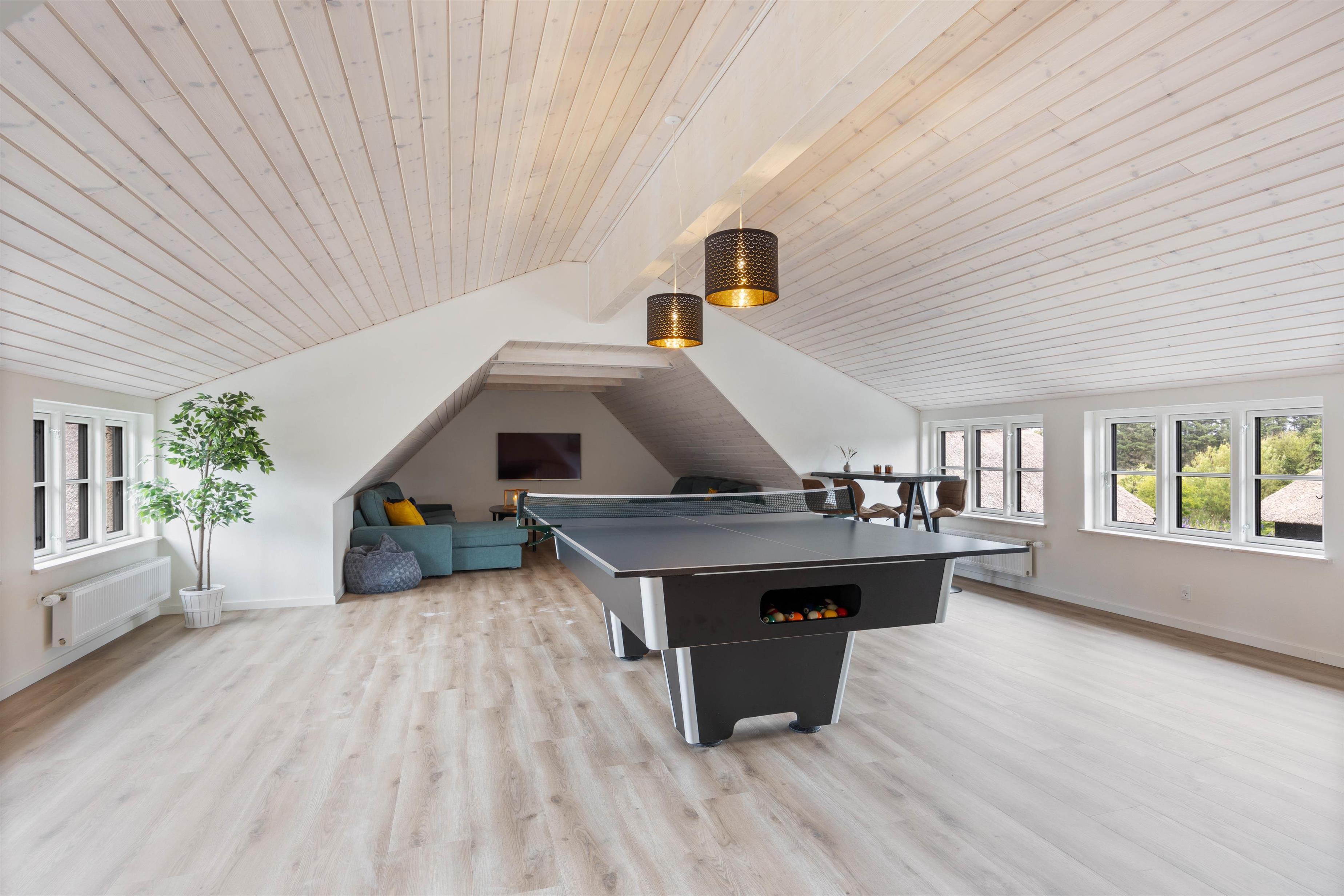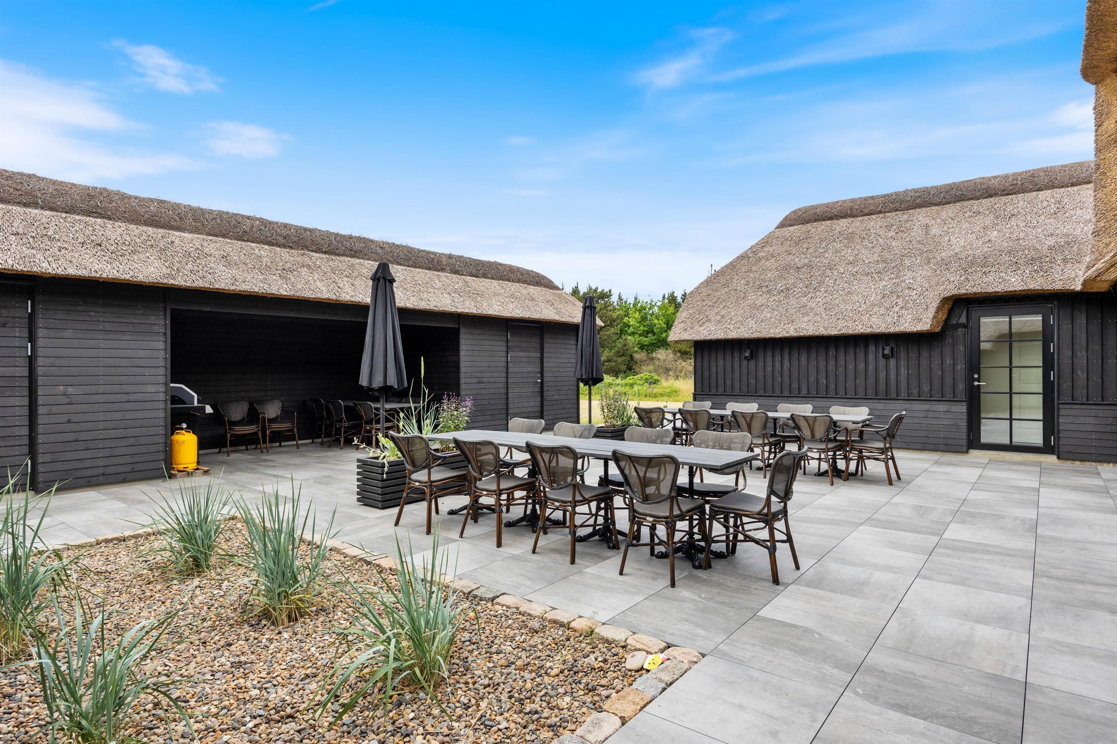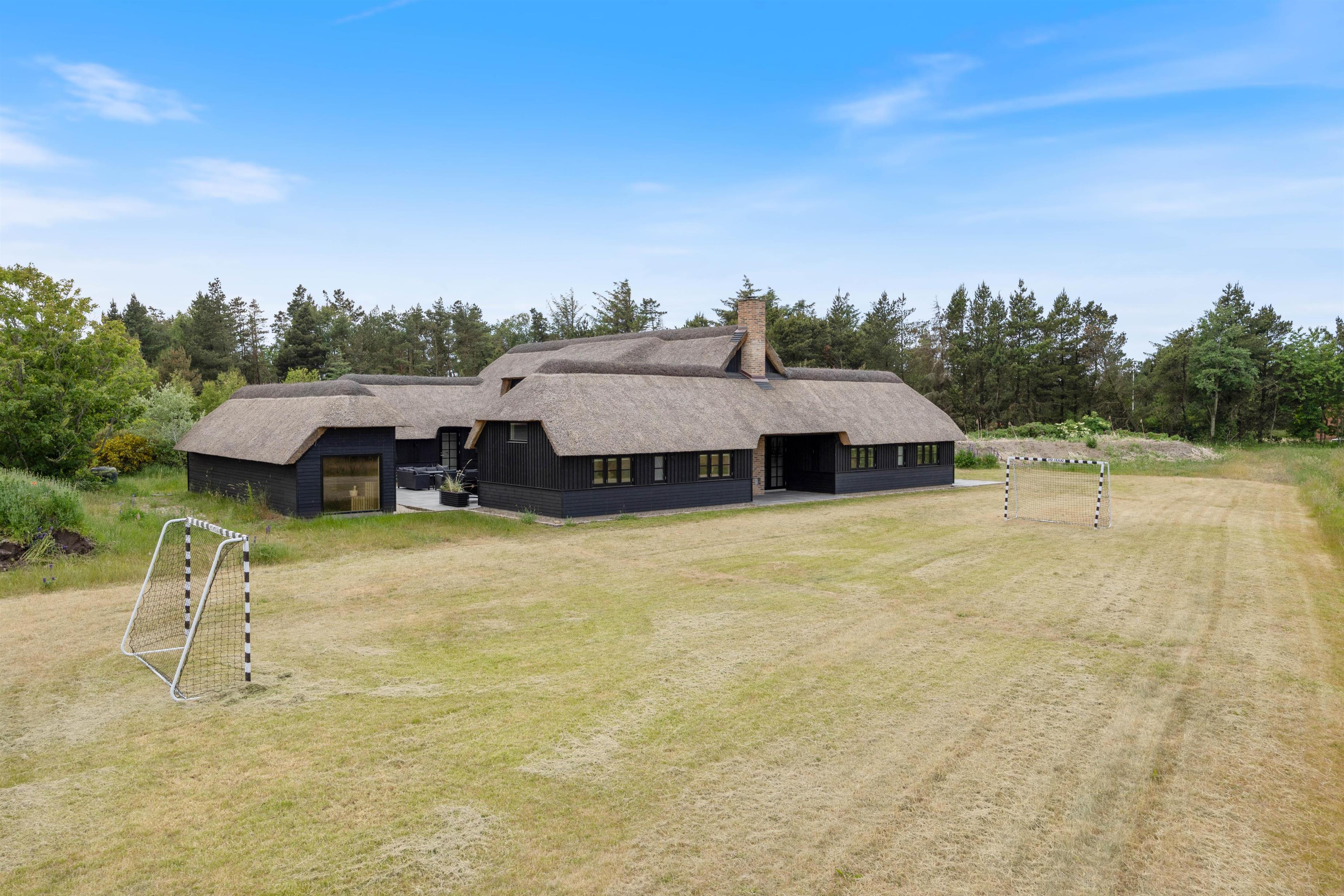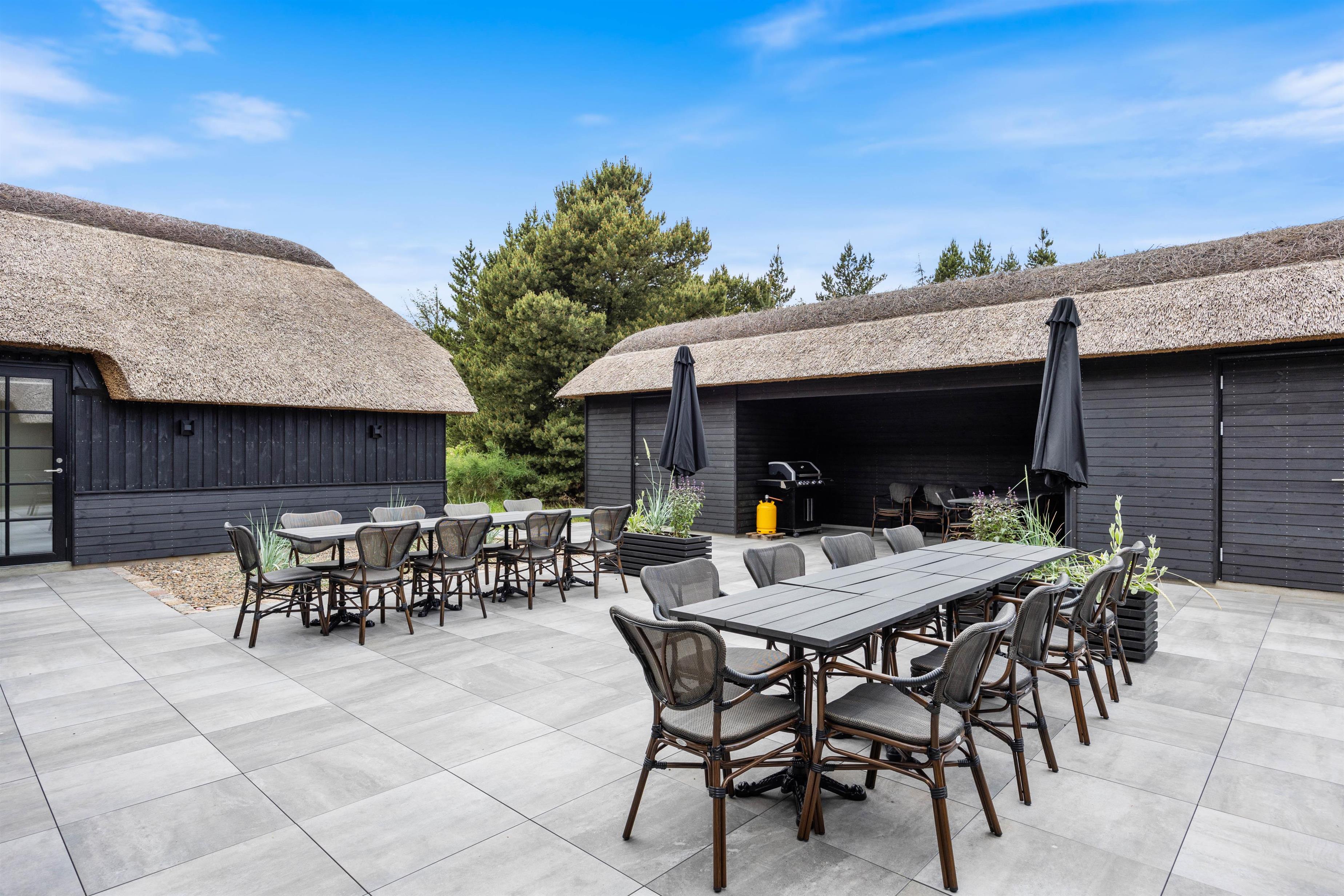 Det moderne og stilrene sommerhus på Illeborgvej 27 er bygget i 2022. Sommerhuset er meget rummeligt med en størrelse på 426 m2 og har plads til 20 personer og 3 hunde. Her er flere aktivitetsmuligheder, bl.a. i form af udespa, udebruser og udesauna, så underholdningen for alle er på plads. Sommerhuset på illeborgvej 27 ligger knap 1 km fra Vesterhavet, hvor I kan nyde lange gåture på stranden, mens I lytter til bølgernes brusen.