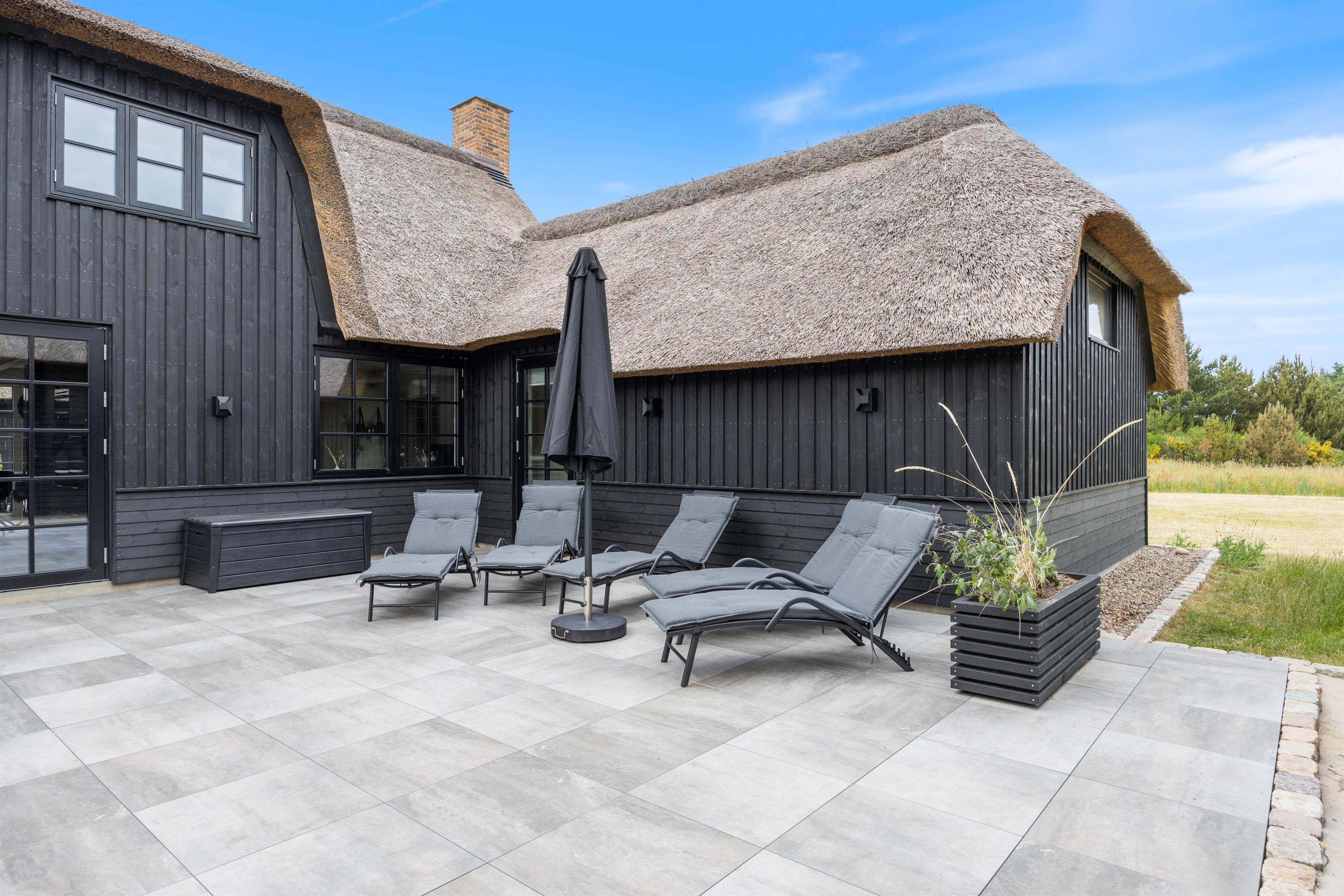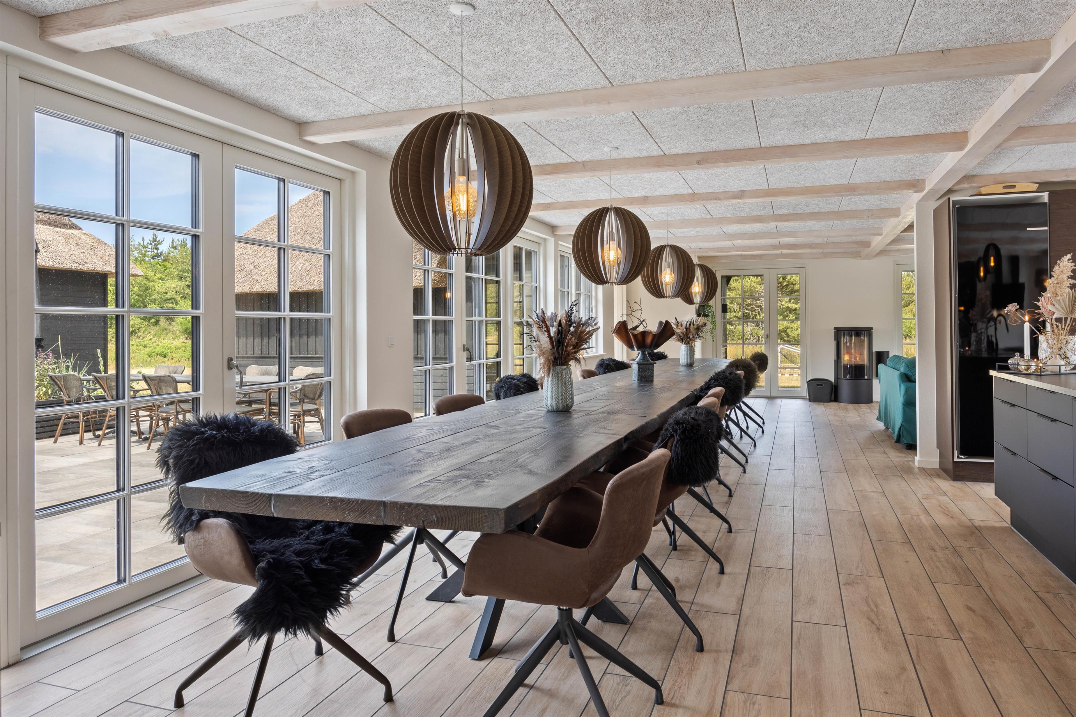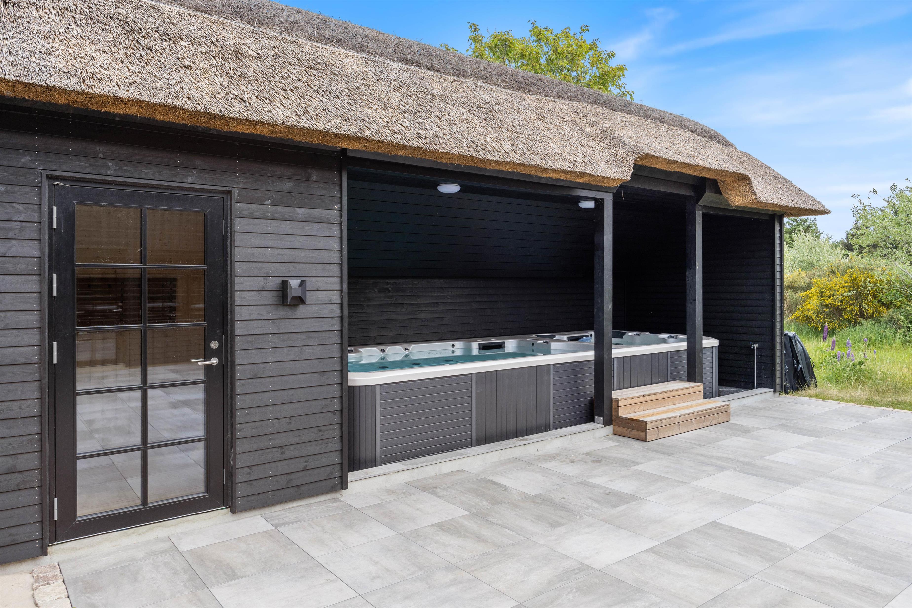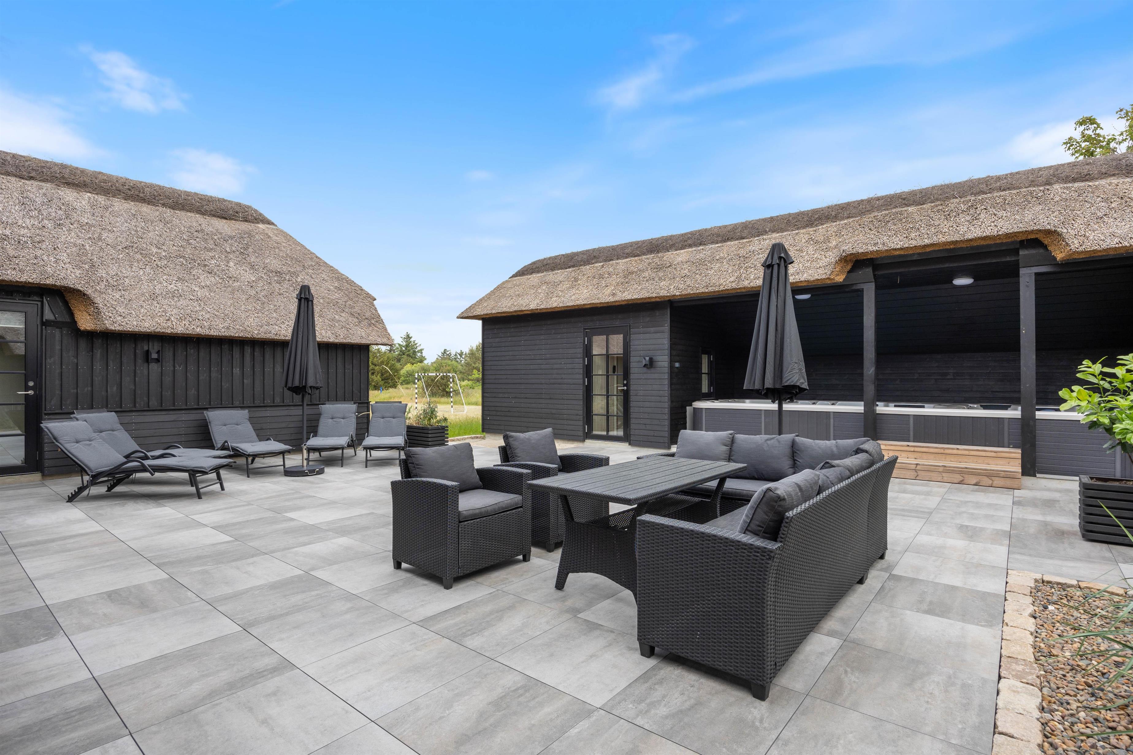 Det moderne og stilrene sommerhus på Illeborgvej 27 er bygget i 2022. Sommerhuset er meget rummeligt med en størrelse på 426 m2 og har plads til 20 personer og 3 hunde. Her er flere aktivitetsmuligheder, bl.a. i form af udespa, udebruser og udesauna, så underholdningen for alle er på plads. Sommerhuset på illeborgvej 27 ligger knap 1 km fra Vesterhavet, hvor I kan nyde lange gåture på stranden, mens I lytter til bølgernes brusen.