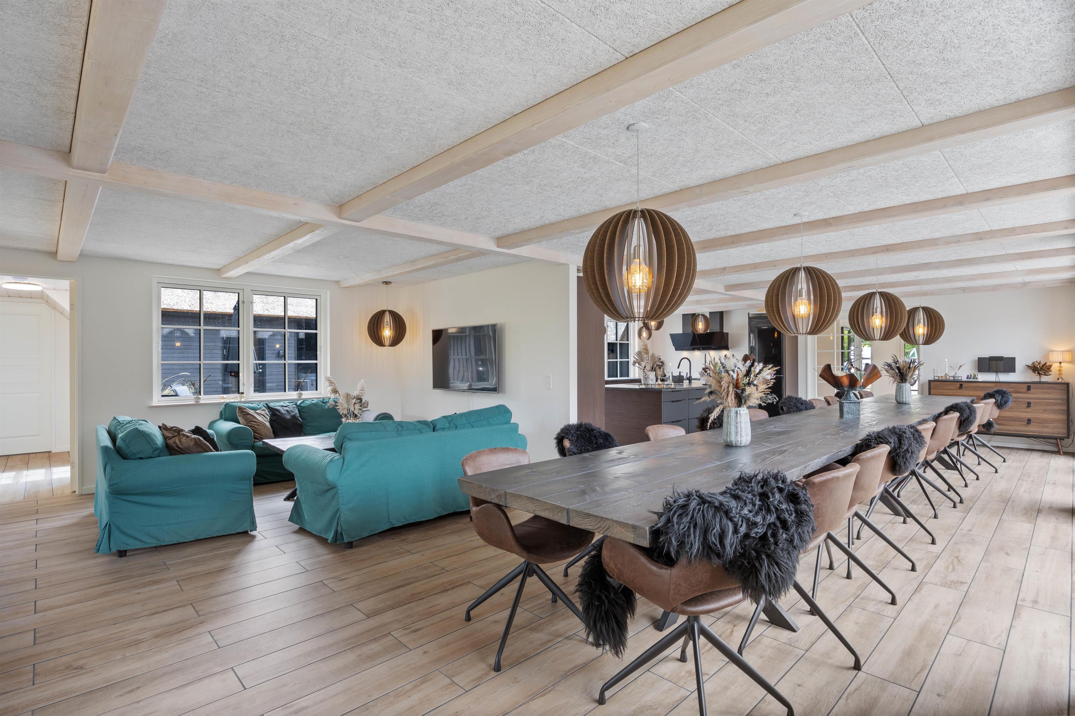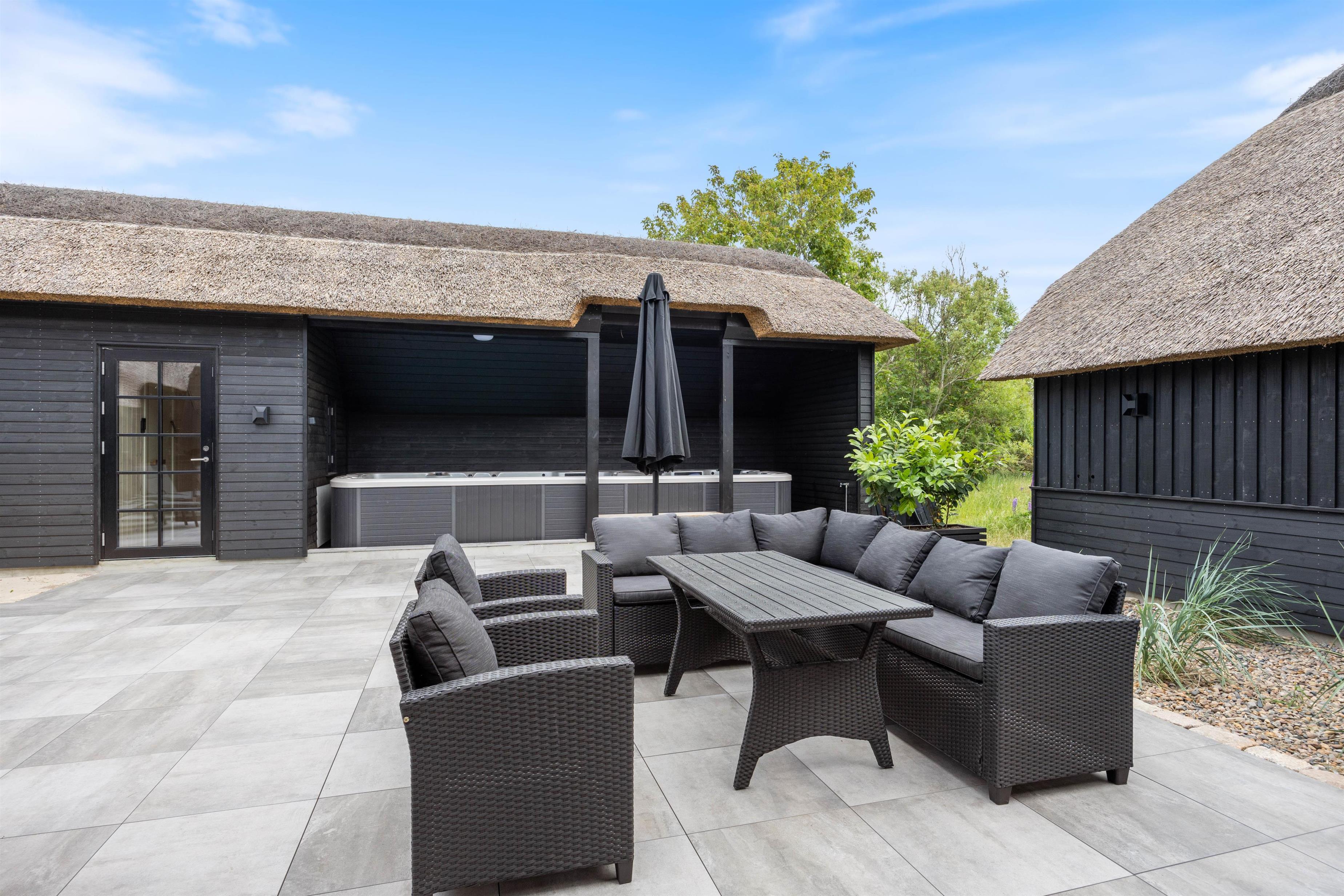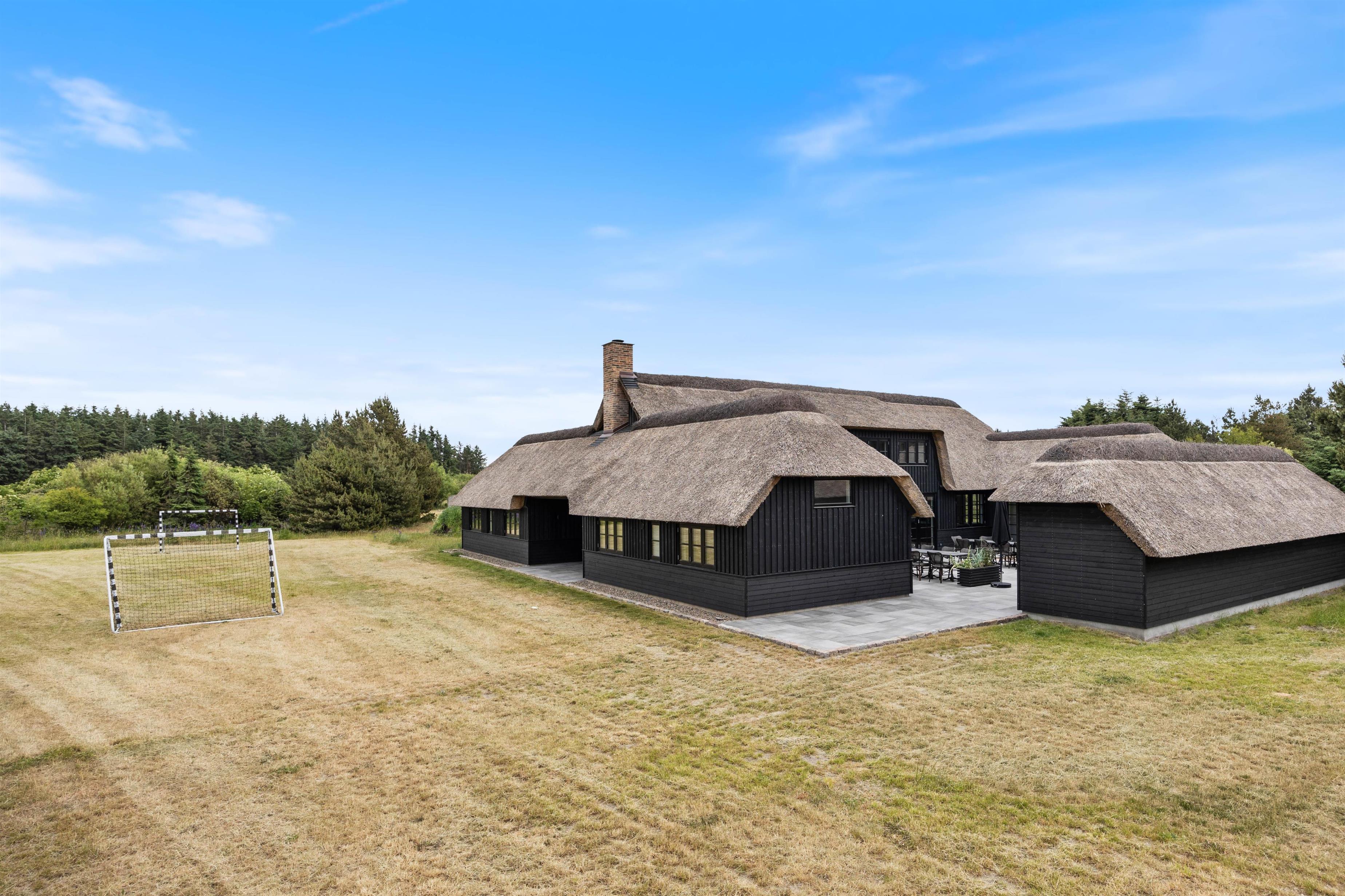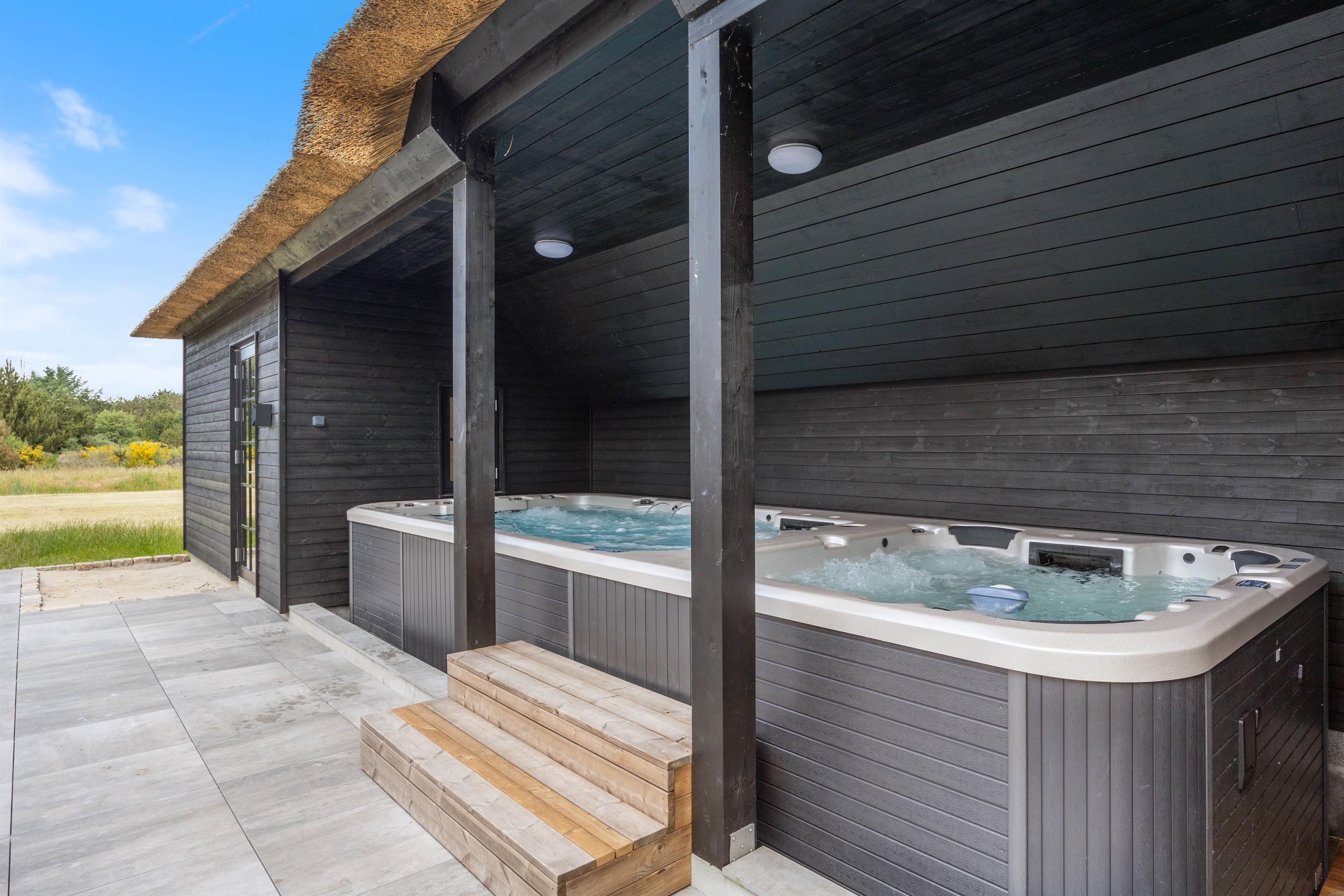 Det moderne og stilrene sommerhus på Illeborgvej 27 er bygget i 2022. Sommerhuset er meget rummeligt med en størrelse på 426 m2 og har plads til 20 personer og 3 hunde. Her er flere aktivitetsmuligheder, bl.a. i form af udespa, udebruser og udesauna, så underholdningen for alle er på plads. Sommerhuset på illeborgvej 27 ligger knap 1 km fra Vesterhavet, hvor I kan nyde lange gåture på stranden, mens I lytter til bølgernes brusen.