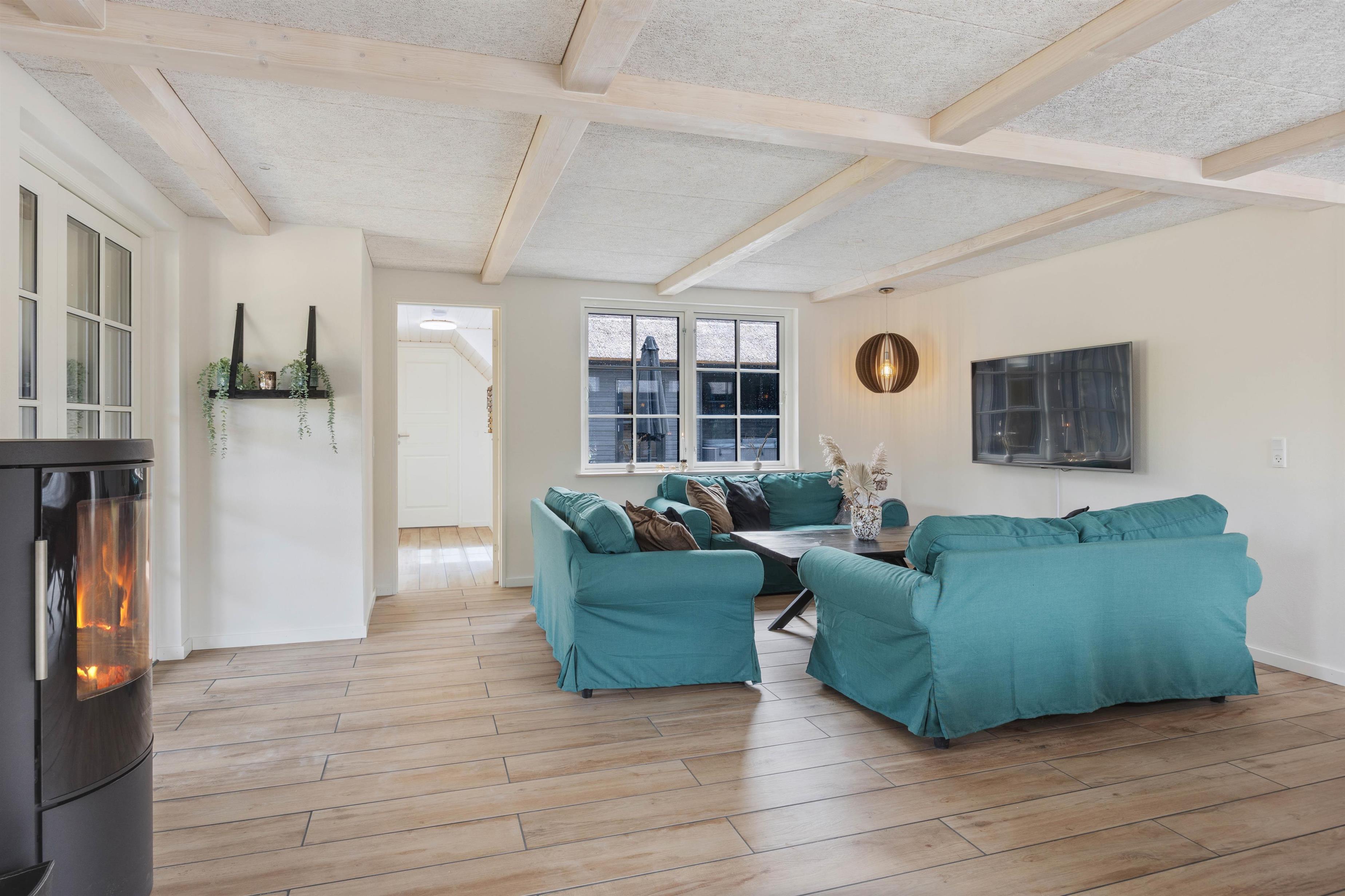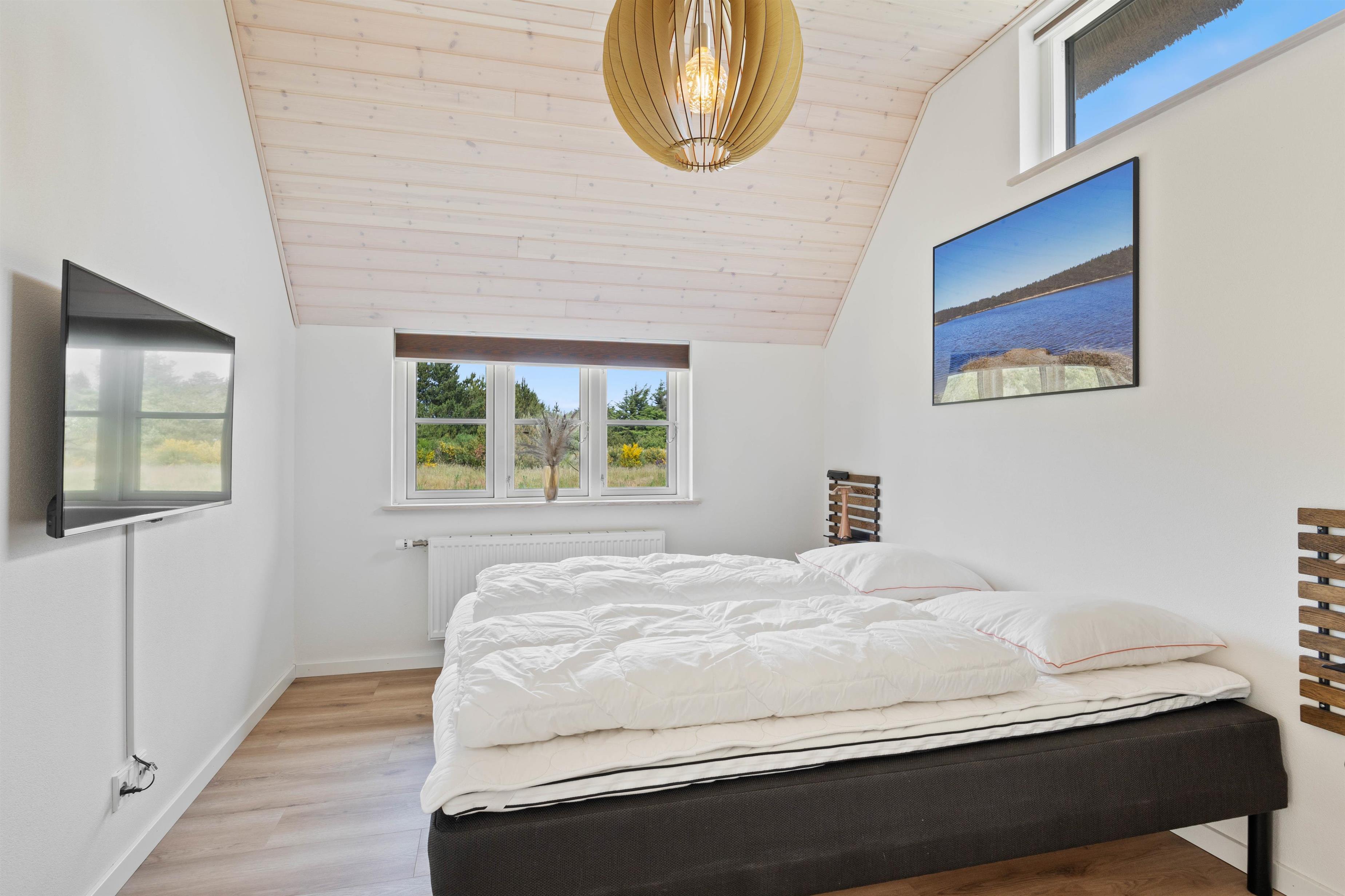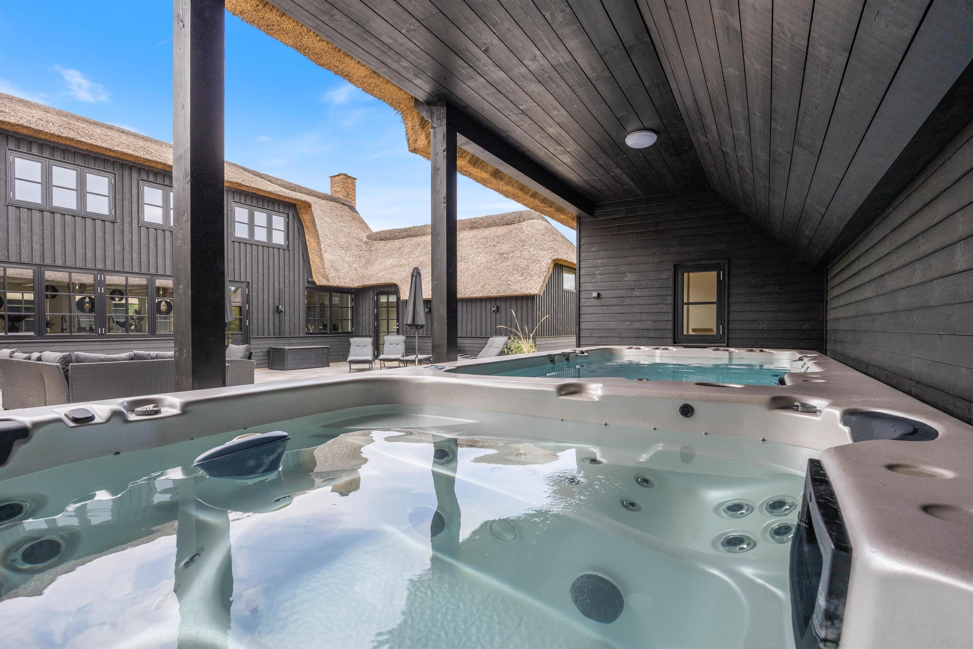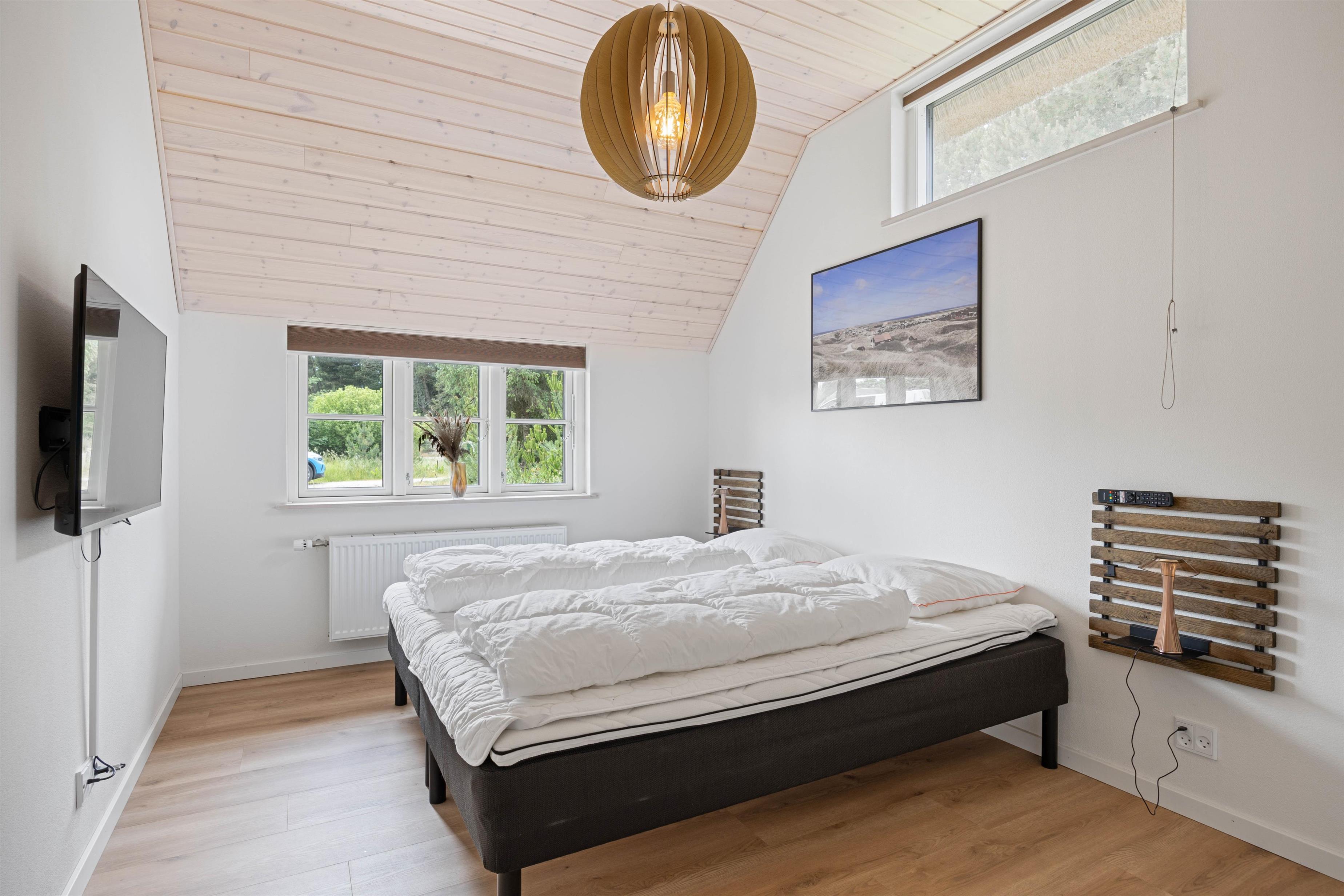 Det moderne og stilrene sommerhus på Illeborgvej 27 er bygget i 2022. Sommerhuset er meget rummeligt med en størrelse på 426 m2 og har plads til 20 personer og 3 hunde. Her er flere aktivitetsmuligheder, bl.a. i form af udespa, udebruser og udesauna, så underholdningen for alle er på plads. Sommerhuset på illeborgvej 27 ligger knap 1 km fra Vesterhavet, hvor I kan nyde lange gåture på stranden, mens I lytter til bølgernes brusen.