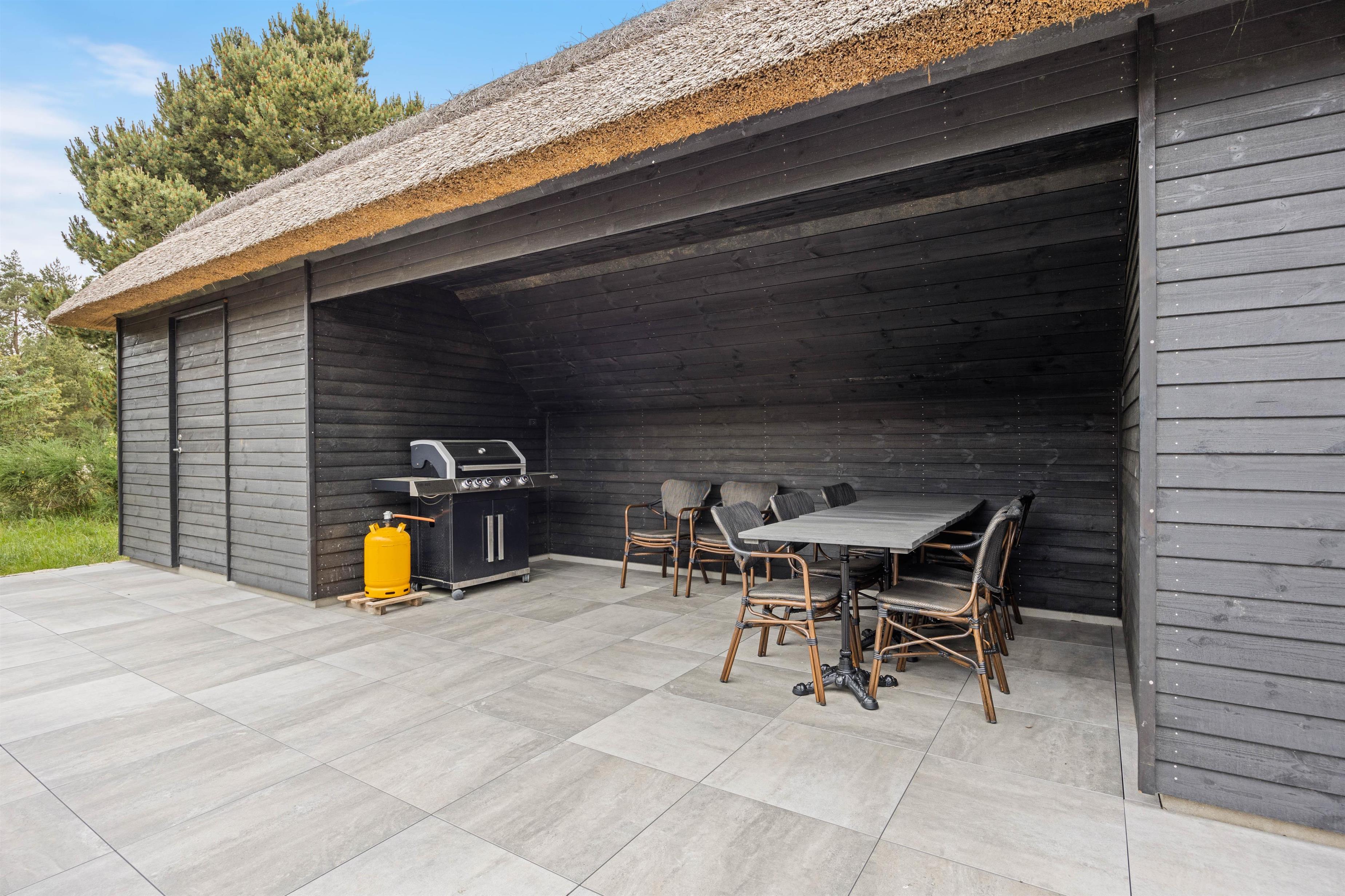 Sommerhuset ligger på en dejlig ugeneret grund, omkranset af træer i Husby klitplantage og stadig i gåafstand til både hav og fjord. Der er en skøn terrasse med udekøkken og havemøbler. Ligeledes er der en sandkasse, som kan fornøje de mindste i familien, imens de voksne nyder et lille glas på terrassen eller solbader på en af de mange solvogne.