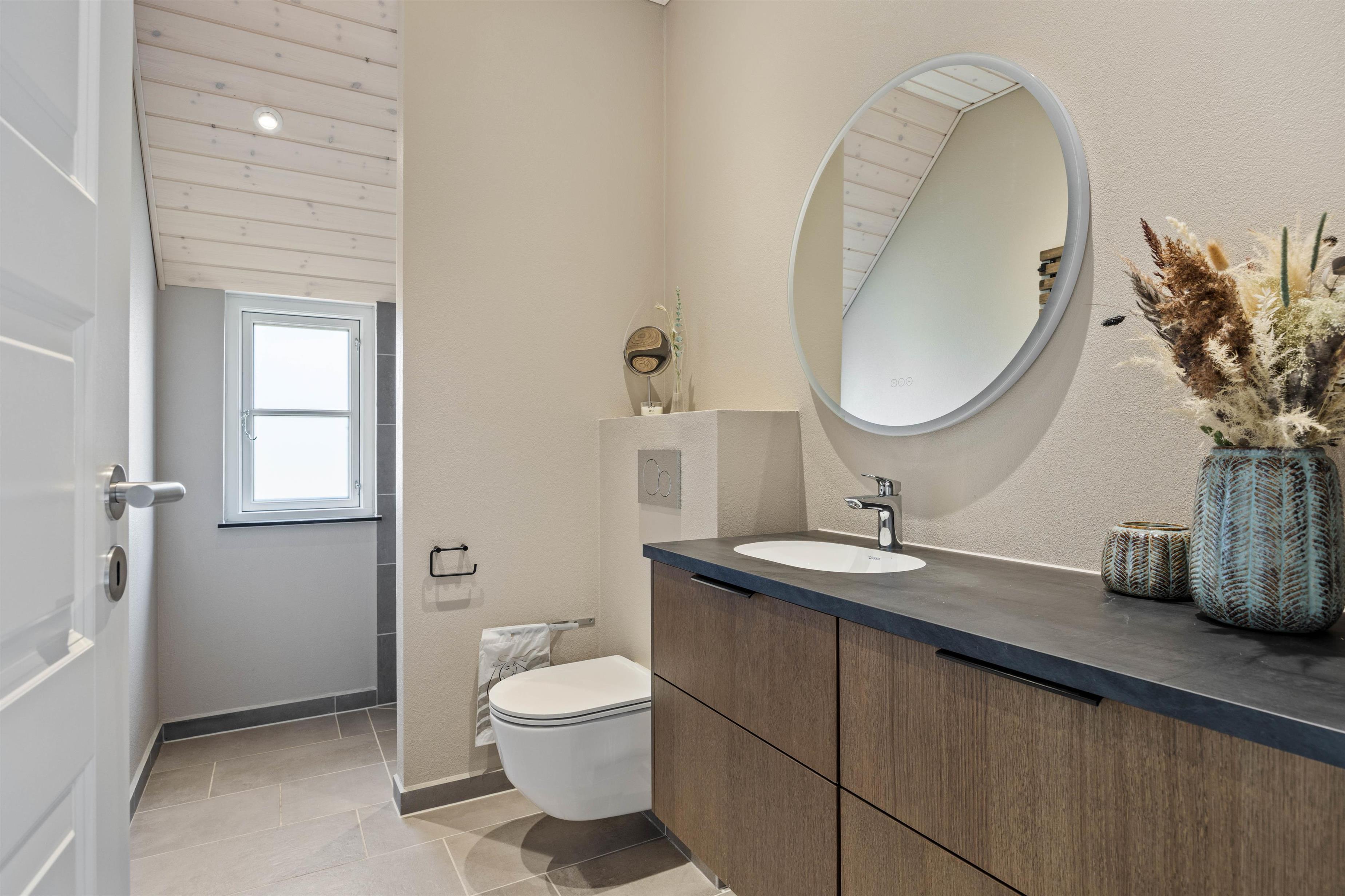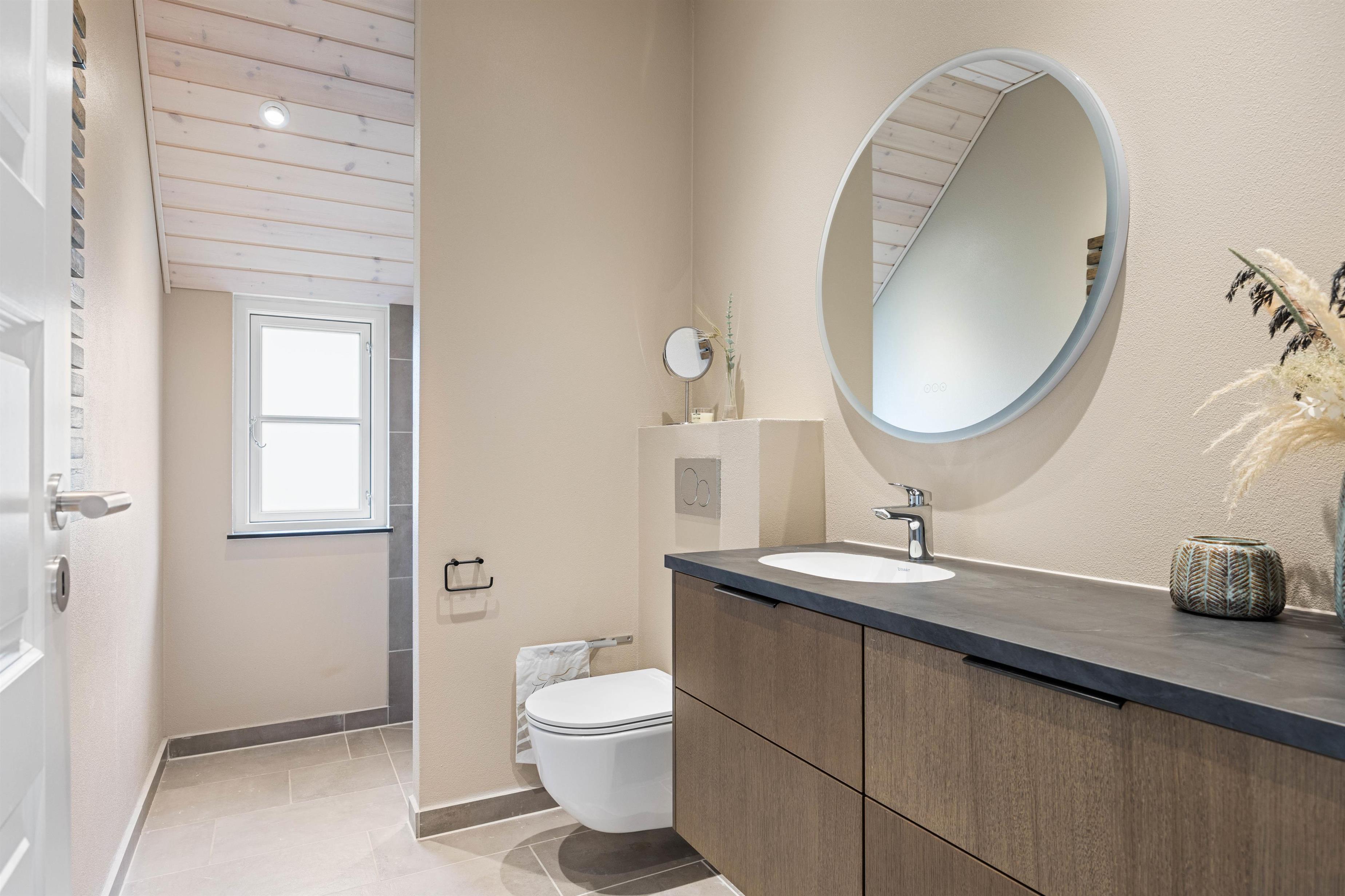 Alle badeværelser er smagfuldt indrettet og indbyder til afslapning og ro og velvære. Ydermere er der også vaskemaskine og tørretumbler til fri afbenyttelse, således at I nemt kan få vasket tøj under ferien.