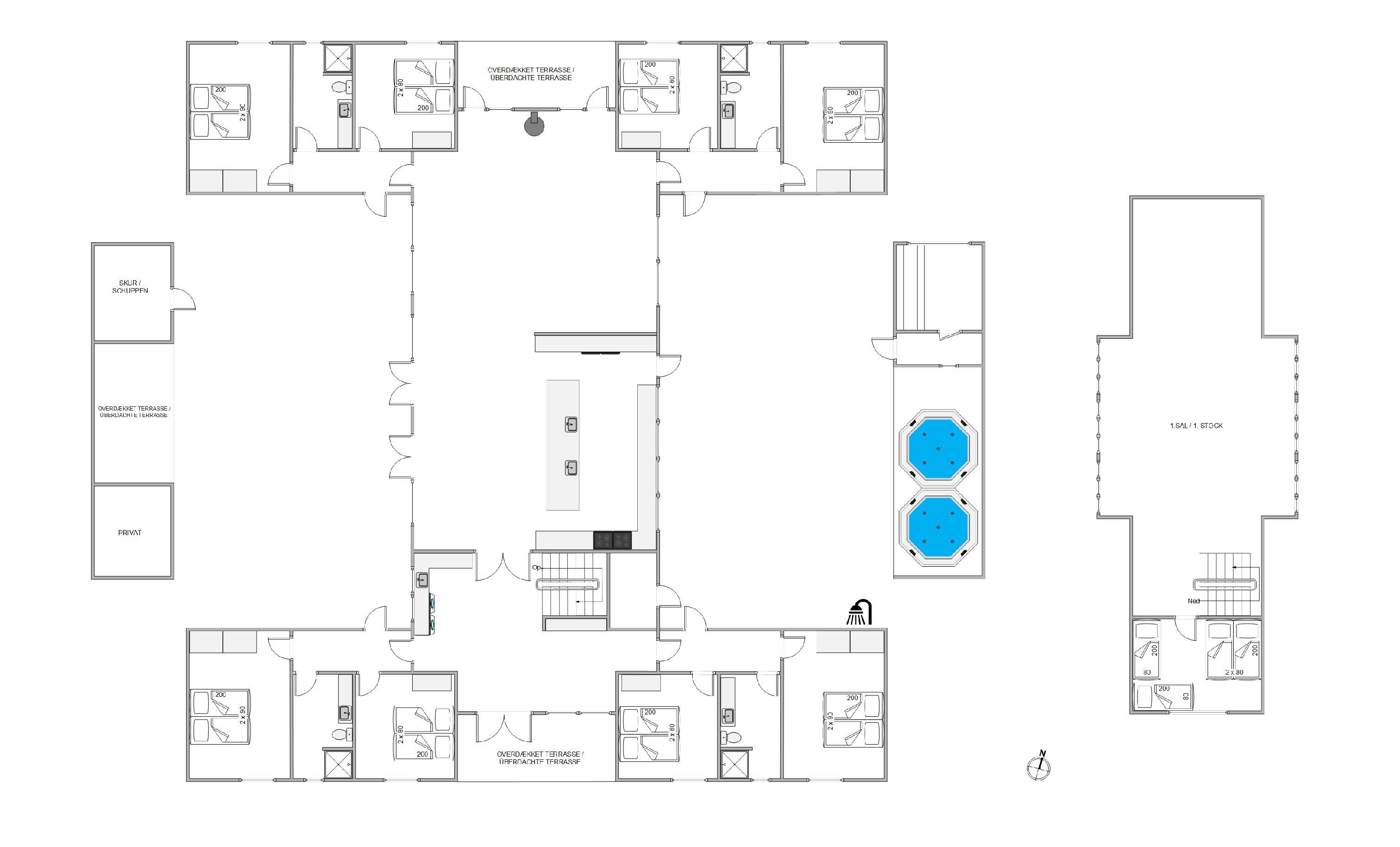 5. soverum/sengestørrelser2 værelser med 2x90x200 og 2 værelser med 2x80x200