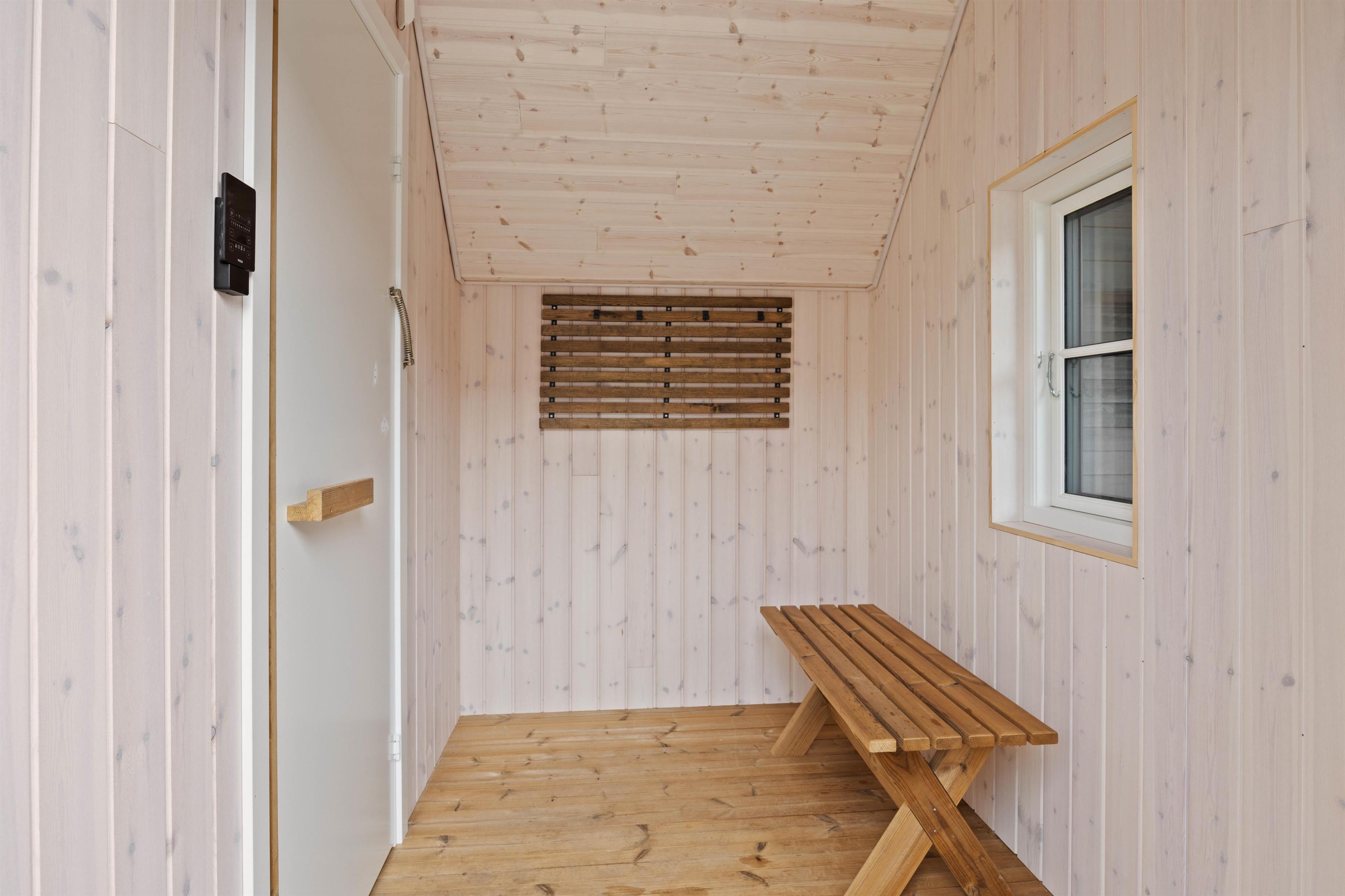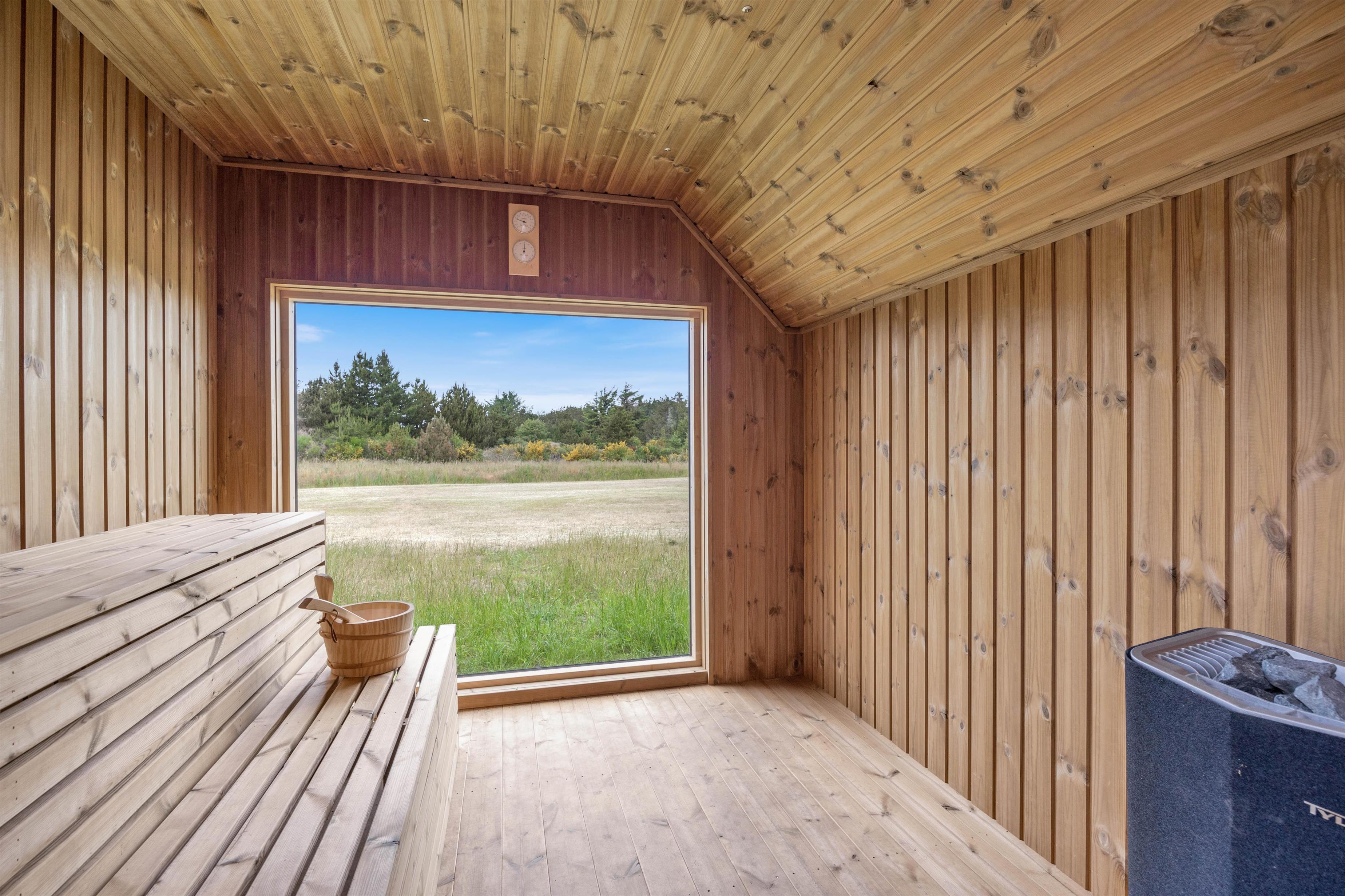 Sommerhuset ligger på en stor grund, som indbyder til afslapning og til at nyde det gode vejr. Her er både udespa, udesauna, udebruser og sandkasse – kort sagt lidt for enhver smag og alder. I udespaen kan I slappe af og lade tankerne flyve, alt imens I lader batterier op på ny. Efter en dejlig lang gåtur langs vandet i det fine, hvide sande, kan I skylle fødderne af under udendørsbruseren. I kan benytte udebruseren fra april måned til november måned.
