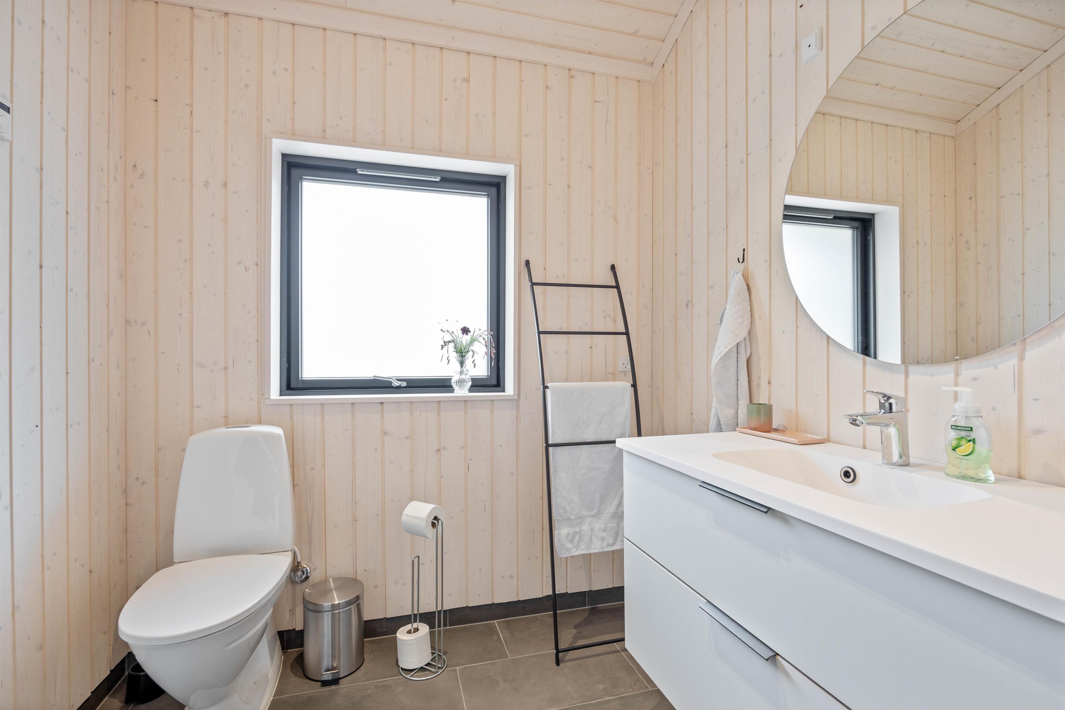 Om aftenen kan I synke ned i sofaen og kigge ud på stjernehimlen gennem de flotte, store vinduespartier, som bidrager til et fantastisk lysindfald i sommerhuset. Skulle I få brug for at vaske tøj under jeres ophold, så er der vaskemaskine til fri afbenyttelse.