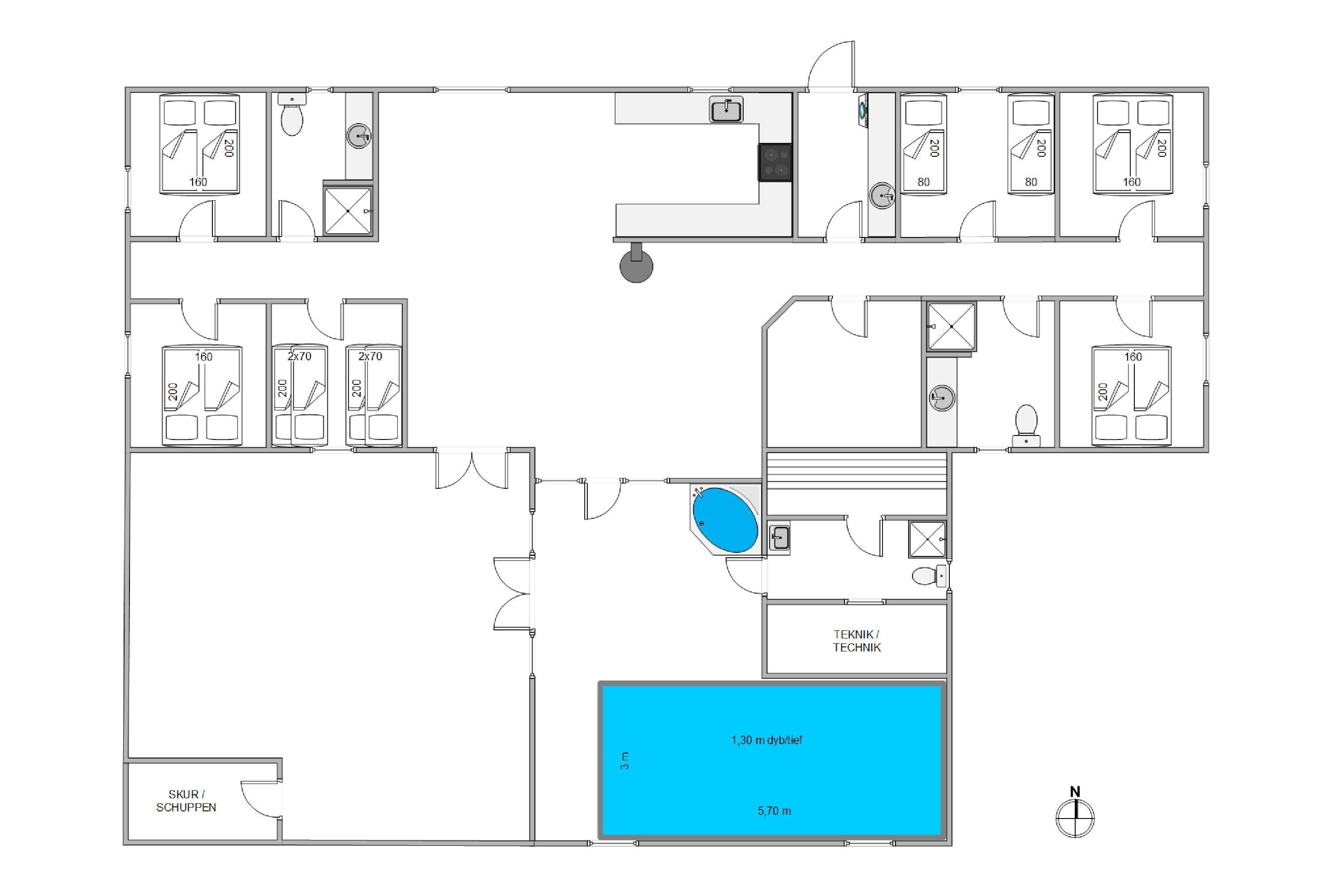 Sommerhuset på Sdr. Fjandvej 36 er dejligt rummeligt. På 212 kvadratmeter er der 6 soveværelser, 3 badeværelser og et stort opholdsrum – ej at forglemme det lækre poolområde med swimmingpool, spabad og adgang til sauna. Hele 14 personer og 2 hunde kan nyde en skøn ferie sammen i dette sommerhus, der er perfekt til den helt store familieferie.