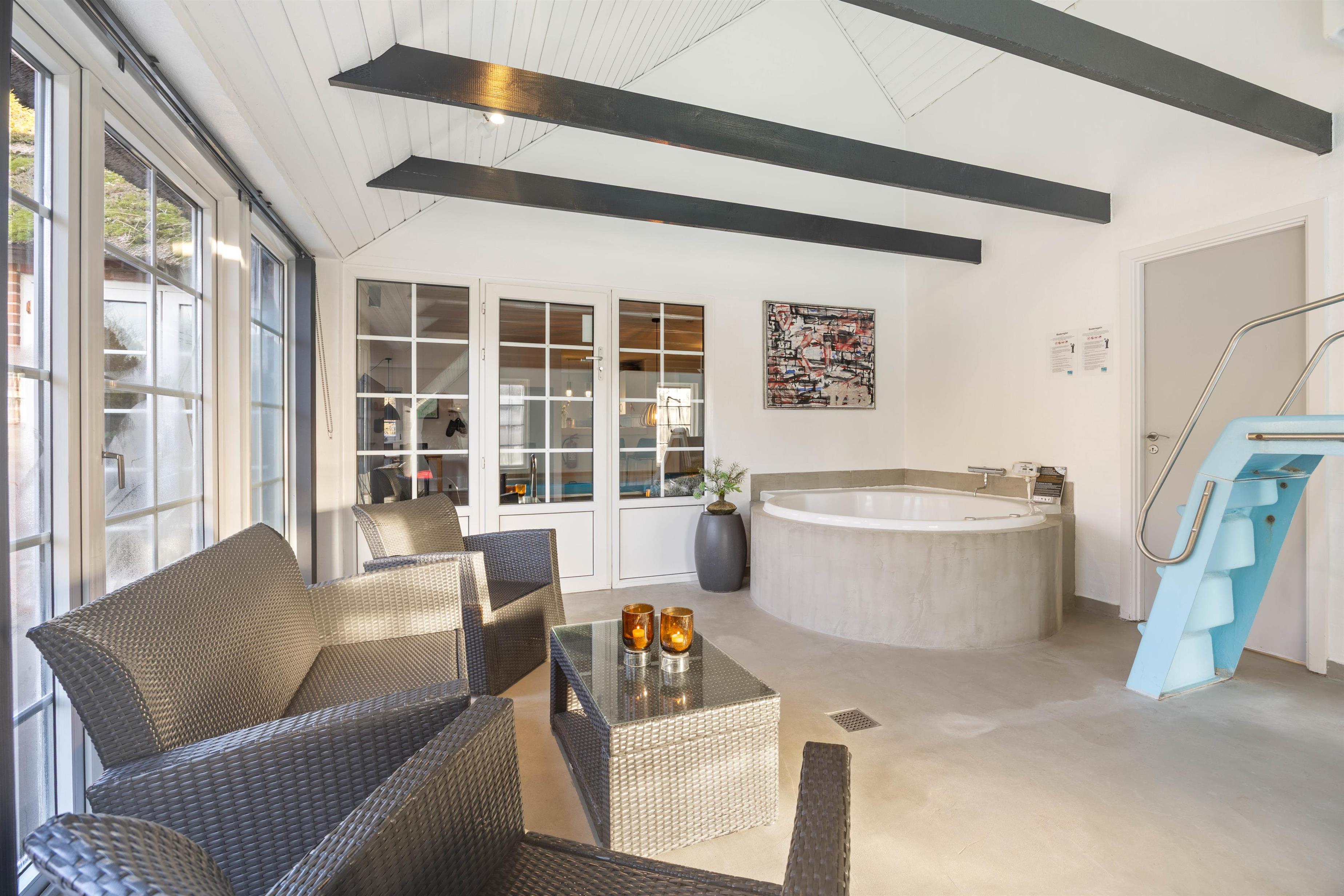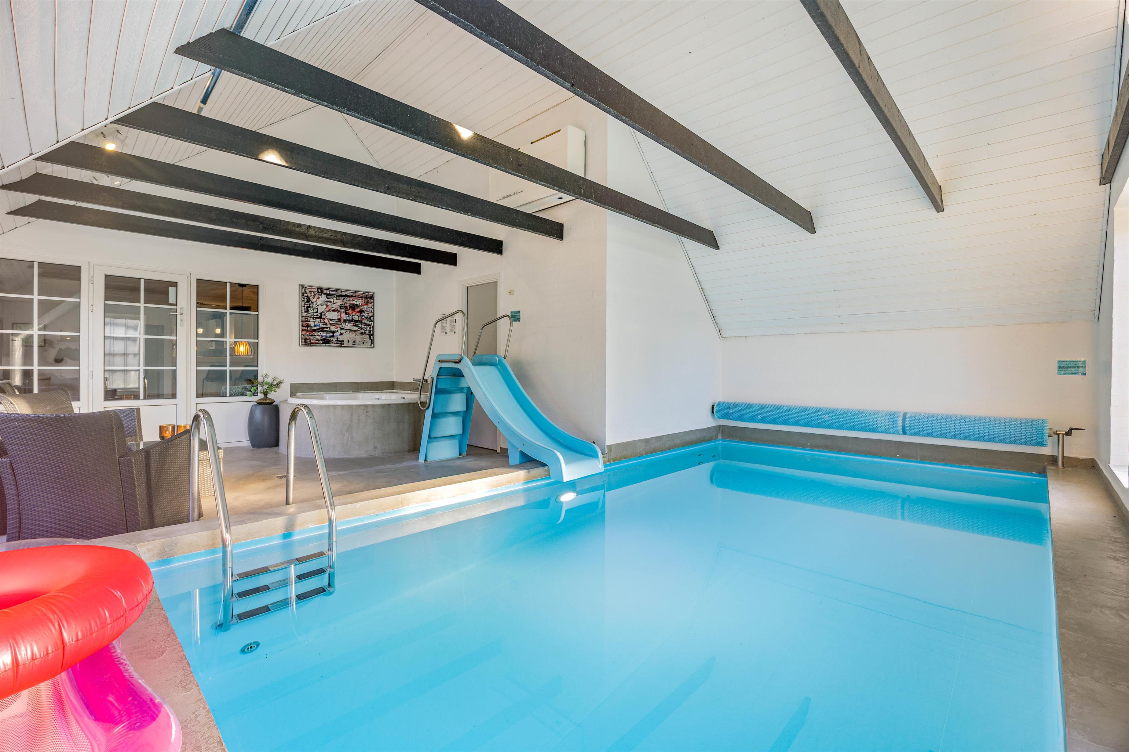 Det helt store højdepunkt i sommerhuset på Sdr. Fjandvej 36 er uden tvivl poolområdet. Her venter jer en 25 m2 stor swimmingpool med rutsjebane, hvor voksne såvel som børn kan slå sig løs i en masse forskellige vandlege. Skulle I få brug for en pause, kan I sætte jer til rette i loungemøblerne, inden legene igen fortsætter.