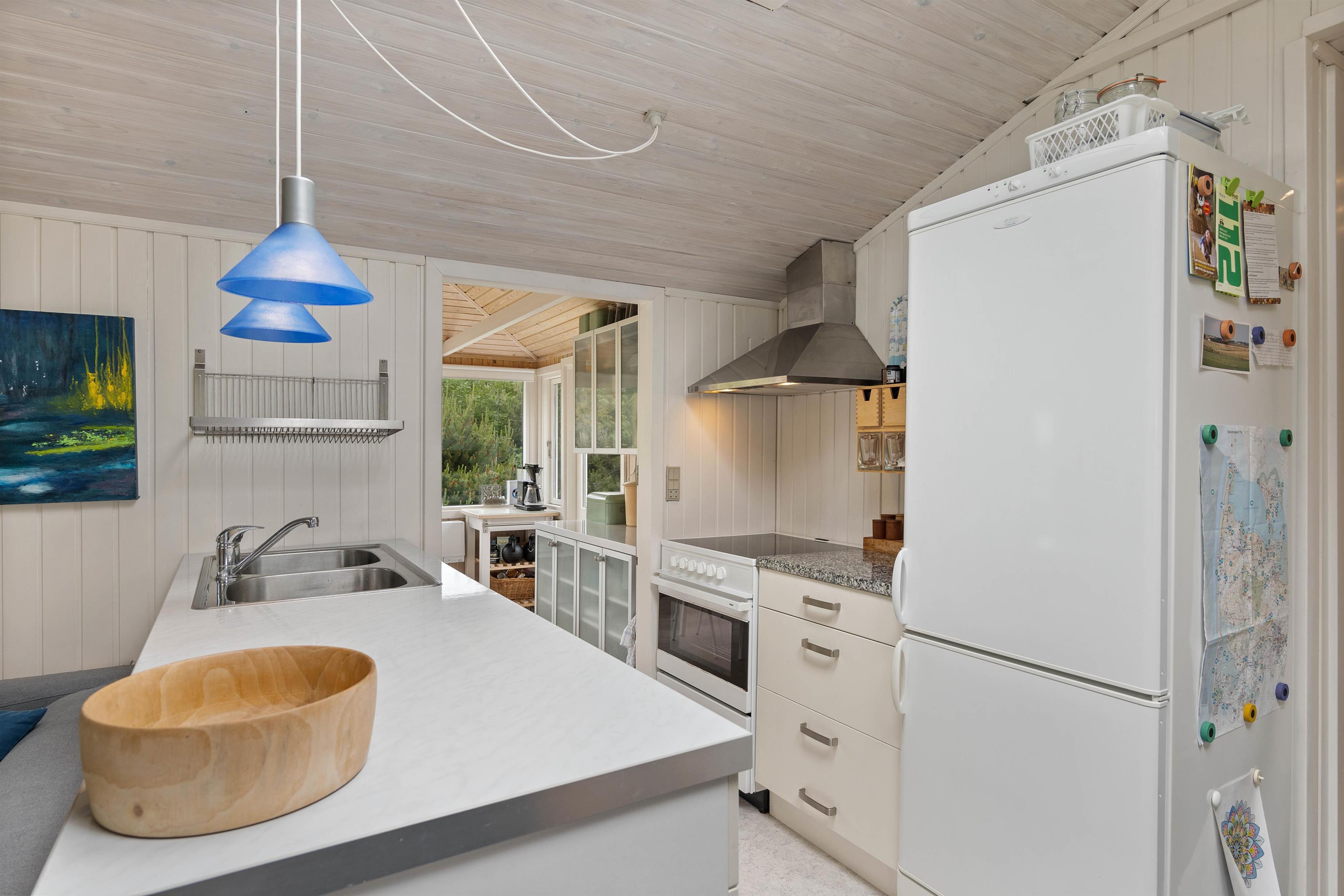 Hjertet i sommerhuset på Bjerghuse 106 er alrummet, der forener køkken med stue og spiseplads. Alrummet vil også fungere som jeres store samlingspunkt, hvor I kan samles til hyggelige feriestunder med gode film, hyggelig madlavning og sjove spil.