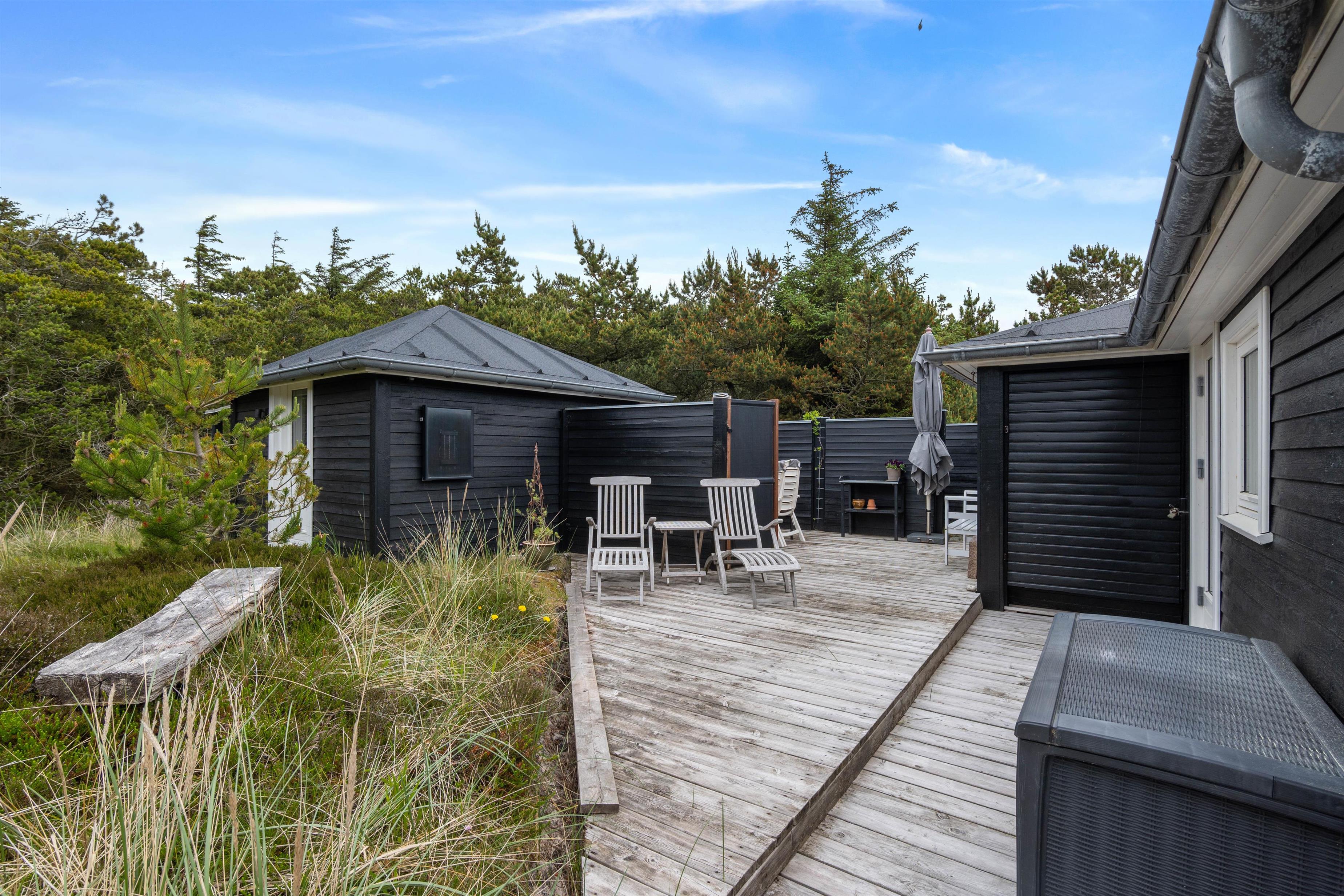 Udendørs venter jer en skøn terrasse, som er det oplagte sted at søge hen på de solrige feriedage. Her kan I finde jer en god plads i solen, hvor I kan læne jer tilbage i havemøblerne og liggestolene og bare slappe af.