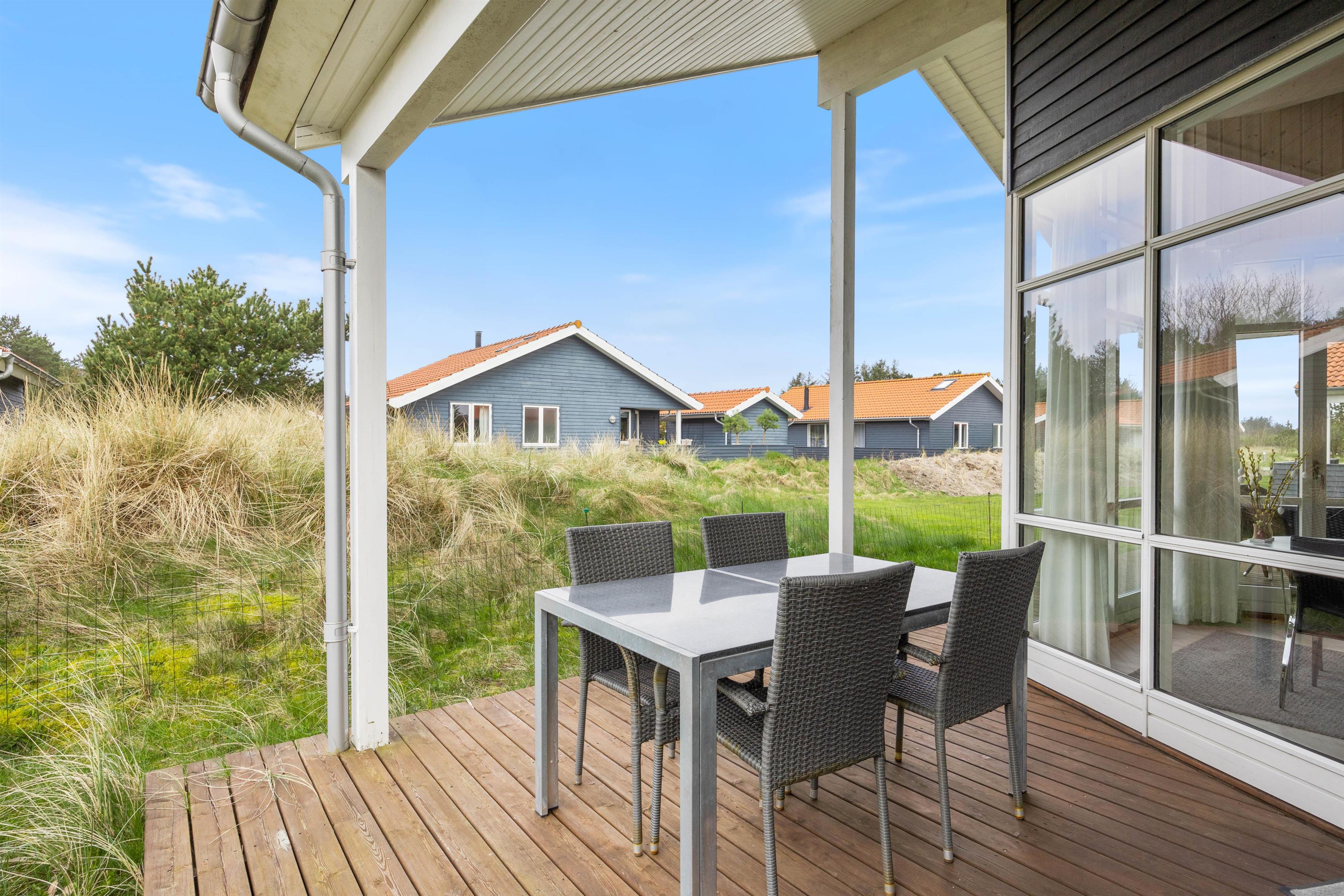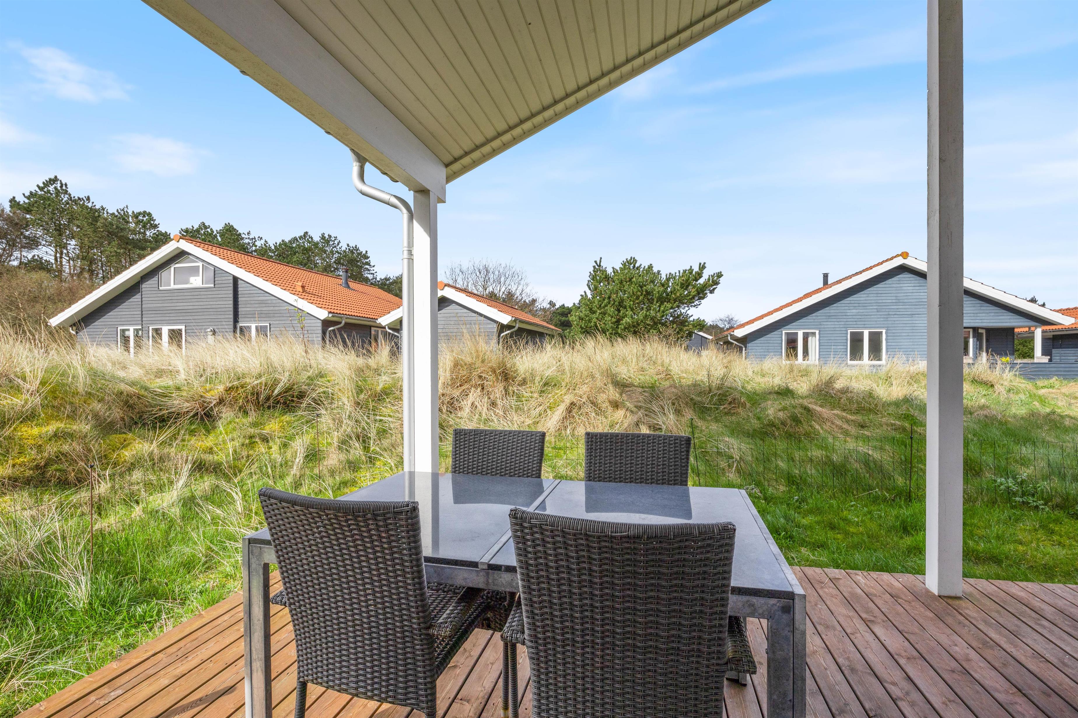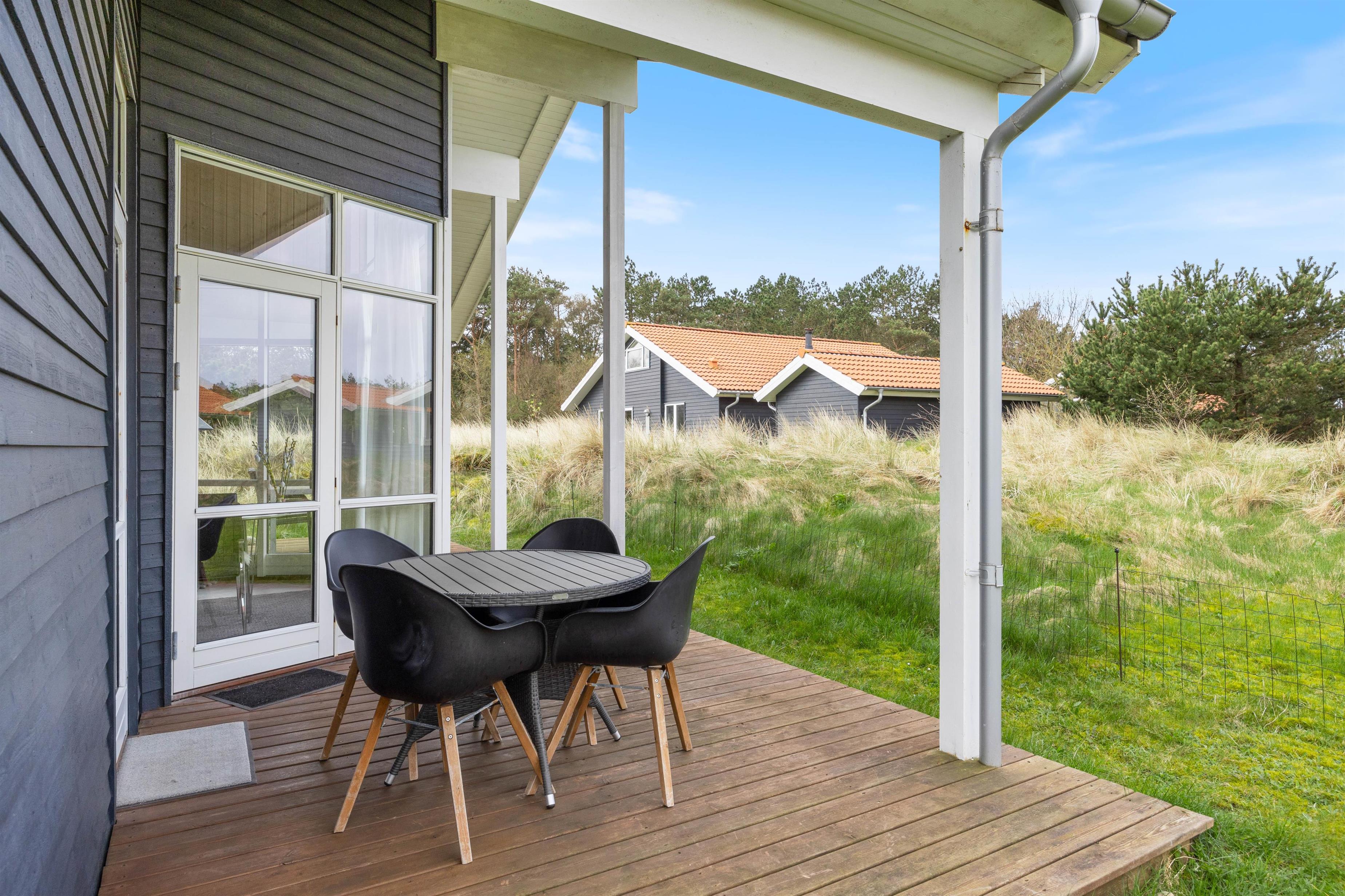 Sommerhuset på Fjand Strand 30 i Fjand har en overdækket terrasse med 2 siddeområder, hvor I kan sætte jer godt til rette i havemøblerne, når vejret indbyder til det. På en varm sommeraften kan I sammen tilberede et lækkert måltid på grillen, imens I nyder et koldt glas og snakker om den næste feriedags gøremål.