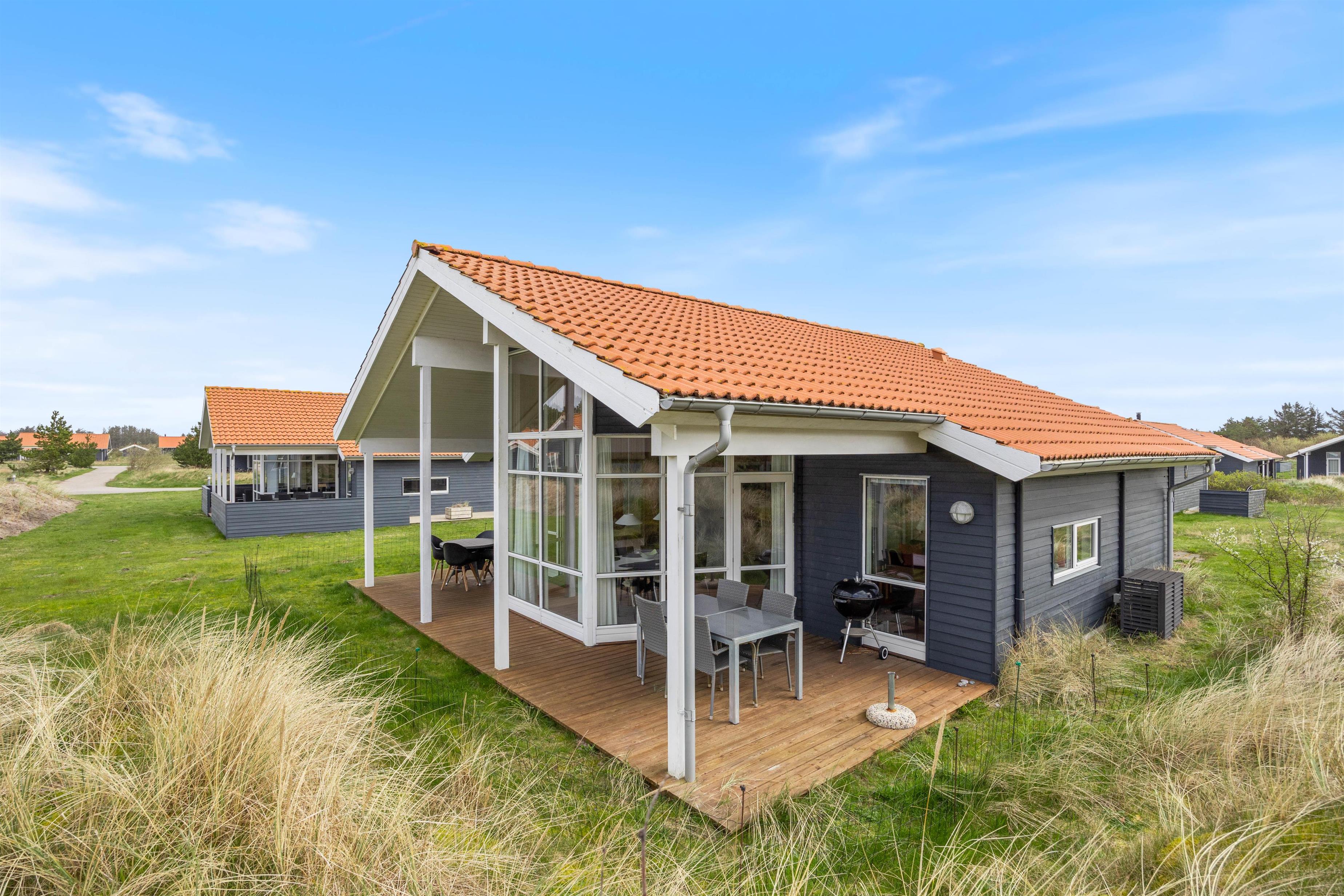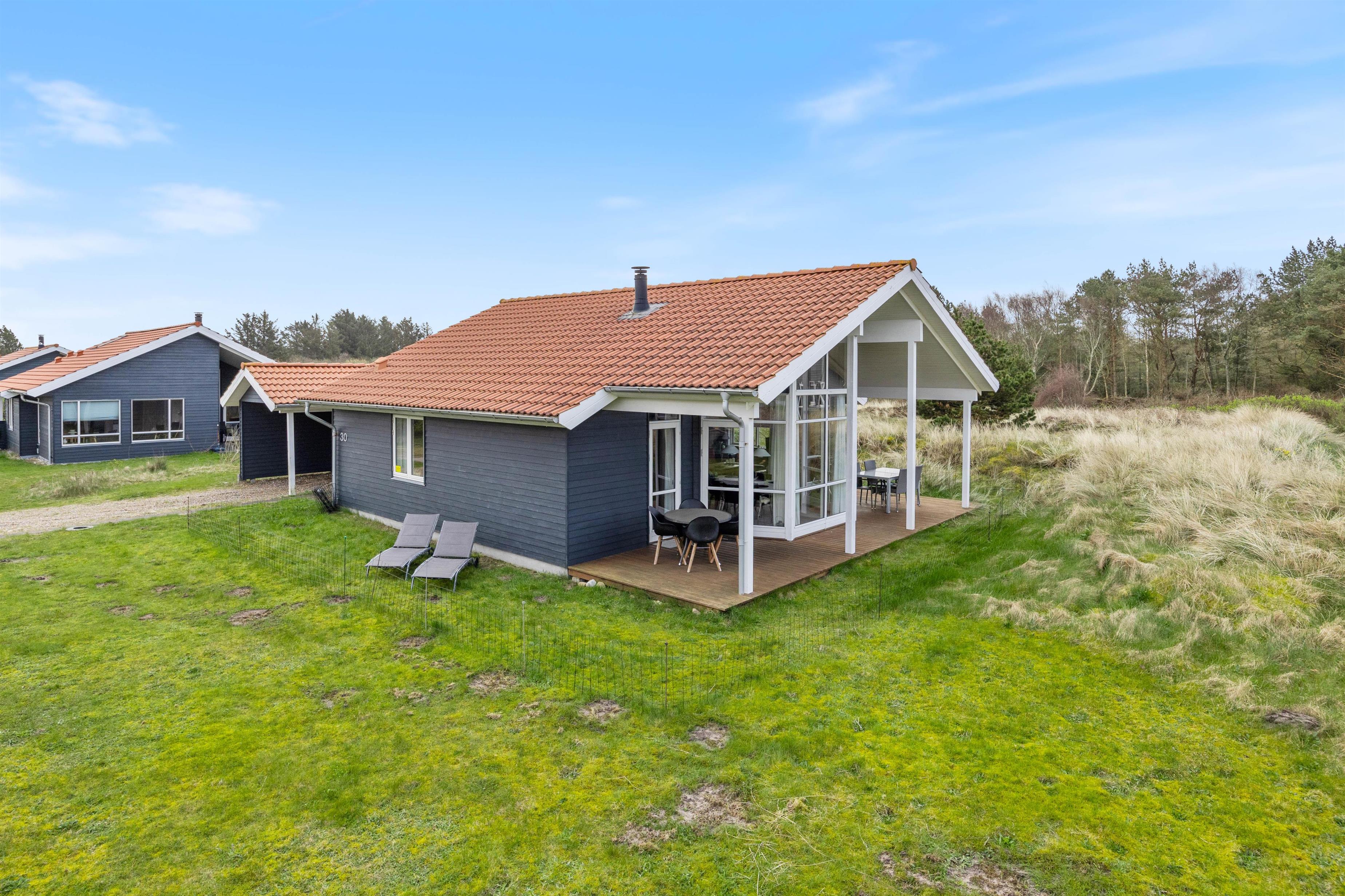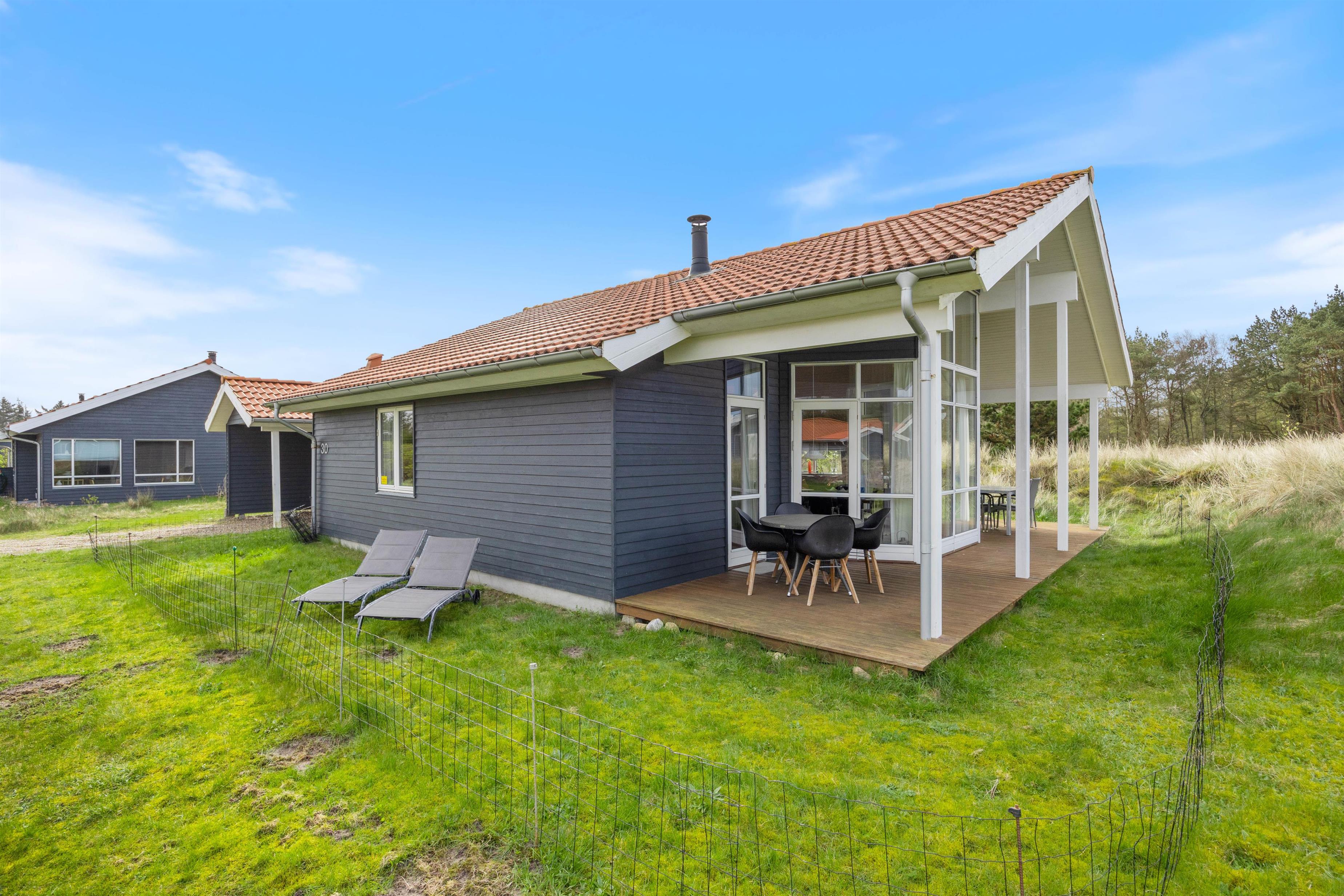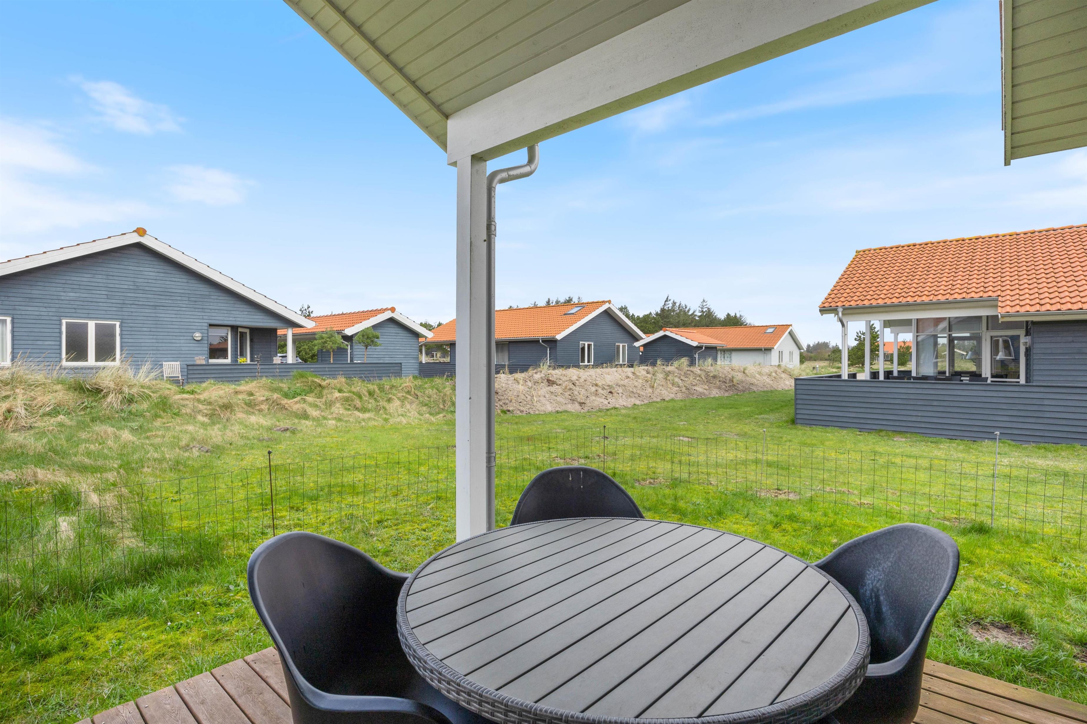 Sommerhuset på Fjand Strand 30 i Fjand har en overdækket terrasse med 2 siddeområder, hvor I kan sætte jer godt til rette i havemøblerne, når vejret indbyder til det. På en varm sommeraften kan I sammen tilberede et lækkert måltid på grillen, imens I nyder et koldt glas og snakker om den næste feriedags gøremål.