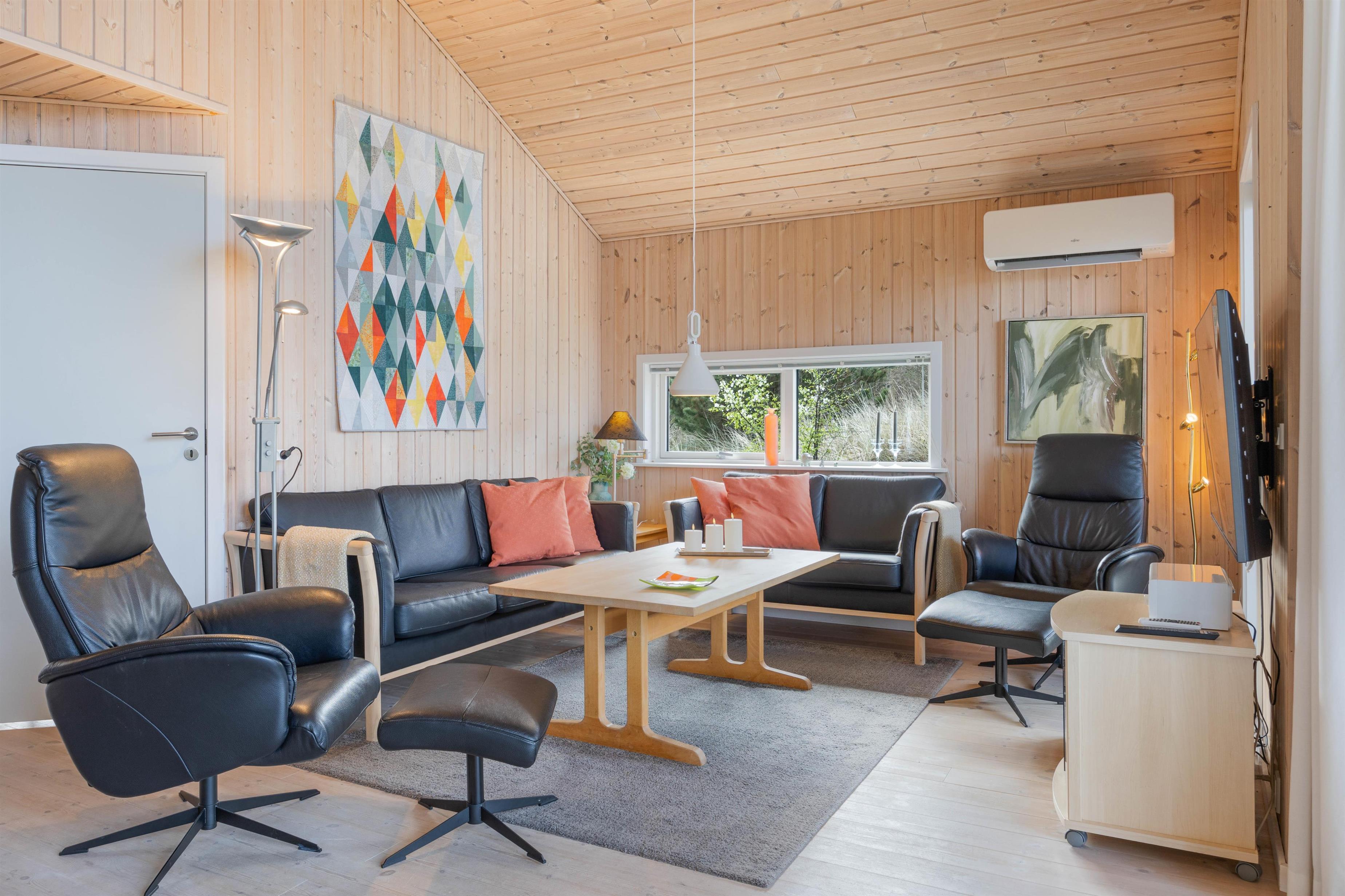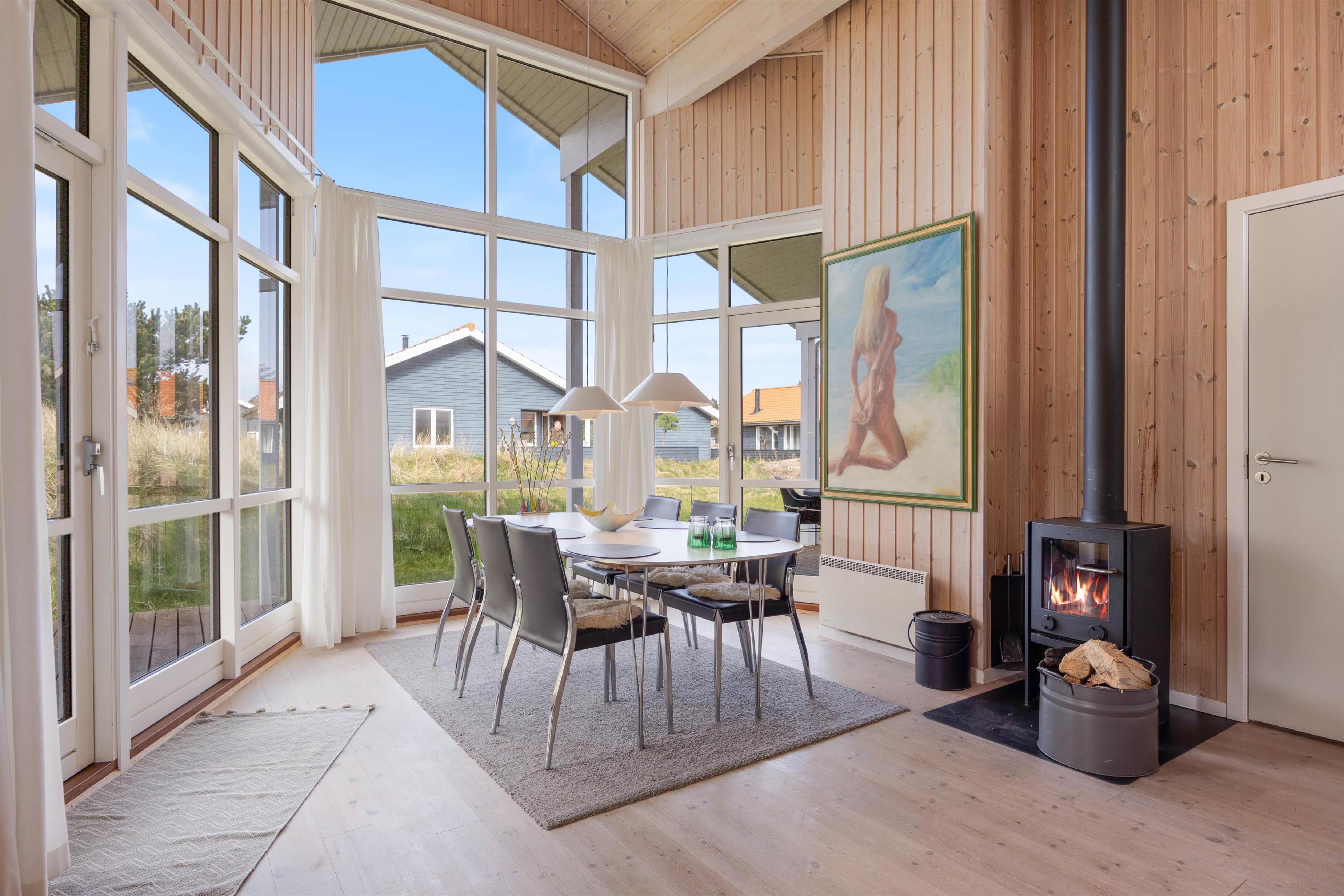 Køkkenet er indrettet med en opvaskemaskine, som klarer opvasken for jer, så I i stedet kan bruge tid sammen med hinanden. Om aftenen, når ilden knitrer i brændeovnen, bliver feriestemningen endnu bedre. Hvis der ikke er gang i brændeovnen, har I mulighed for at bruge den energibesparende luft-til-luft varmepumpe, til at skabe et behageligt indeklima.