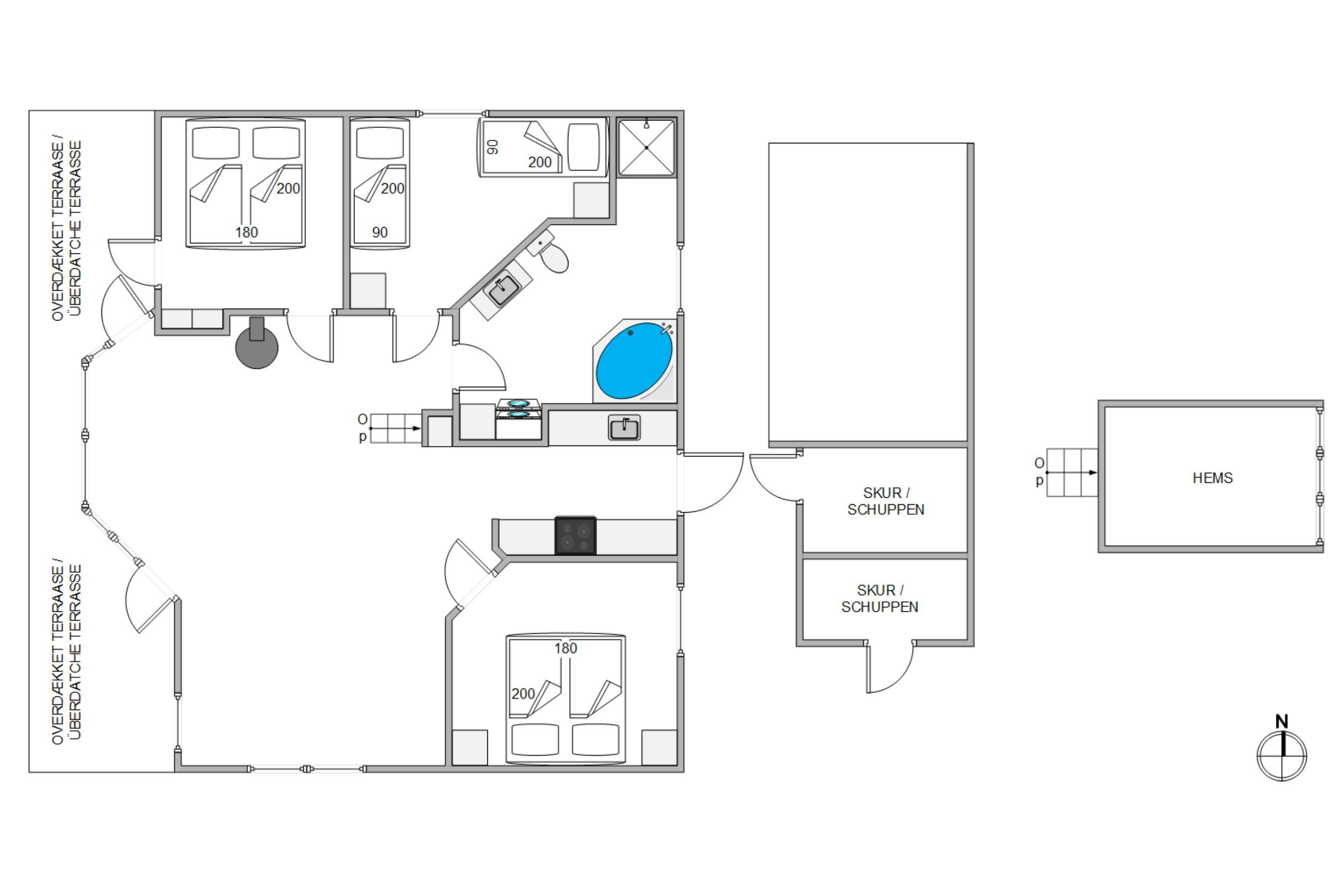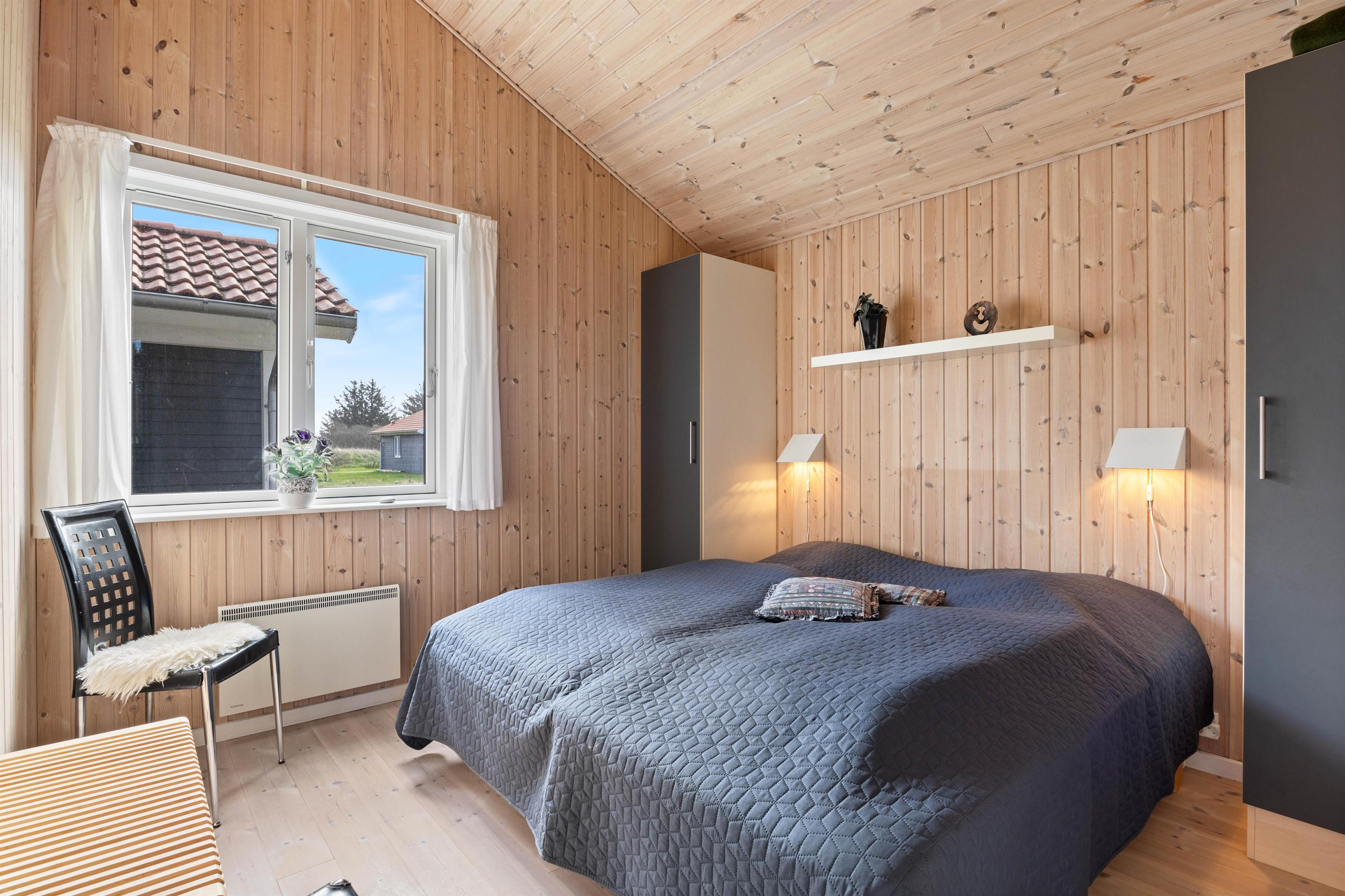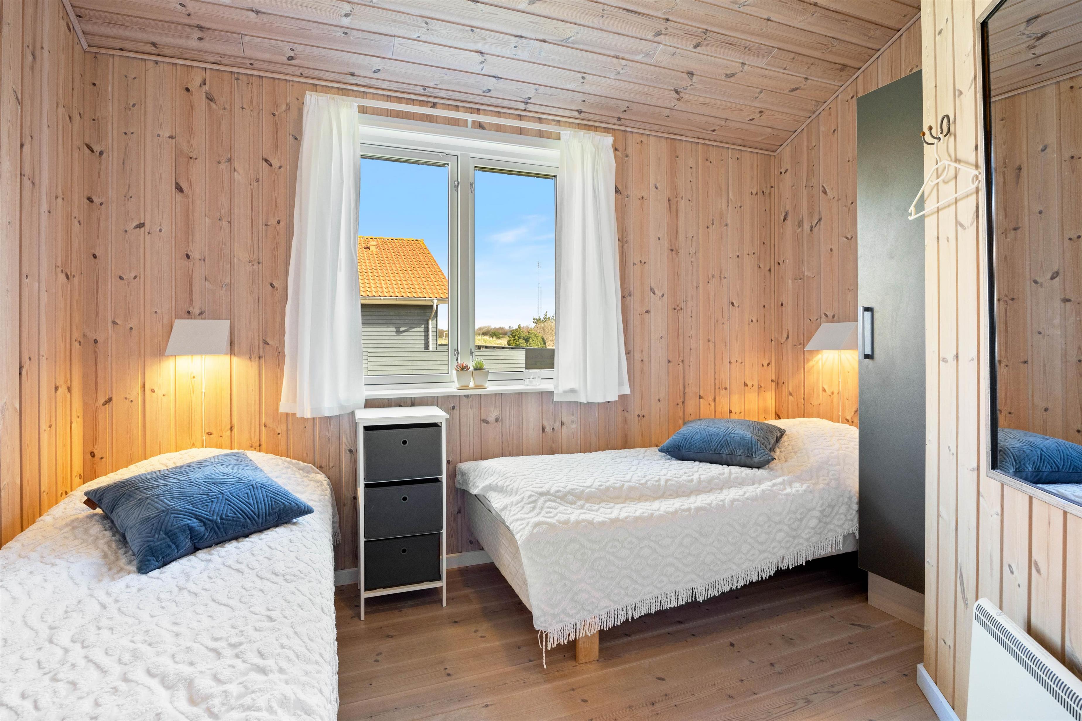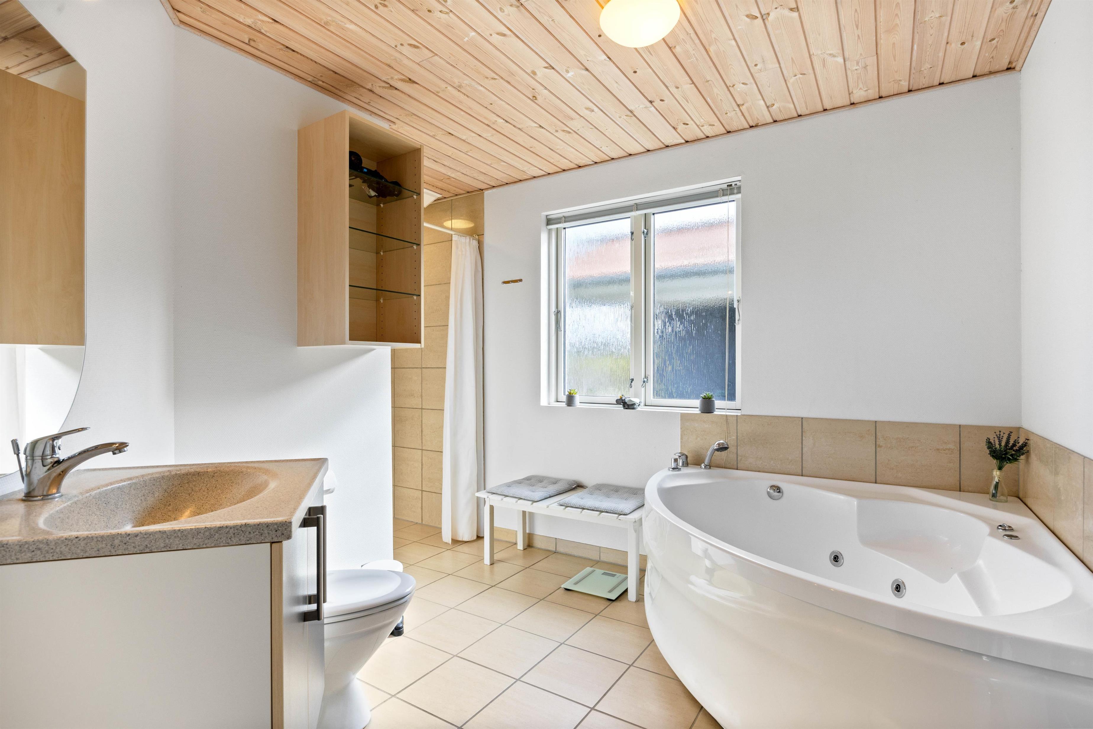 I Sommerhuset finder I 3 soveværelser, hvoraf 2 er indrettet med en dobbeltseng og 1 er indrettet med to enkeltsenge. Her kan I trække jer tilbage og få en god nats søvn, inden næste dags feriebegivenheder. Badeværelset har gulvvarme, så I undgår kolde fødder om morgenen. Her er der også et 2-personers spabad, hvor I har mulighed for at slappe af og komme helt ned i gear. Der er også en vaskemaskine og tørretumbler til rådighed i huset, så I ikke skal bekymre jer om vasketøj, imens I holder en dejlig ferie.