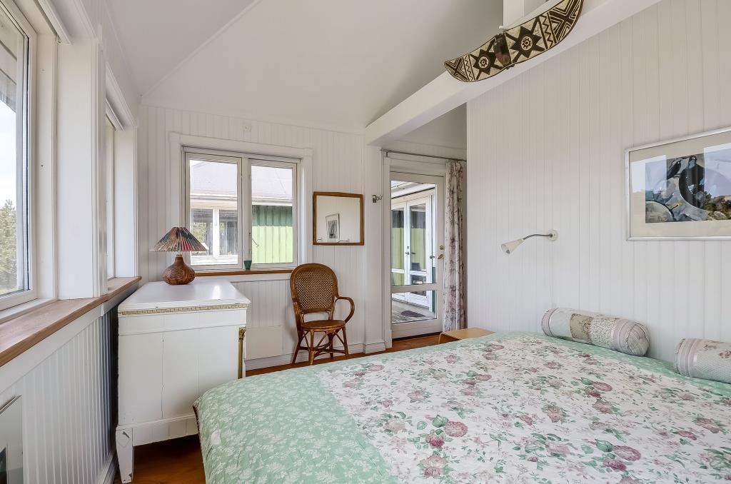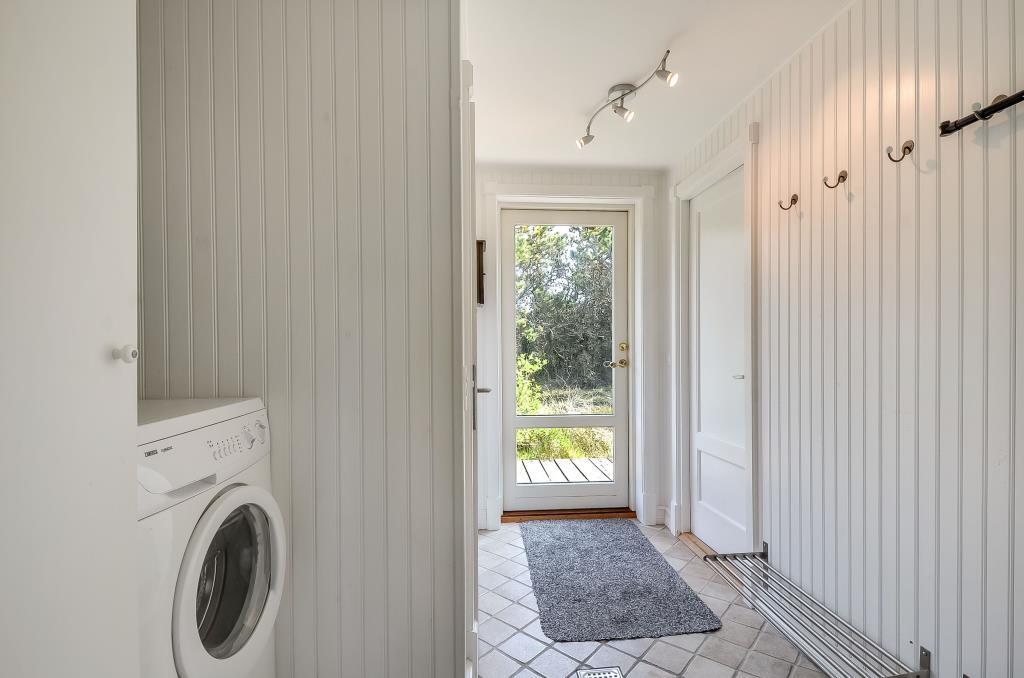 Herfra er der adgang til soveværelset med dobbeltseng, mens en gang forbinder resten af huset med de øvrige rum.