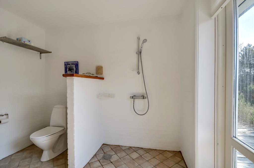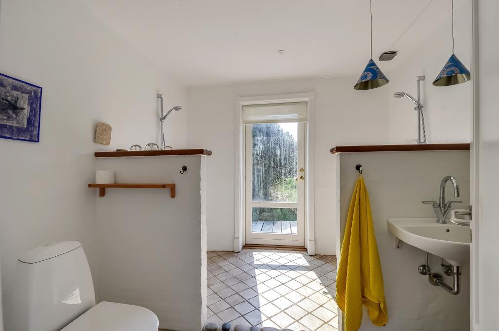 Badeværelset er rummeligt og har hele to brusere, og derudover findes et praktisk gæstetoilet.