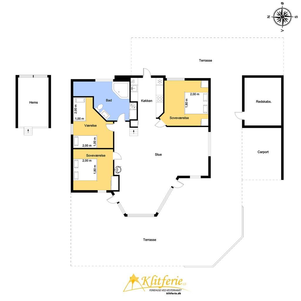 Feriehuset fremstår lyst, indbydende og funktionelt med en planløsning, der skaber gode rammer for samvær og afslapning.