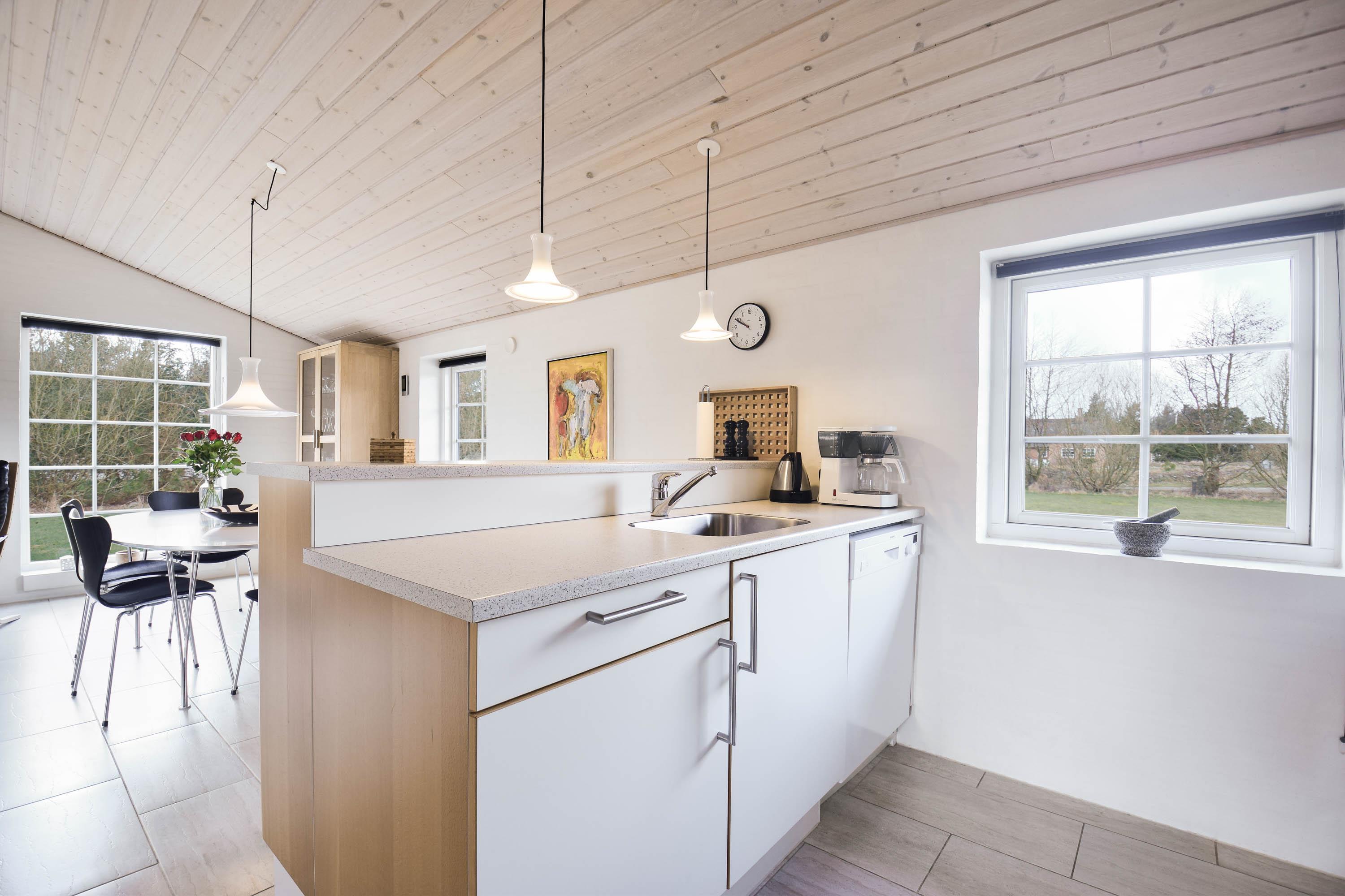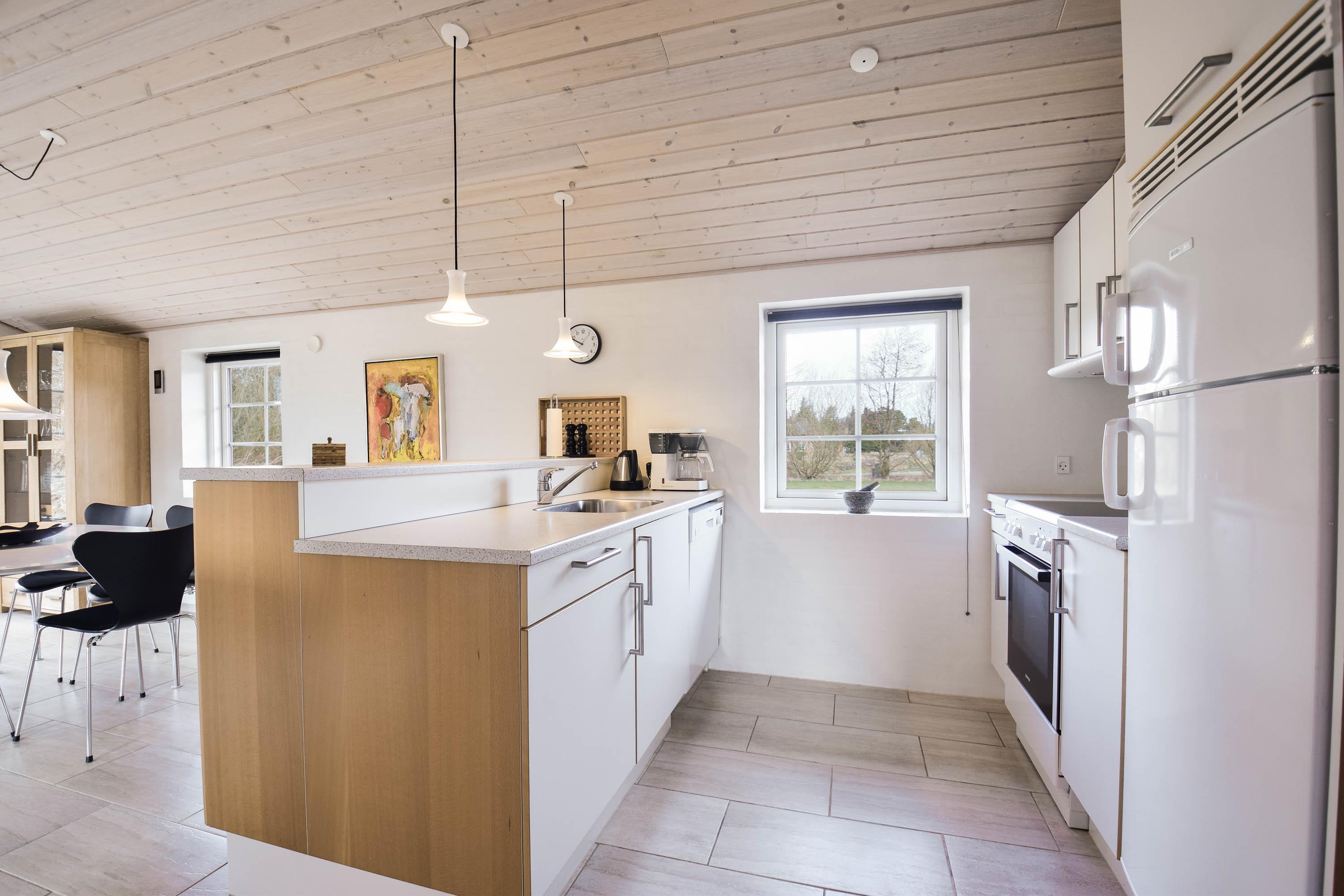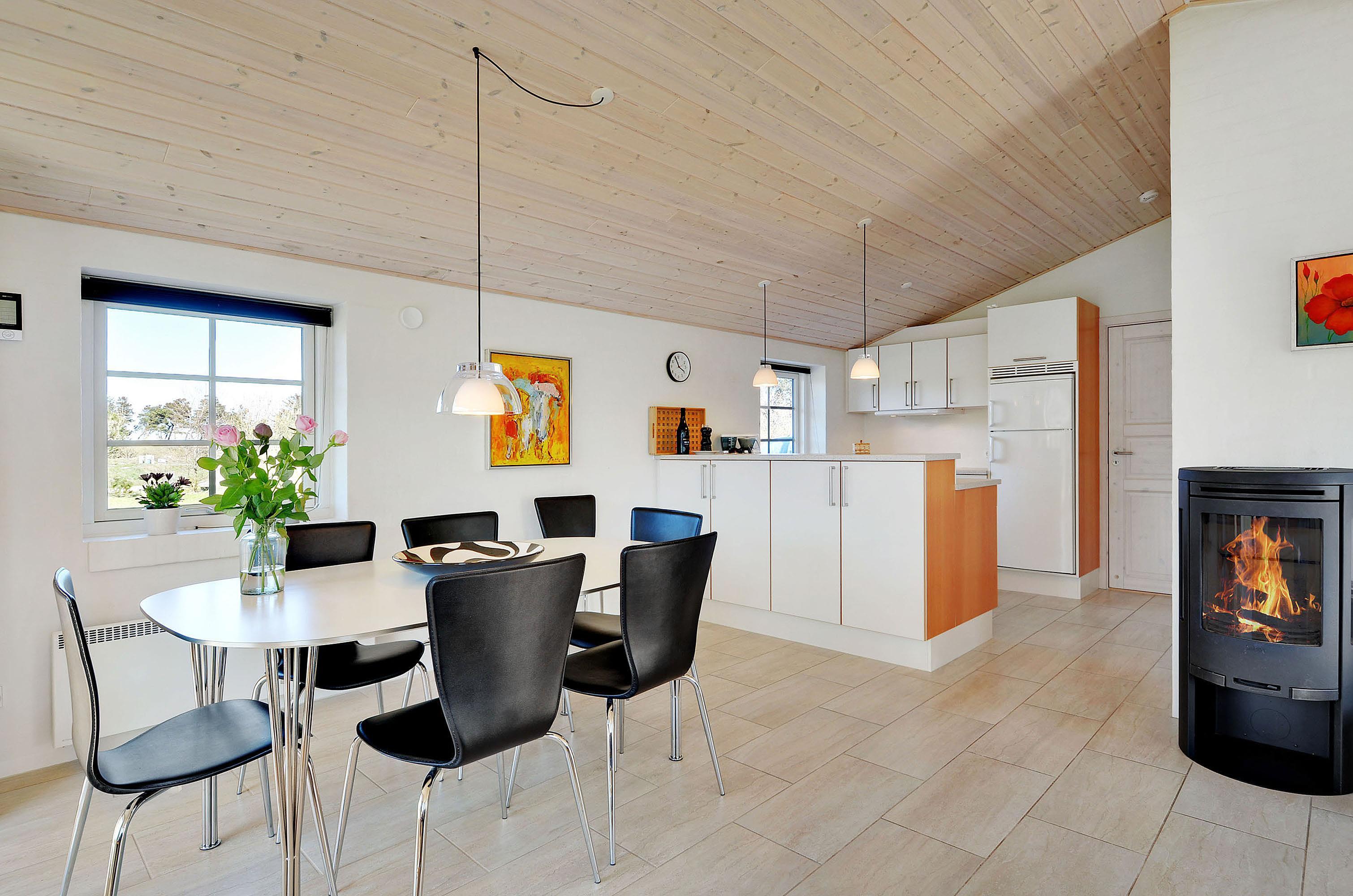 Indretning: Lyst køkken/ alrum med brændeovn og udgang til dejlig terrasse, 1 værelse med to gode senge, 2 soveværelser med faste skabe og dobbeltseng. Husets flotte badeværelse er indrettet med både bruseniche, spa og sauna. Fra husets entre er der tillige adgang til et lille ekstra badeværelse.