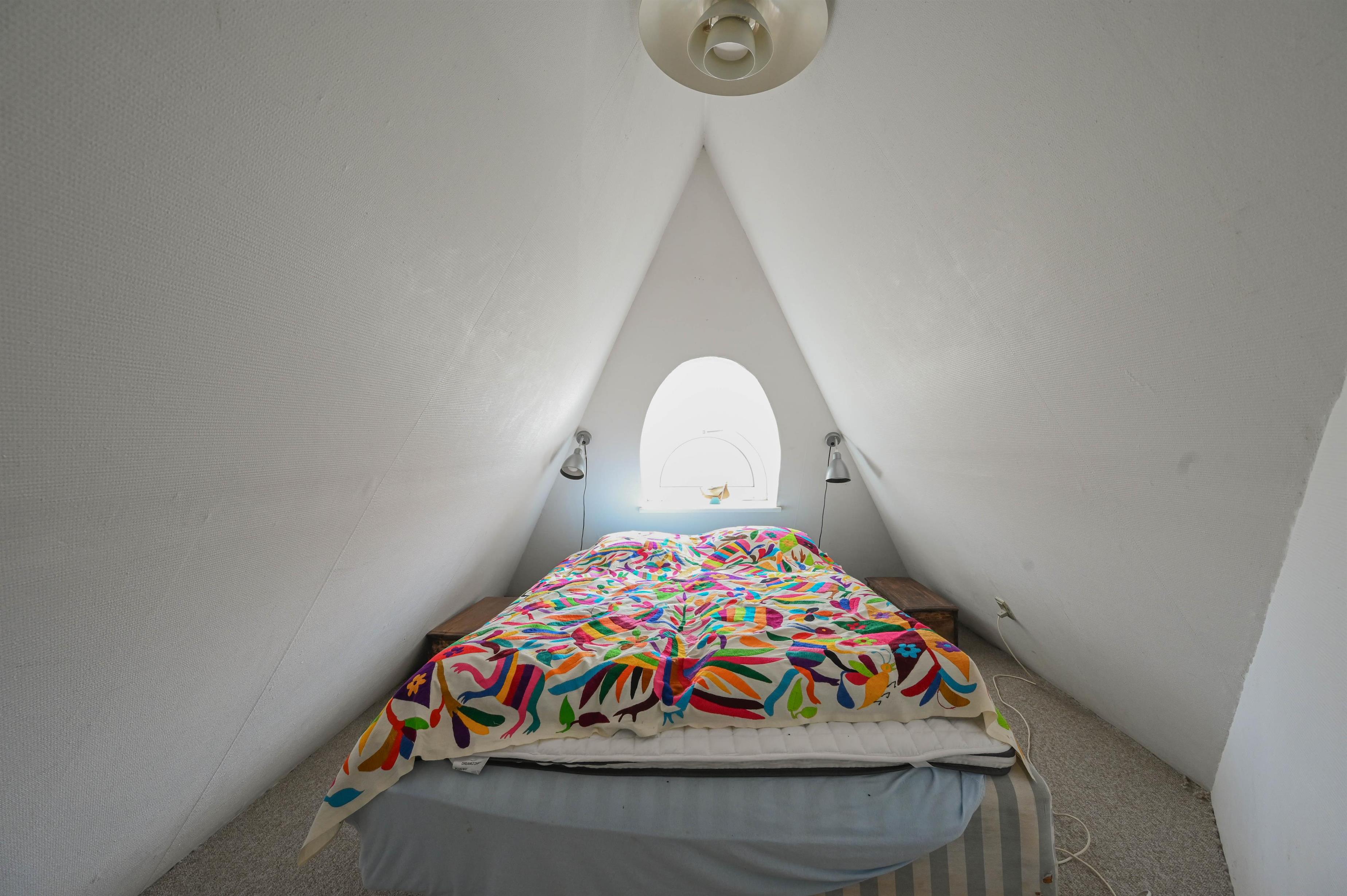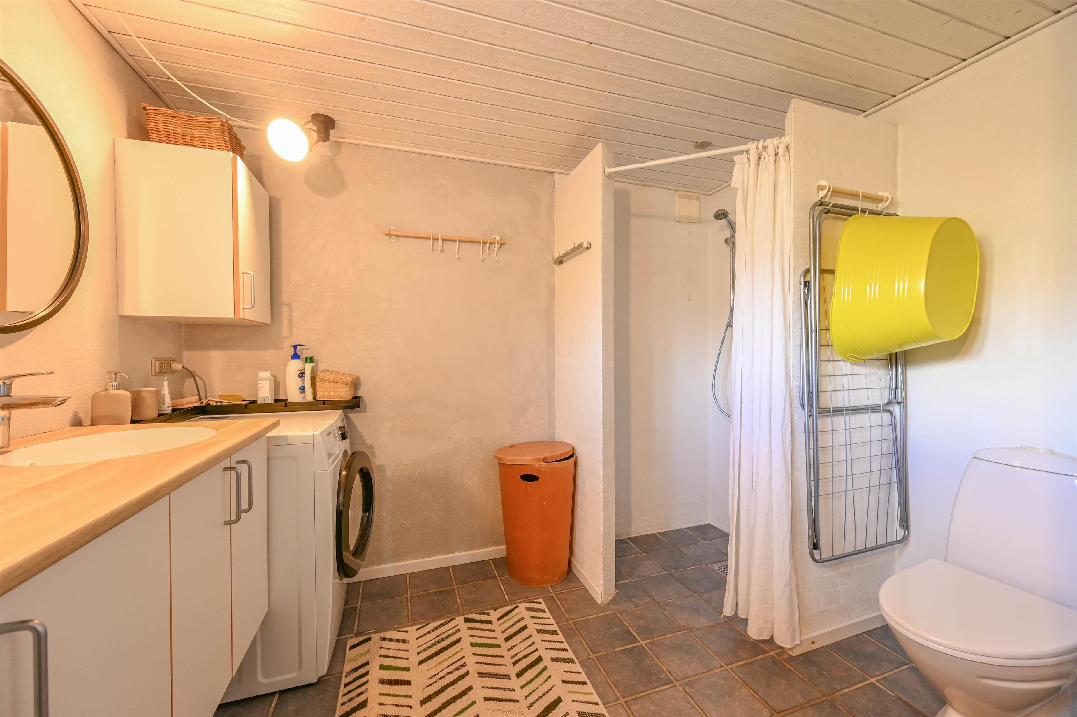 Derudover findes et godt soveværelse med dobbeltseng samt et badeværelse med bruser.