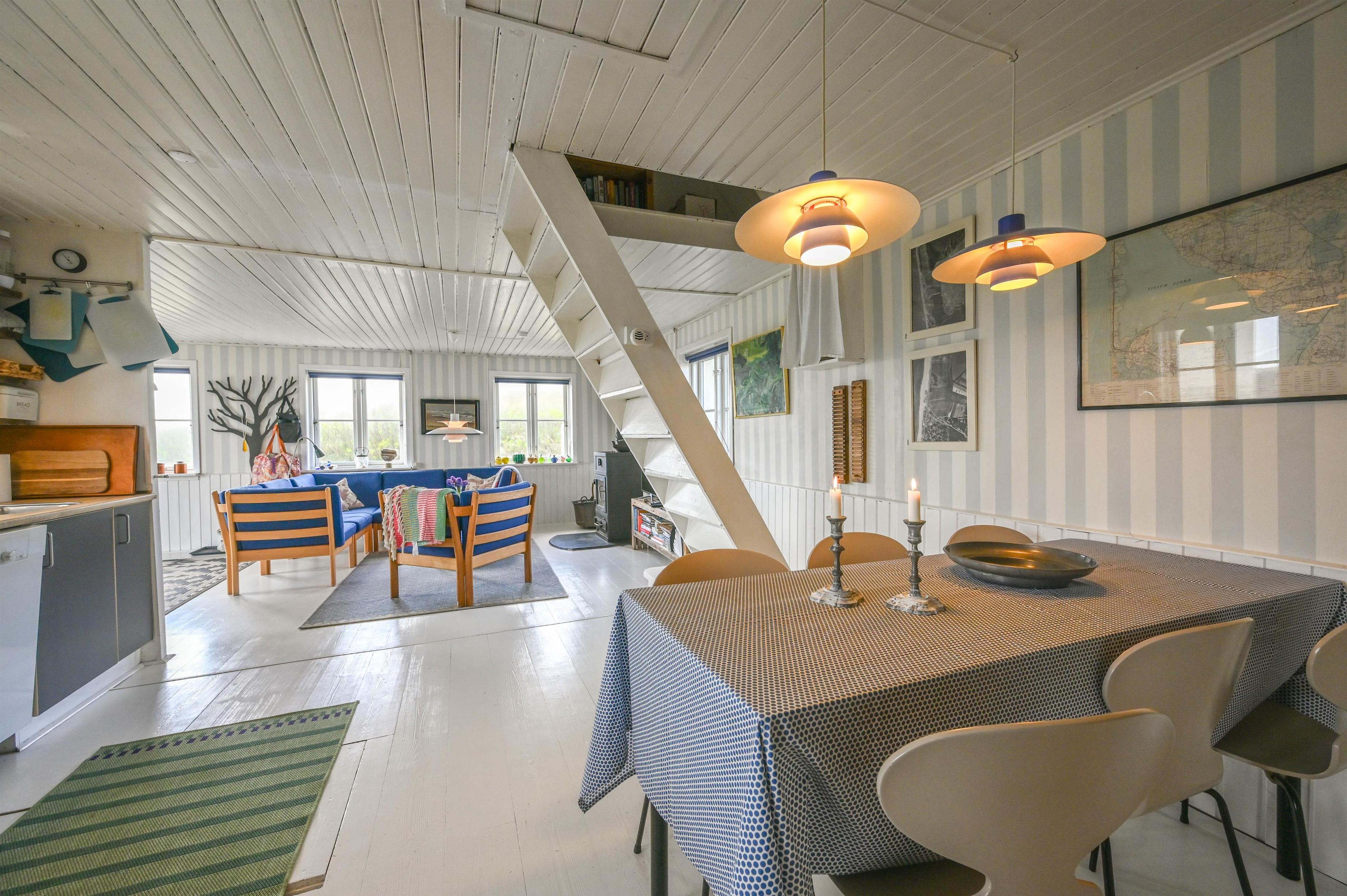 Indenfor mødes I af et lyst og indbydende hjem, der kombinerer moderne komfort med klassisk sommerhuscharme.