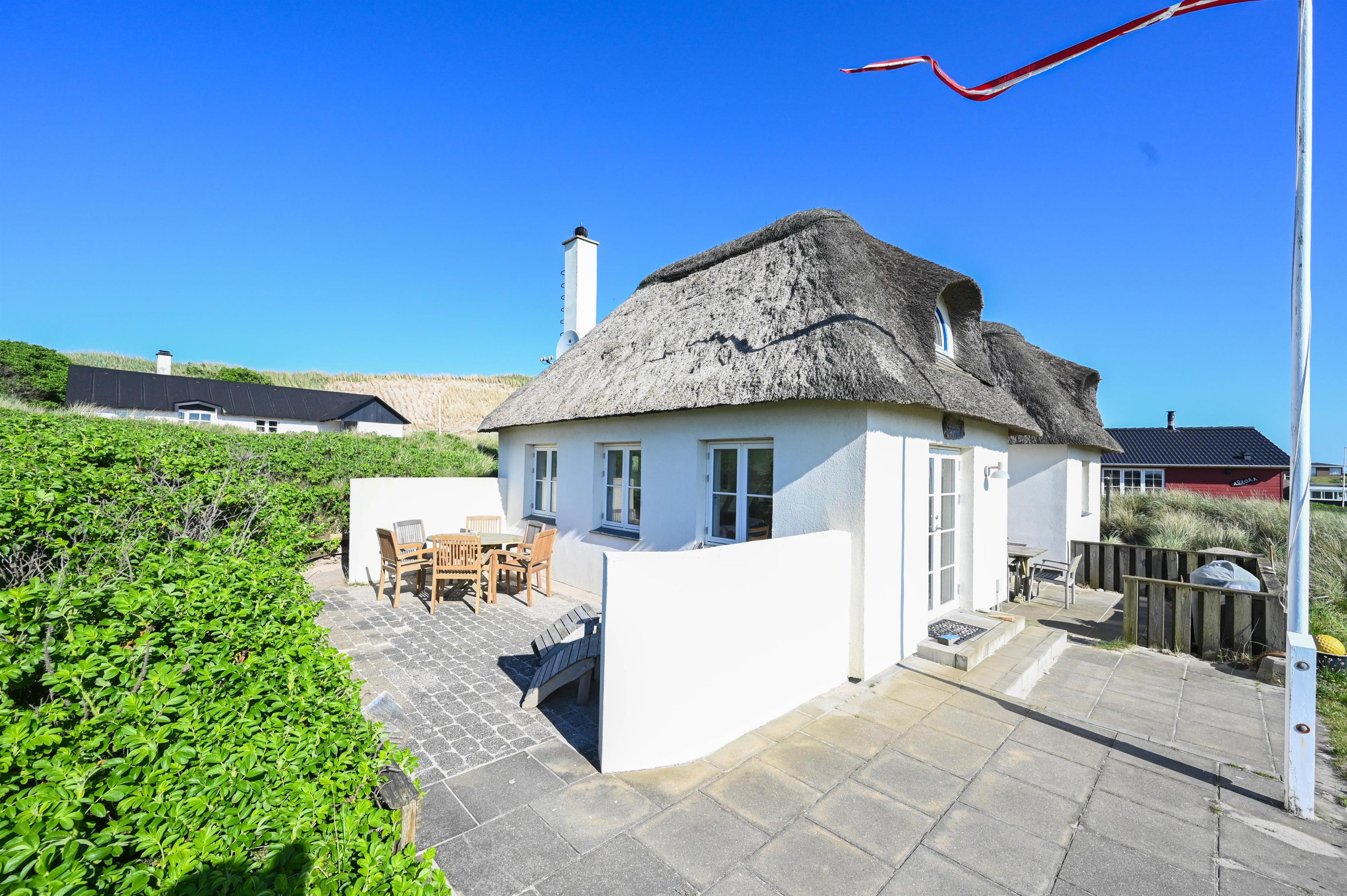 Huset ligger i det populære Bjerghuse-område, kun få skridt fra Vesterhavet og de brede sandstrande.
