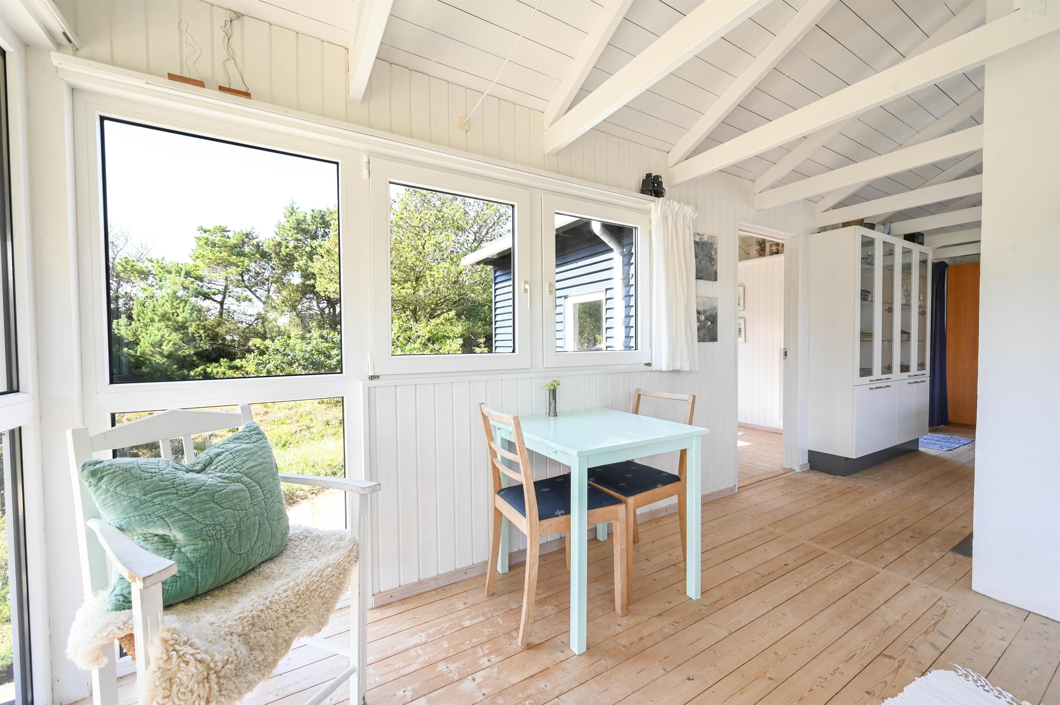 Midt i det naturskønne område Bjerghuse i Fjand, omgivet af skov og kun en kort gåtur fra Vesterhavet, ligger dette charmerende og hyggelige feriehus.