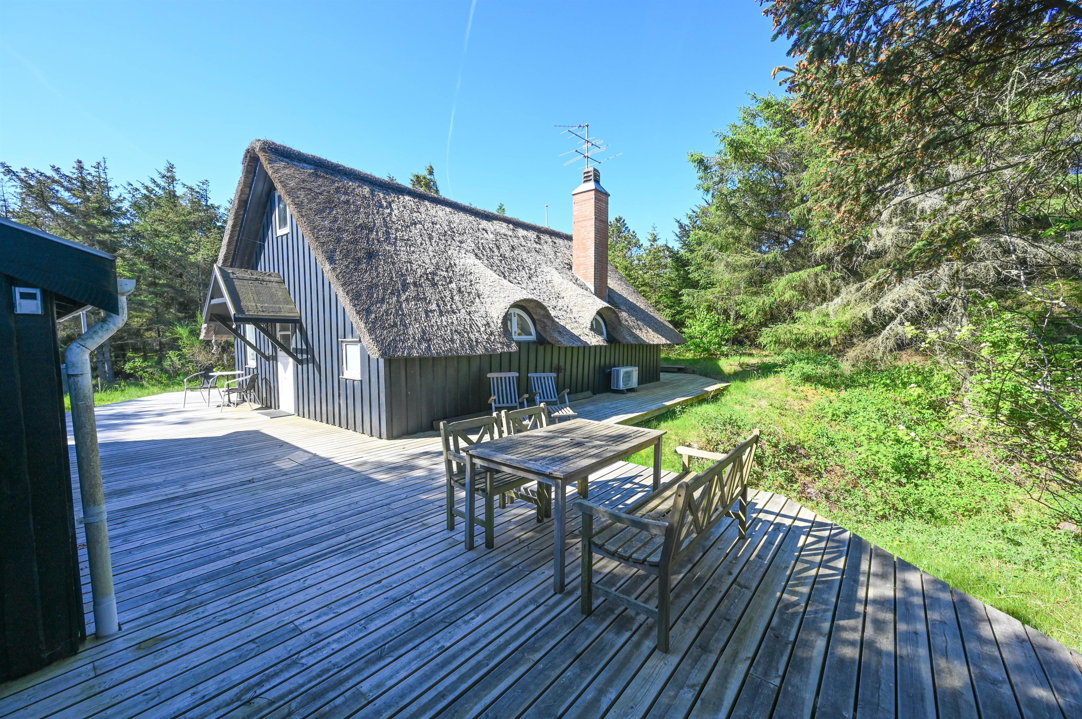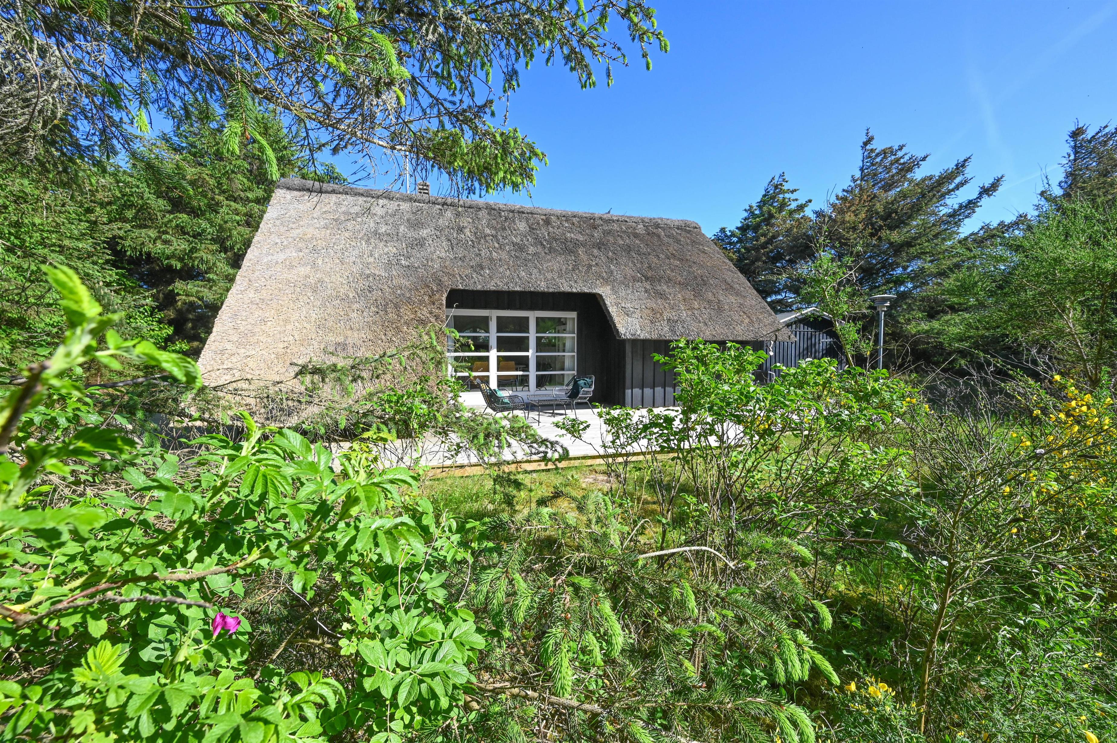 Huset, som er opført i træ og har klassisk stråtag, oser af dansk sommerhusstemning og ligger helt uforstyrret på en 2.696 m² stor grund, omgivet af træer og skov.