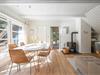 Her er der spiseplads, sofagruppe, brændeovn og varmepumpe, som tilsammen giver både varme og hygge – uanset årstid.